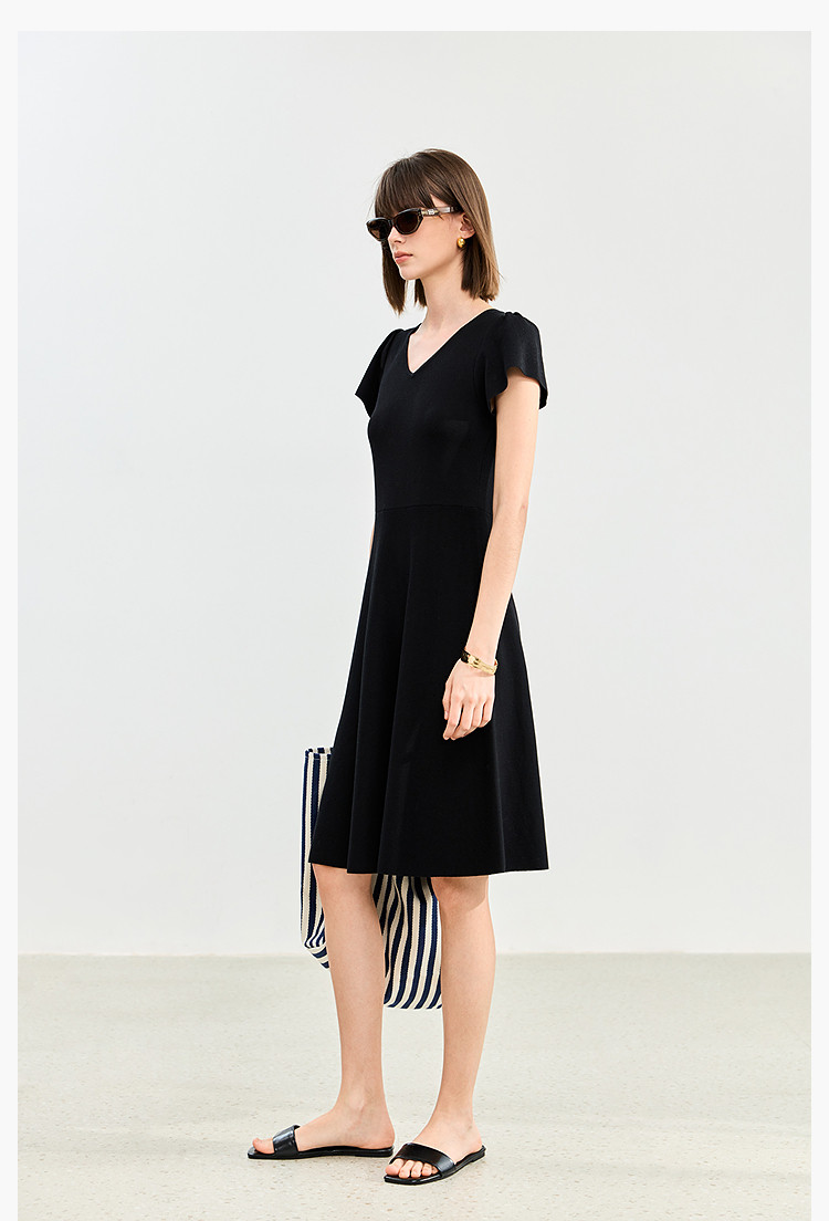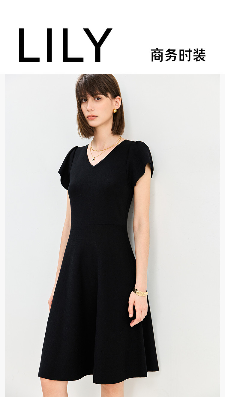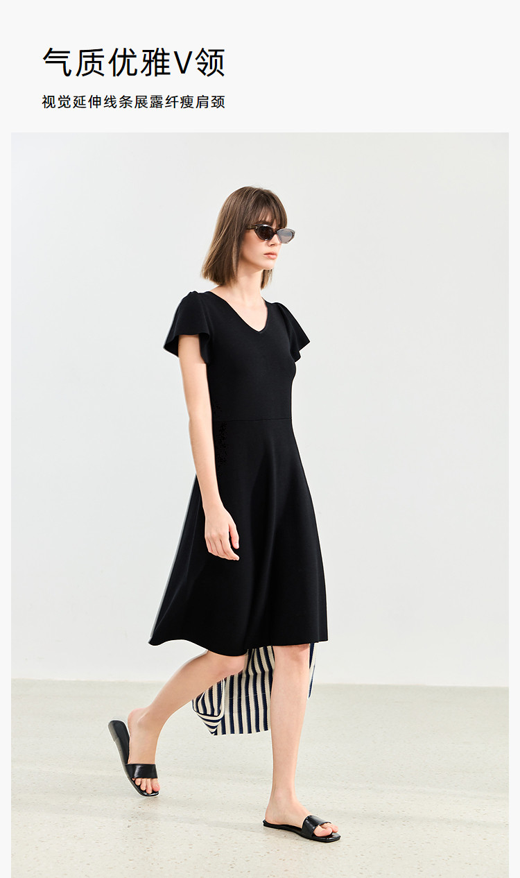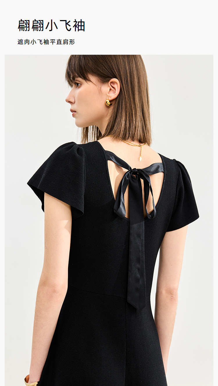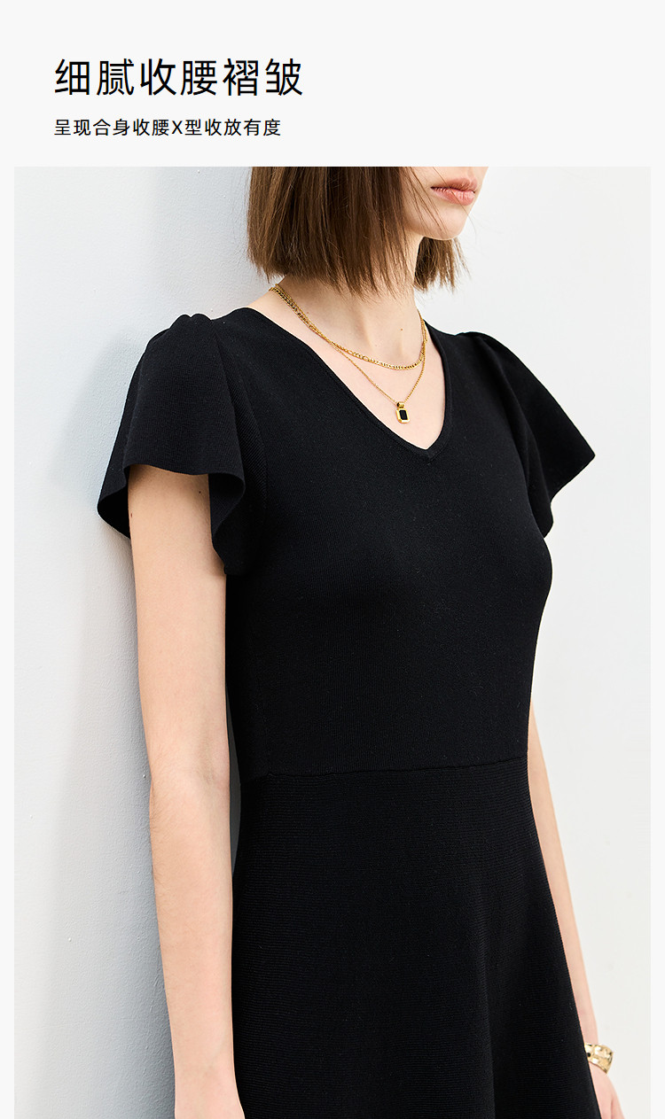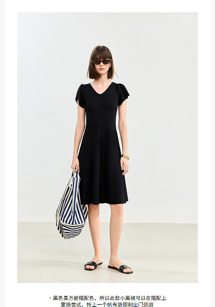 商品名称:连衣裙女夏季气质高级感后背绑带设计收腰显瘦v领小黑裙 558811