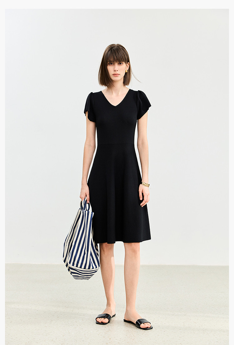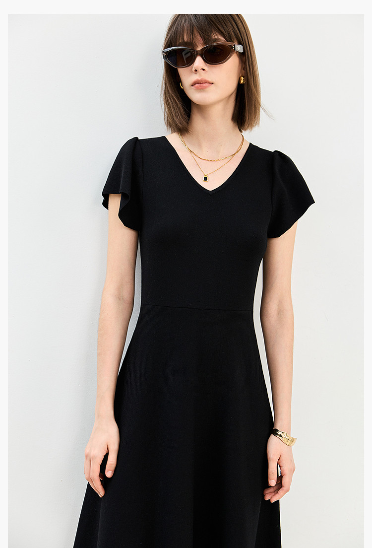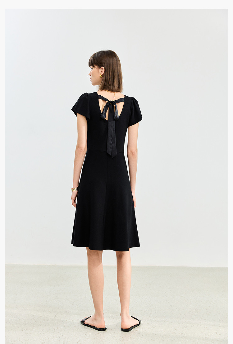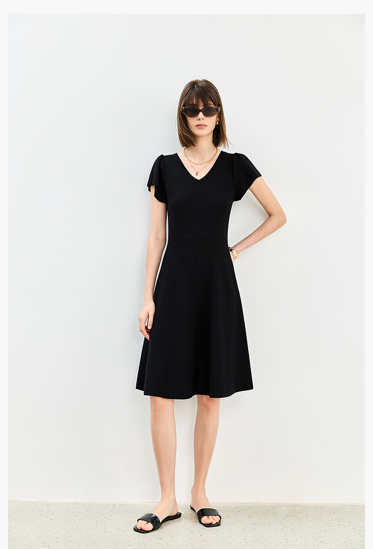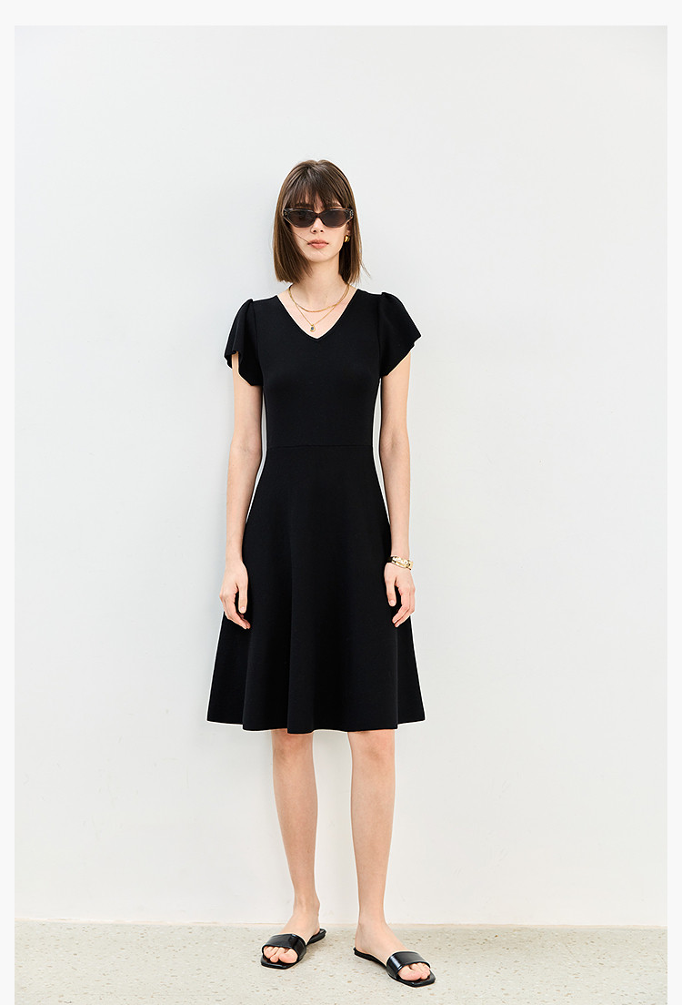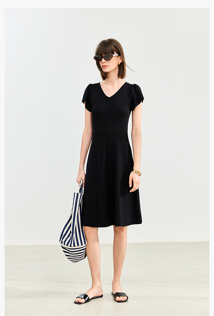 商品名称:连衣裙女夏季气质高级感后背绑带设计收腰显瘦v领小黑裙 558811