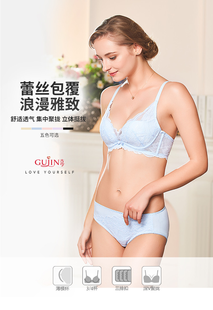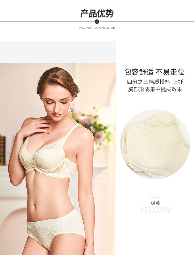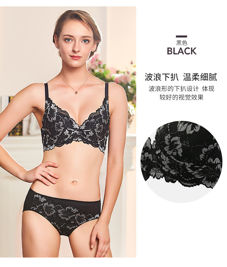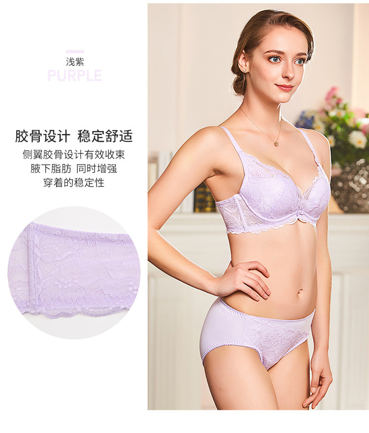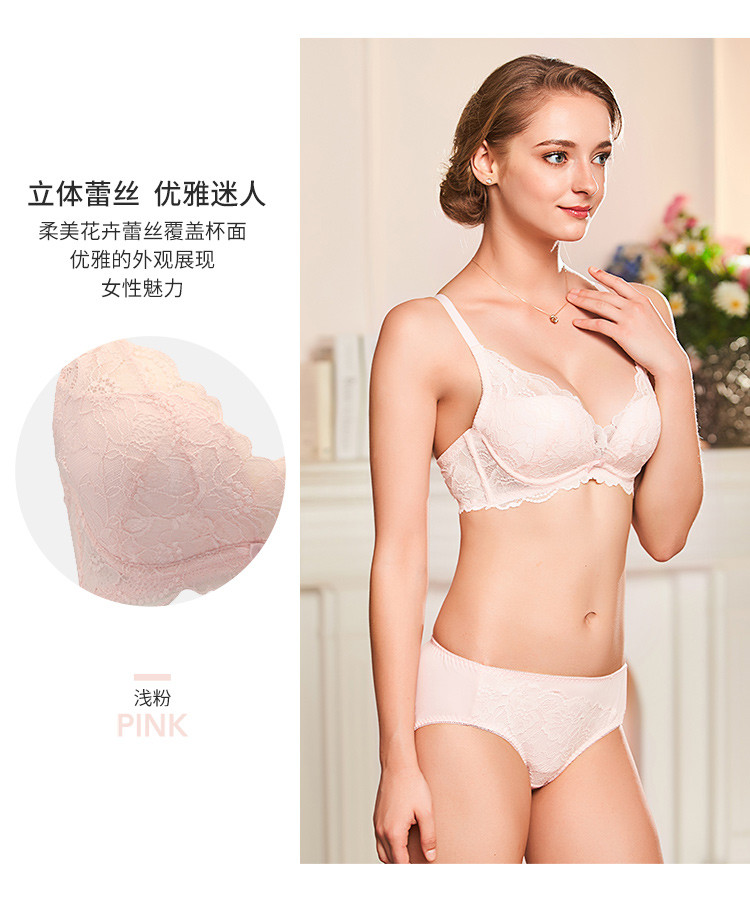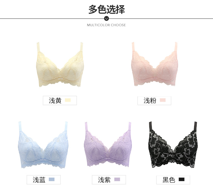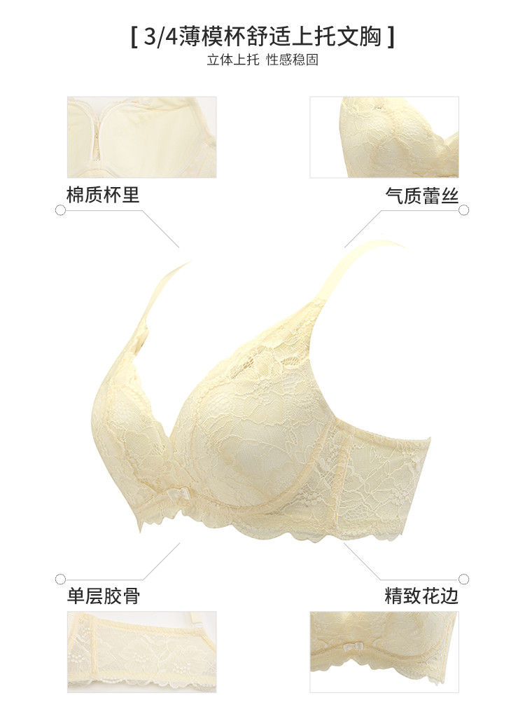 商品名称:【聚拢透气】舒适薄款立体蕾丝有钢圈上托侧收女士内衣文胸罩 380427