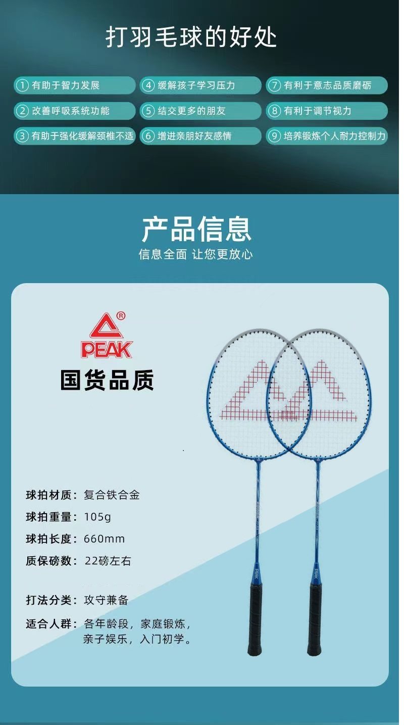 商品名称:匹克初级羽毛球拍双拍对拍超轻高弹耐打专业合金成人学生