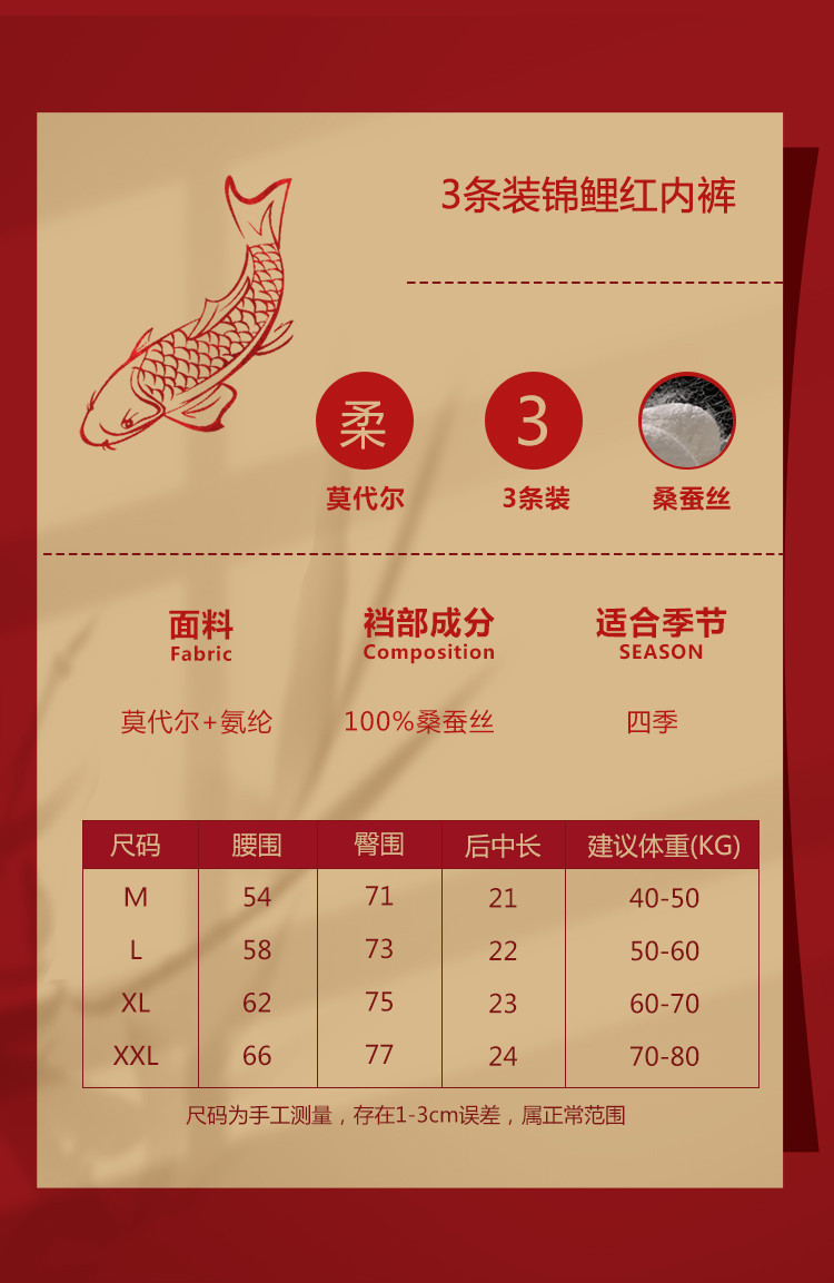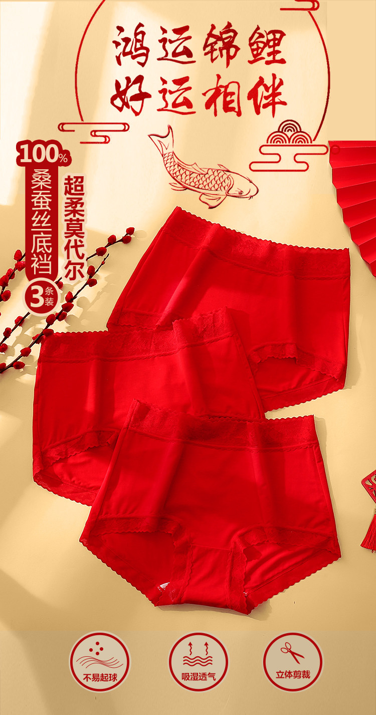 商品名称:【100%桑蚕丝裆】3条装超柔莫代尔三角裤薄款女士内裤女夏季 610078