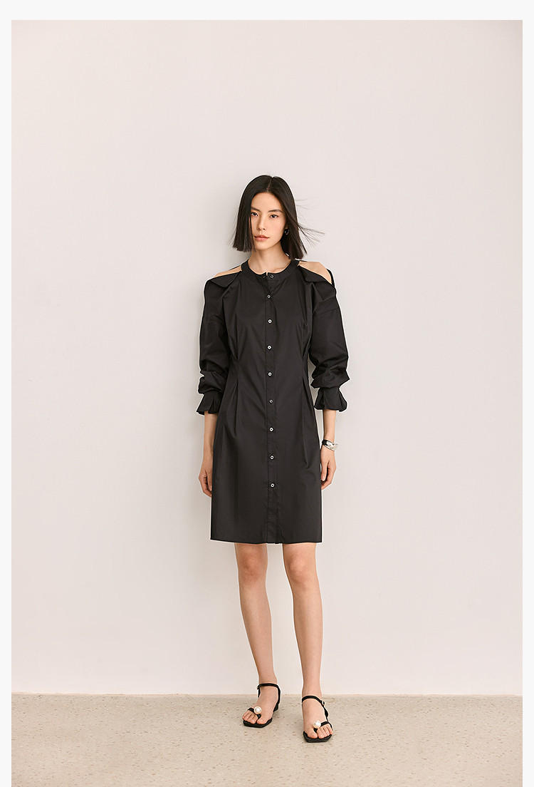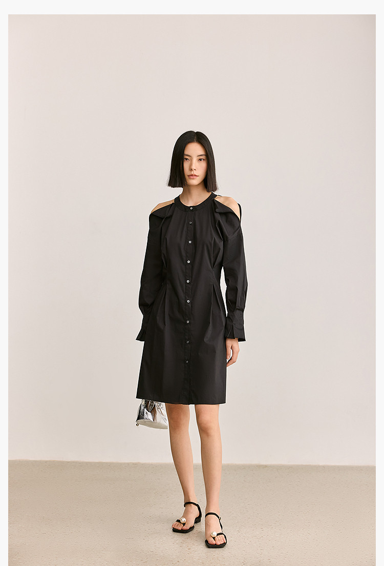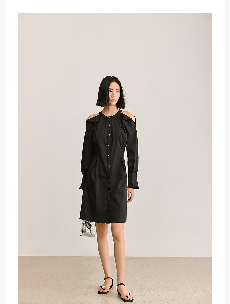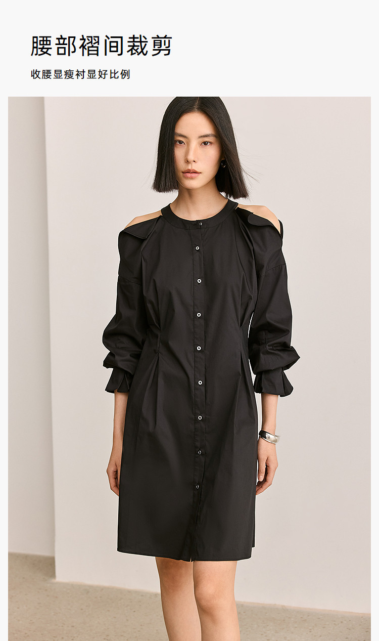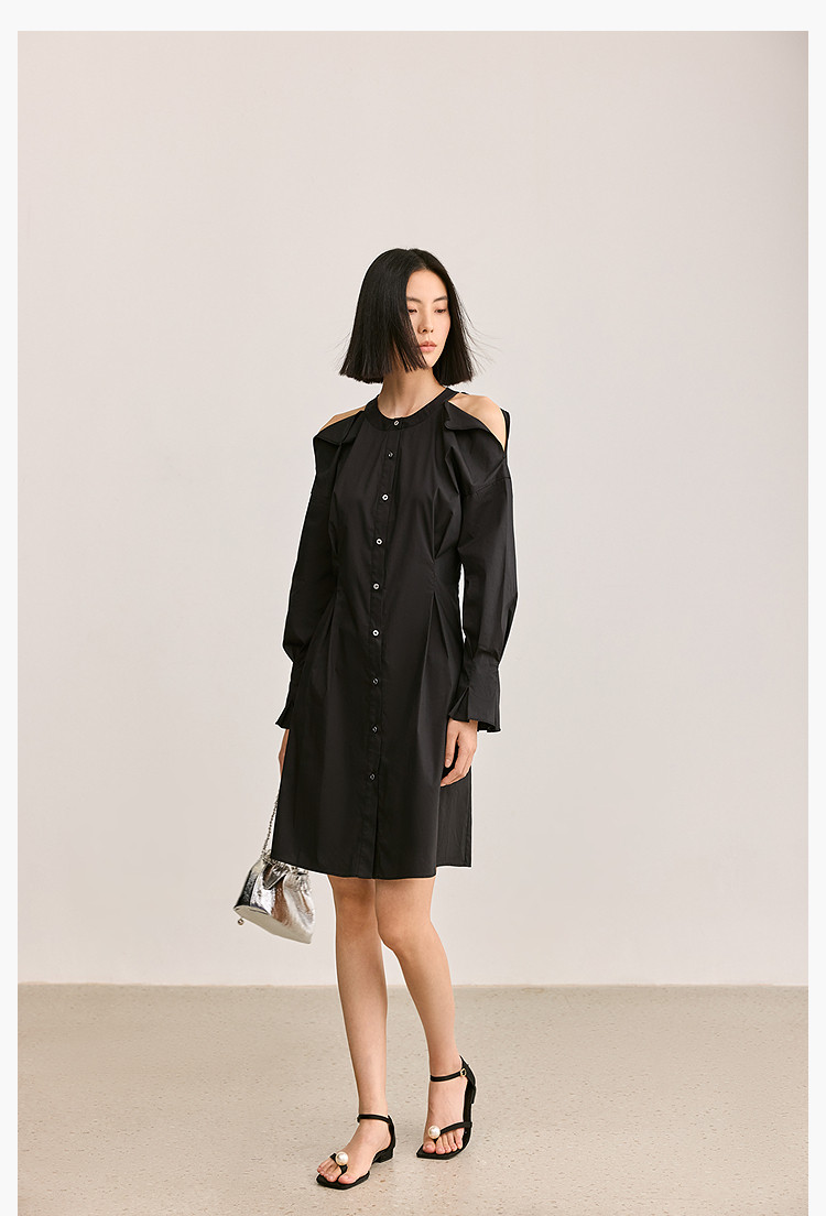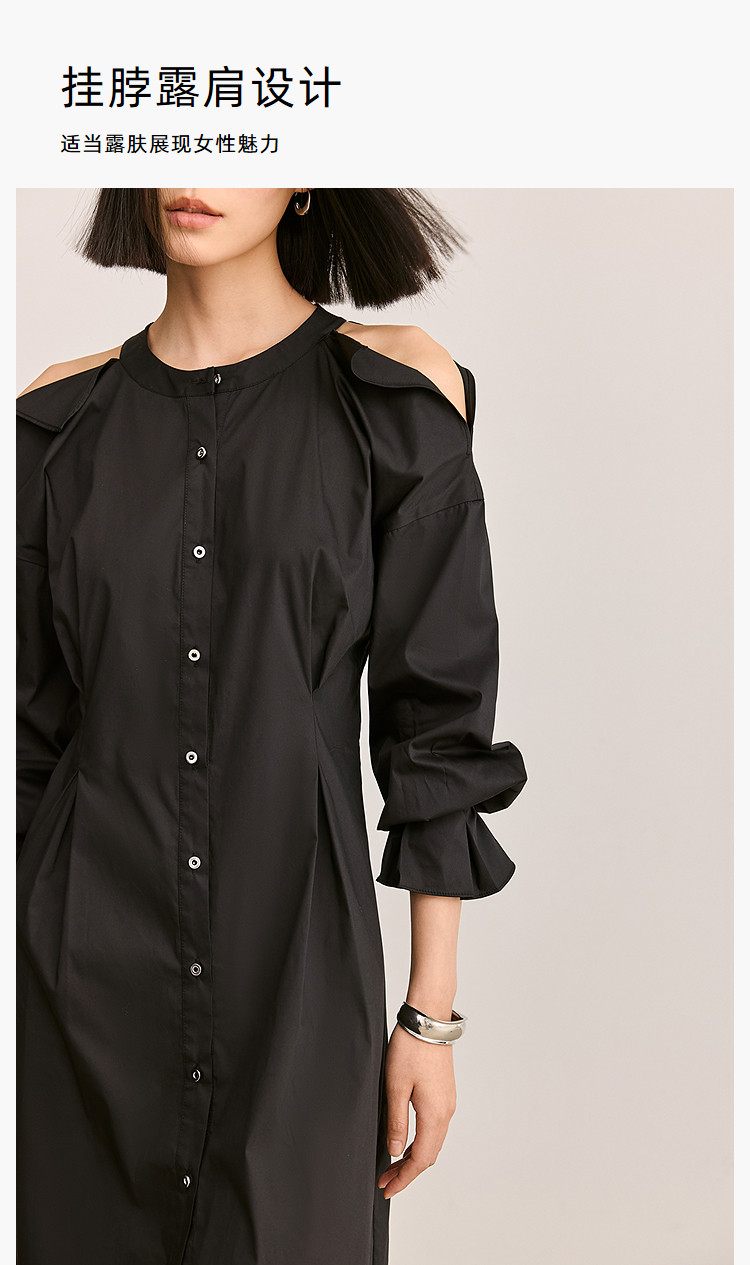 商品名称:夏季气质通勤款时尚设计感露肩收腰连衣裙小黑裙女 303579