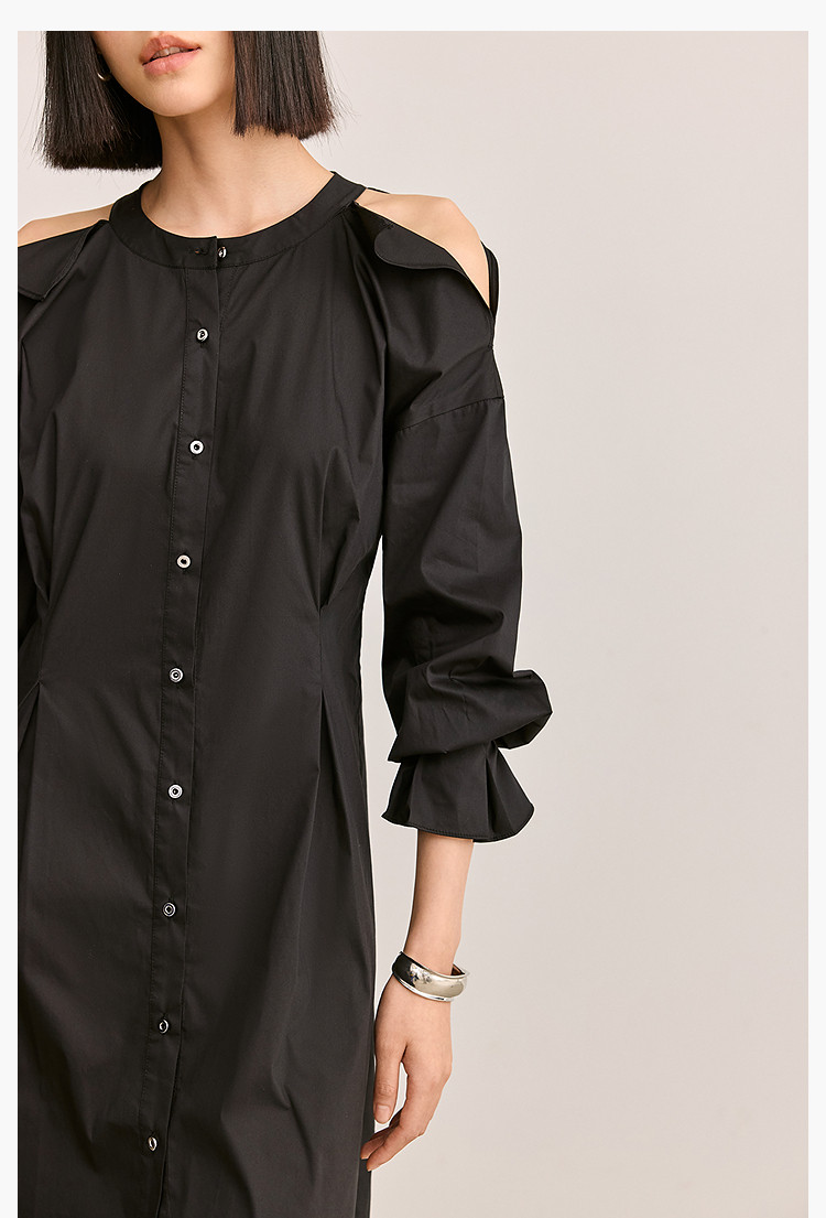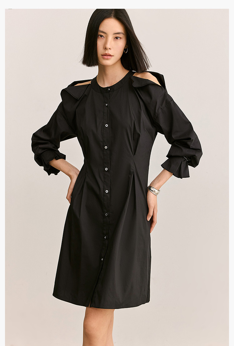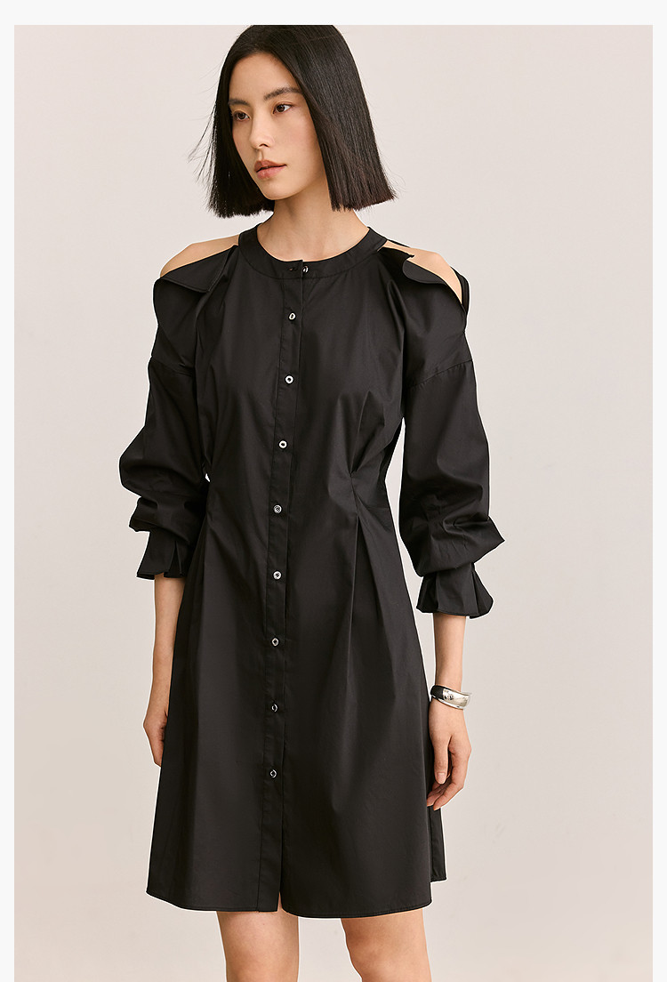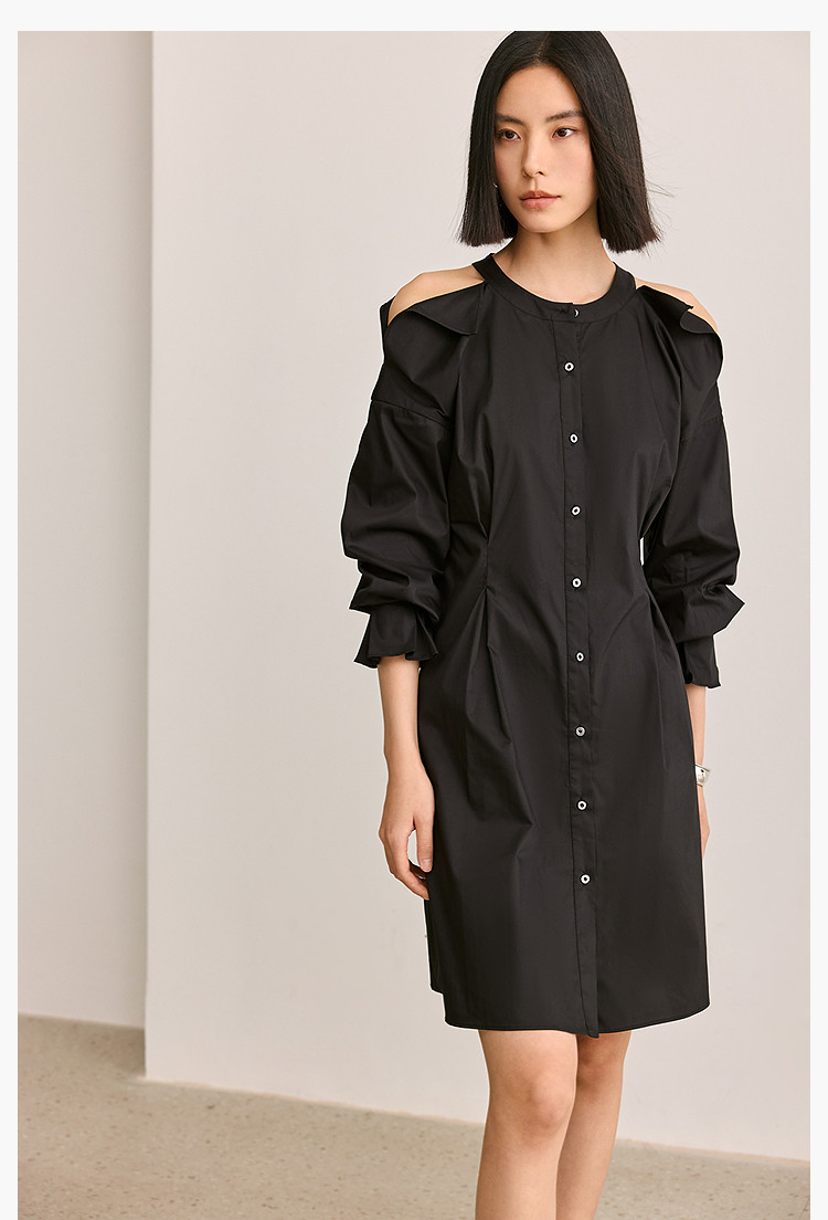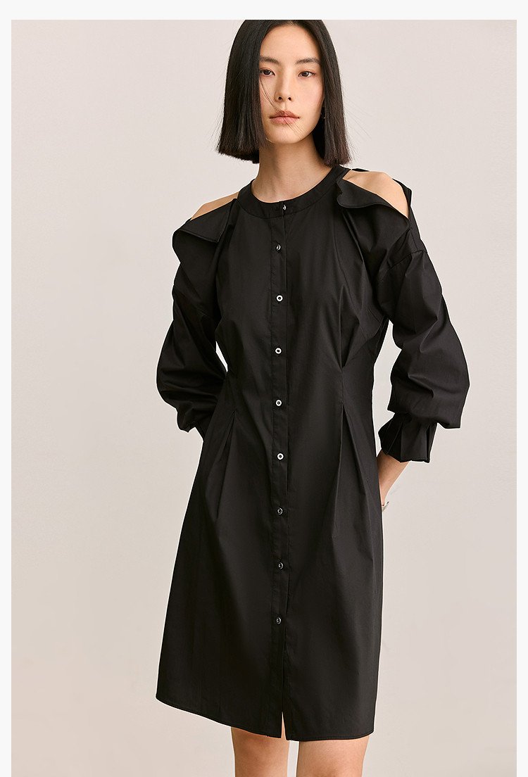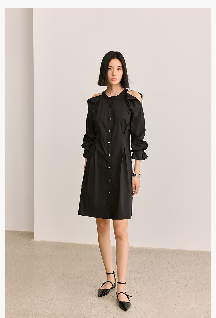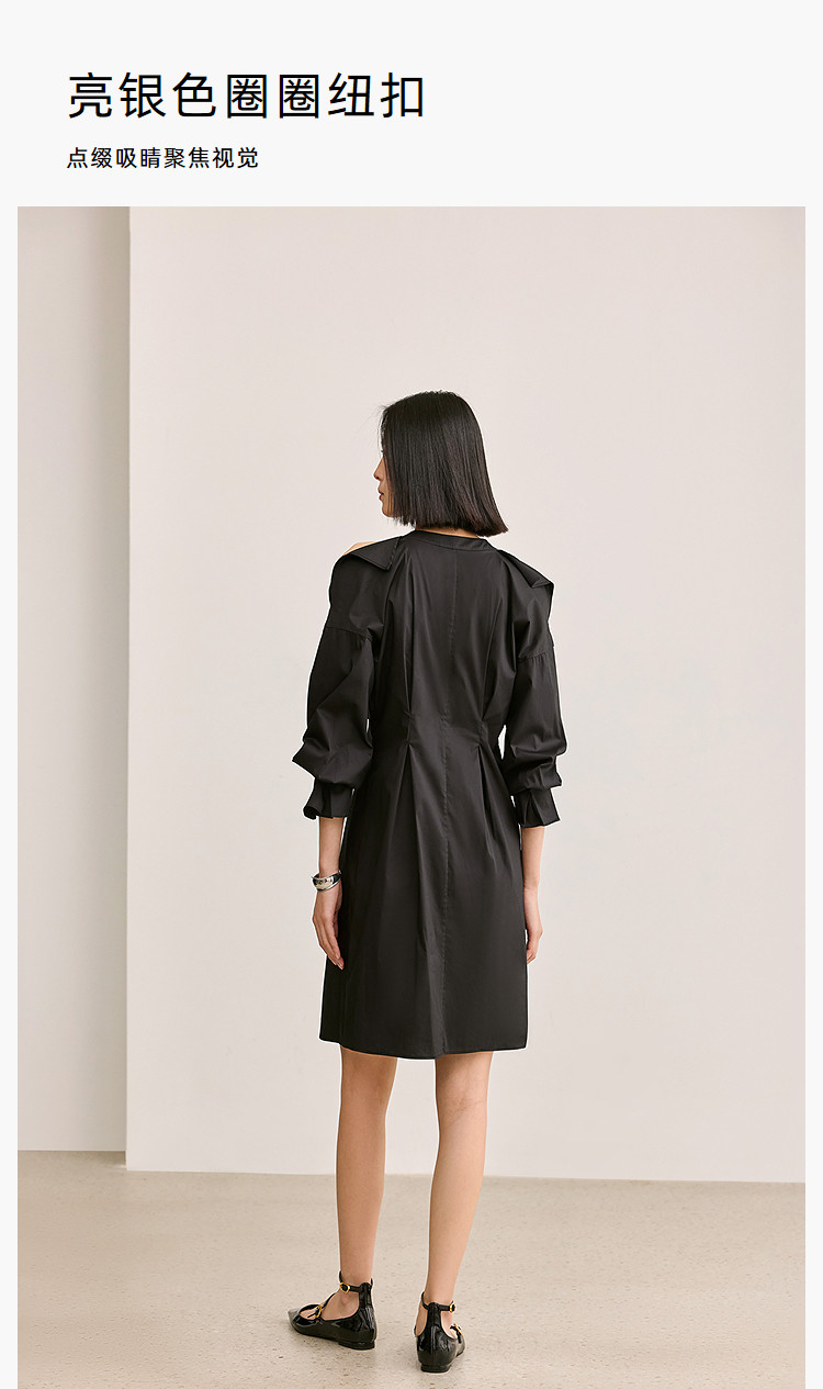 商品名称:夏季气质通勤款时尚设计感露肩收腰连衣裙小黑裙女 303579