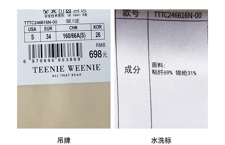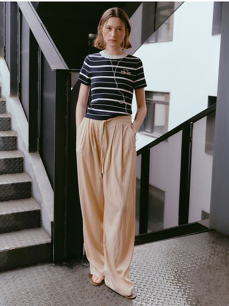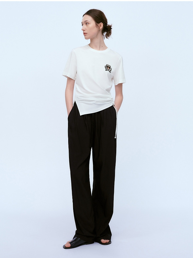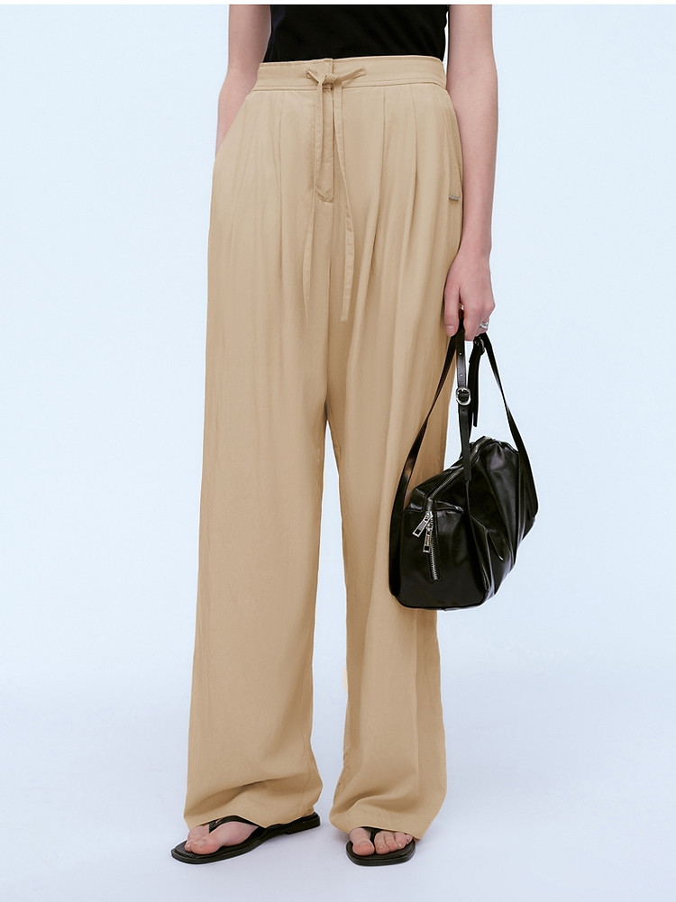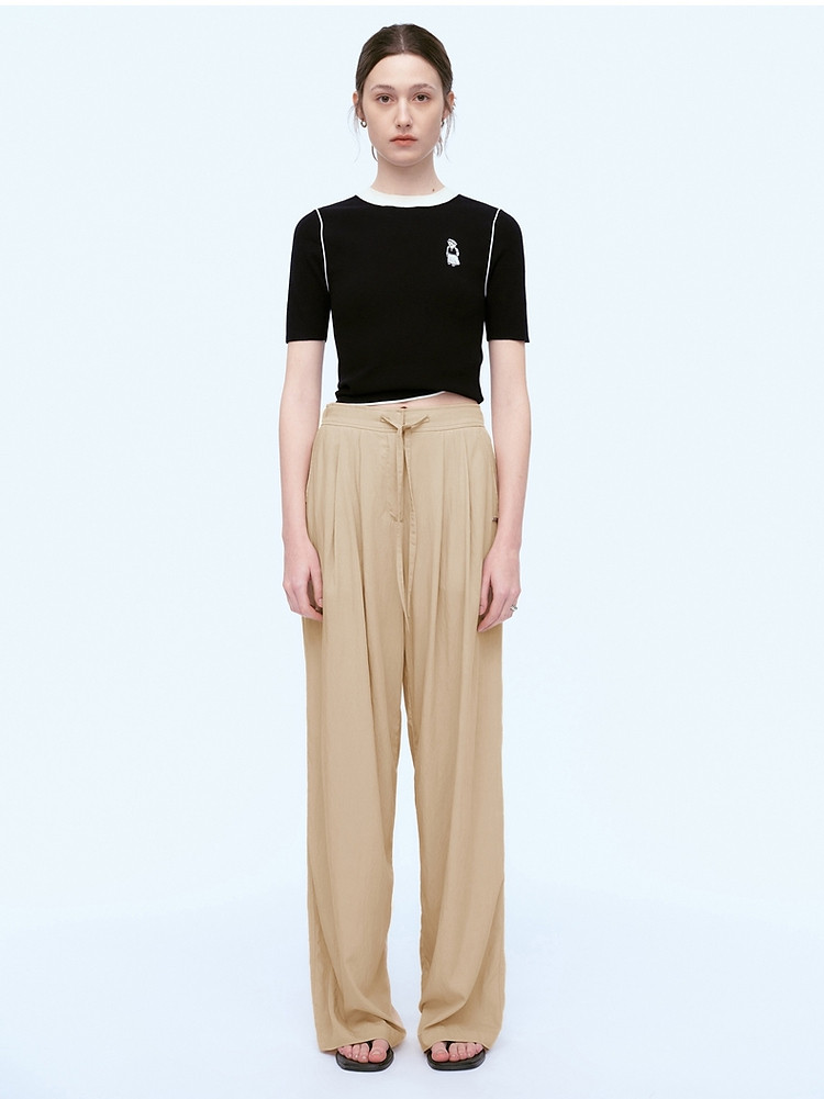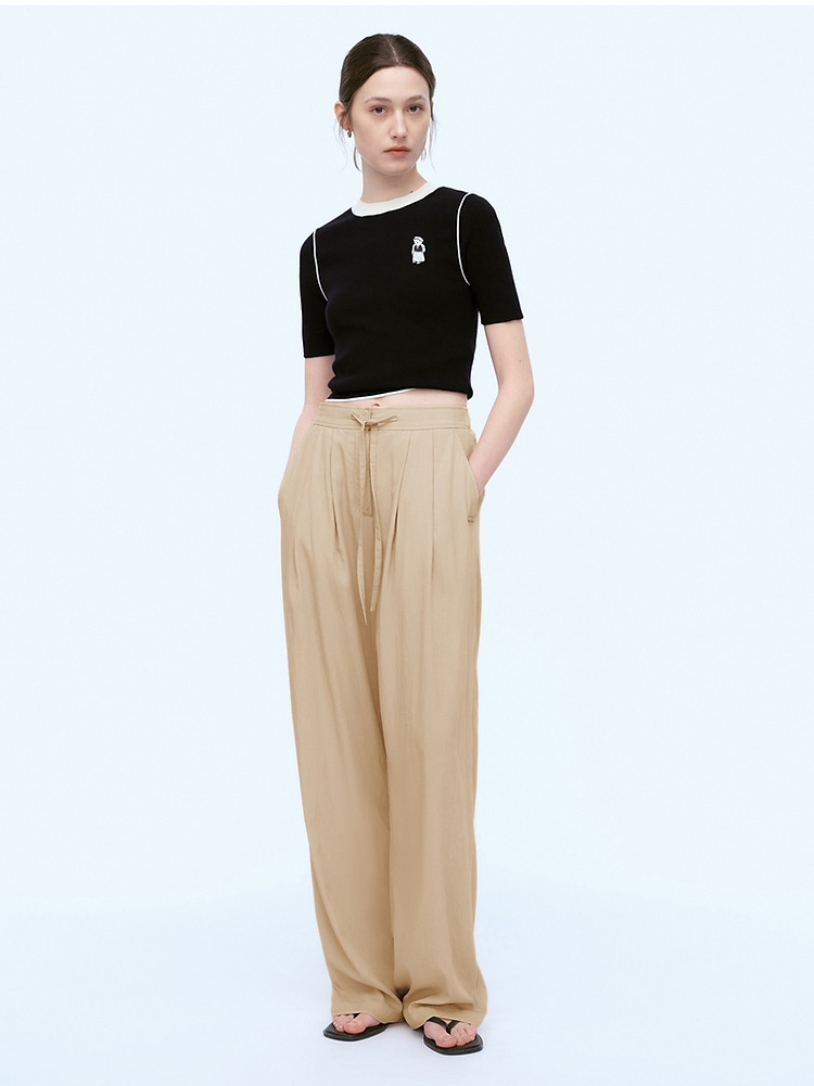 商品名称:小熊女装春夏时尚宽松抽绳直筒简约休闲裤轻薄长裤子 935169