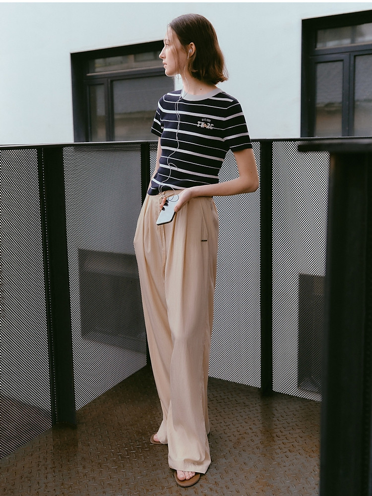小熊女装春夏时尚宽松抽绳直筒简约休闲裤轻薄长裤子 935169