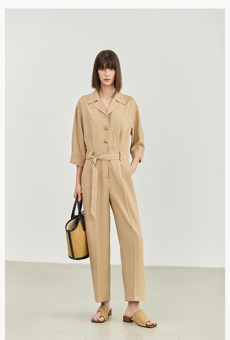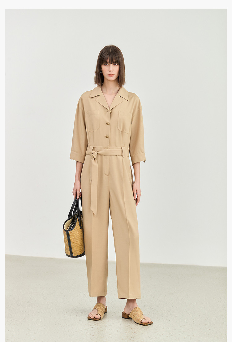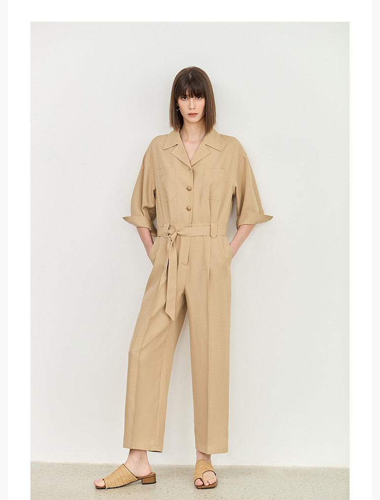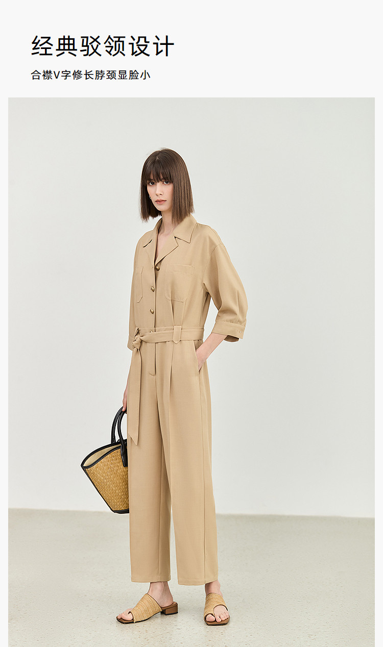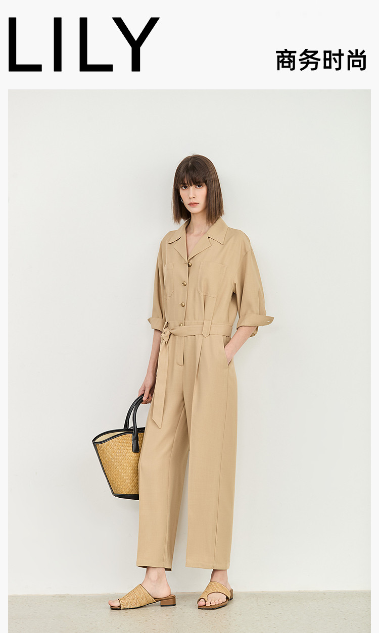 夏季都市通勤款时尚腰带休闲显瘦高腰工装裤连体裤 276699