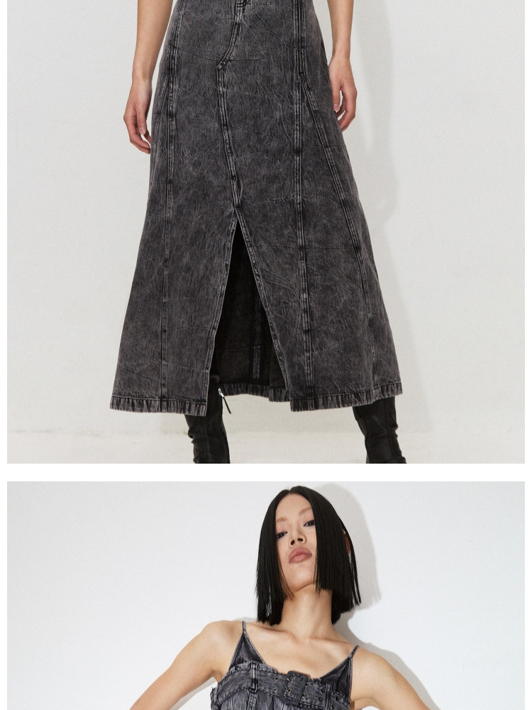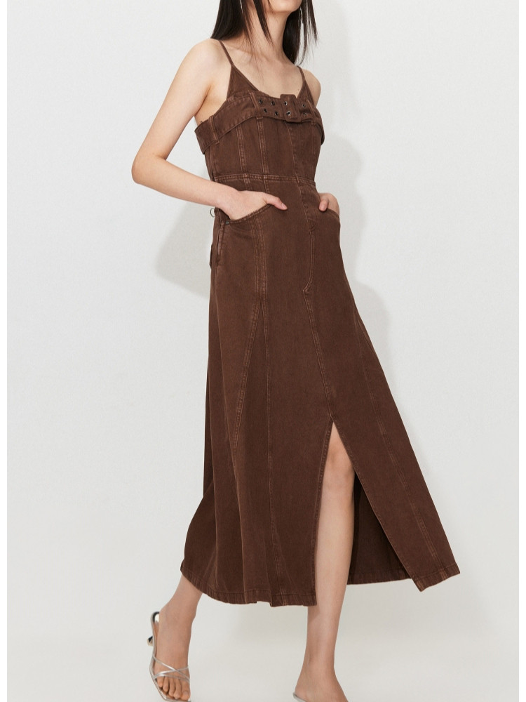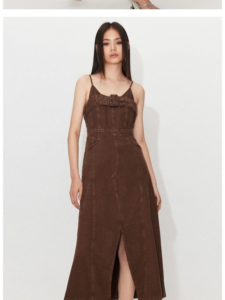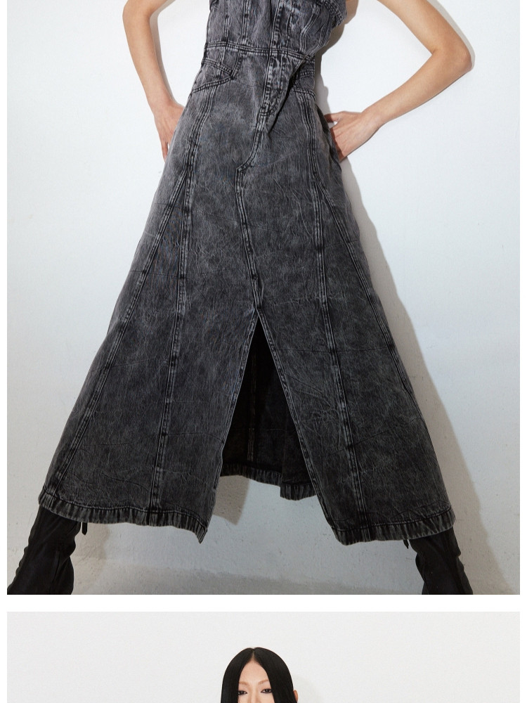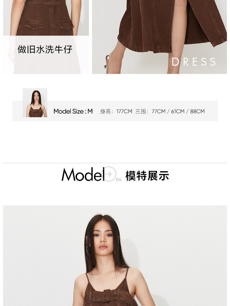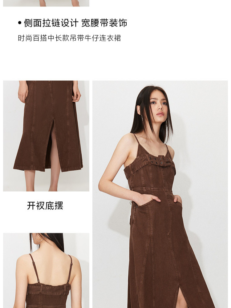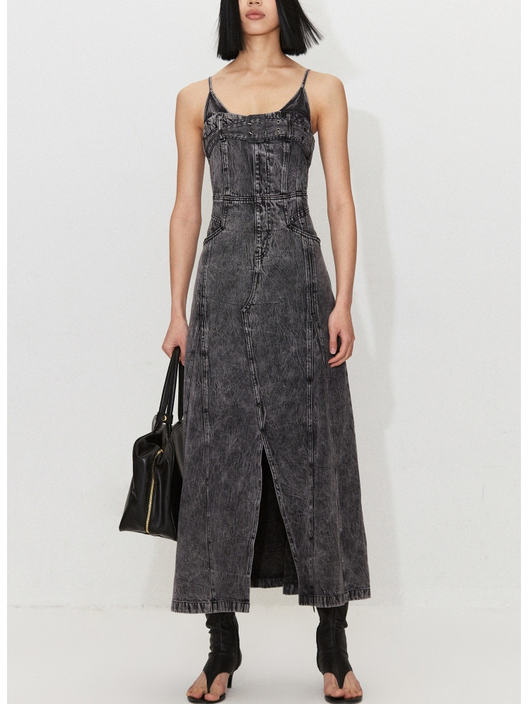 【做旧水洗】 夏季时尚百搭中长款吊带牛仔连衣裙女 247386