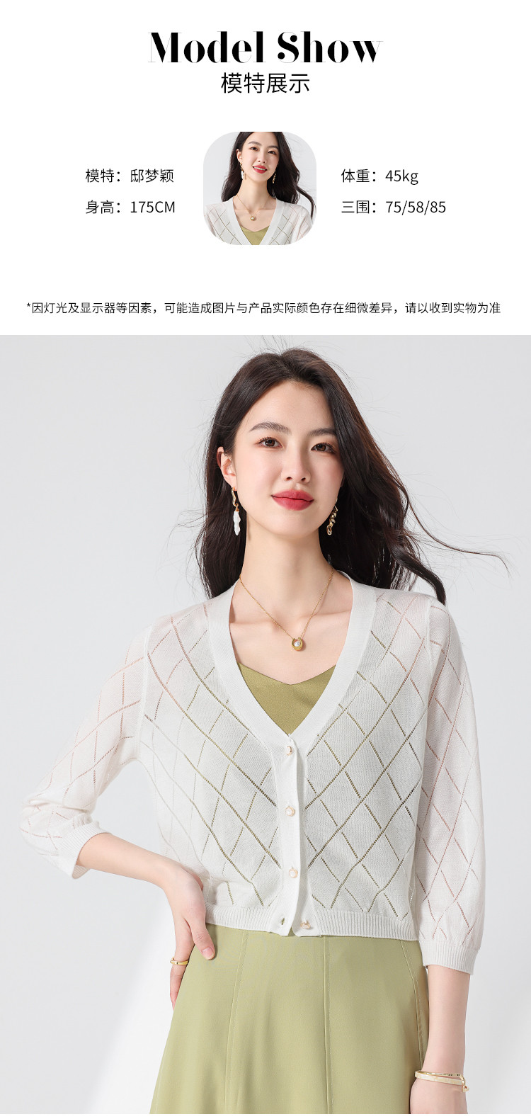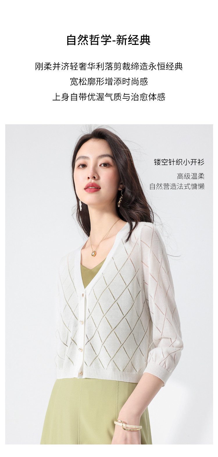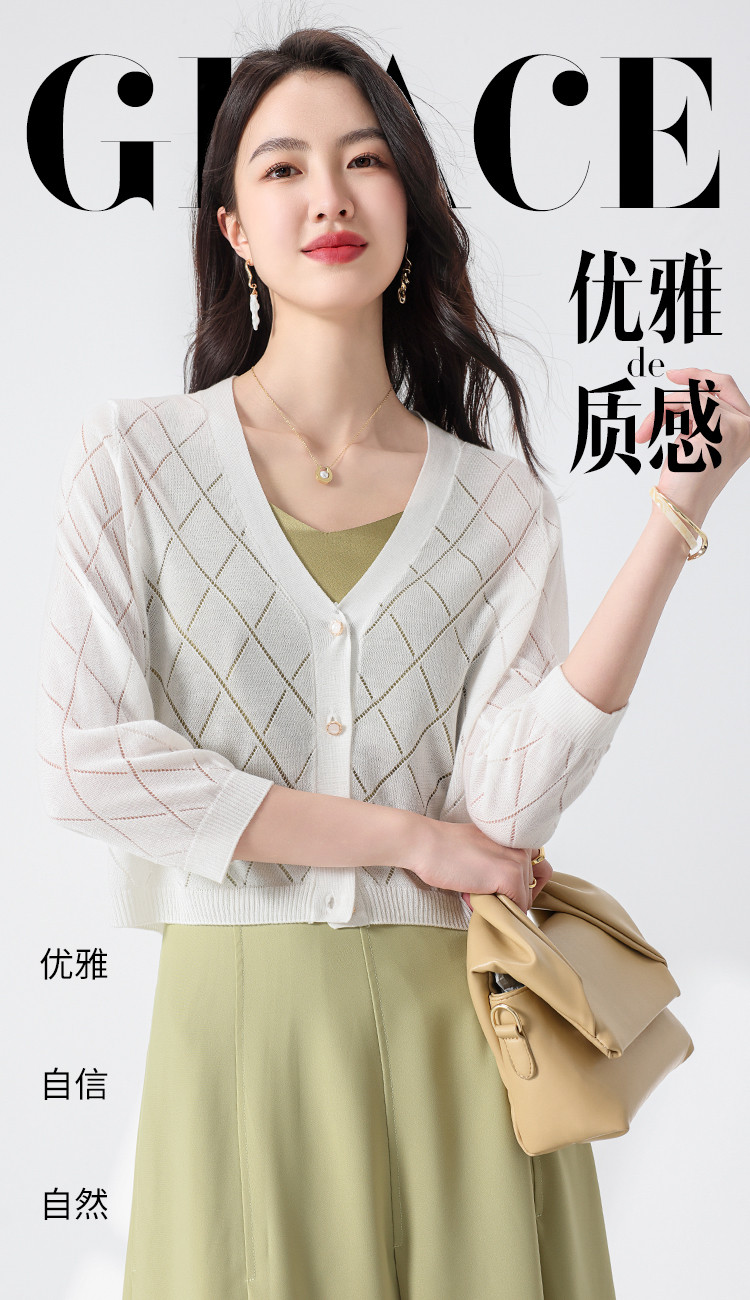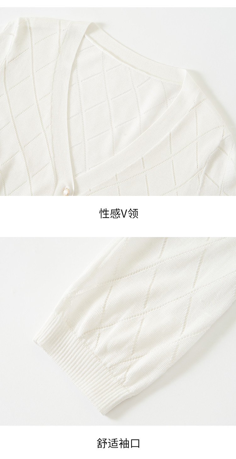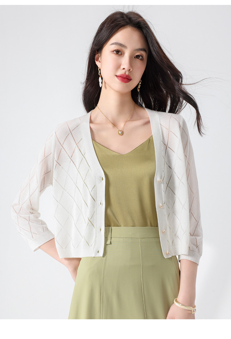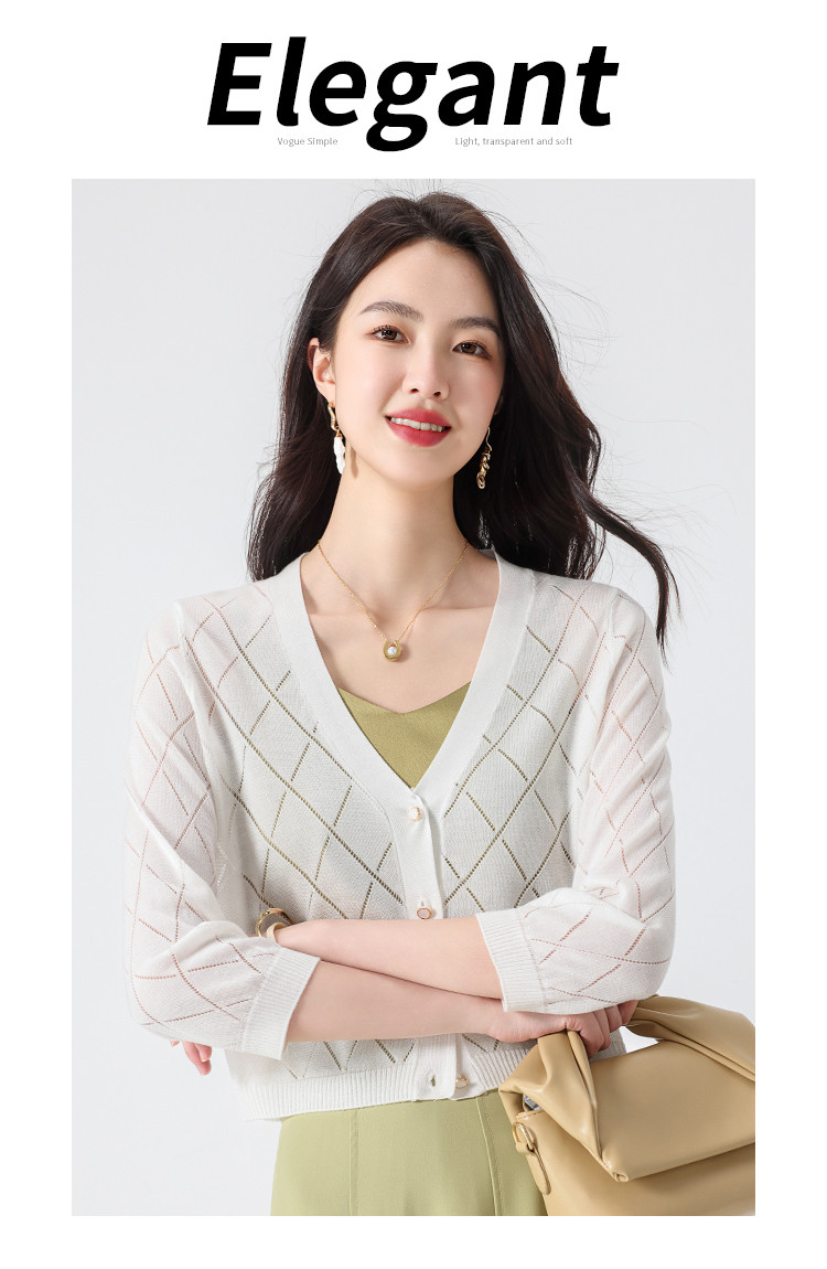 商品名称:【含桑蚕丝】轻薄透气纯色百搭镂空针织开衫毛衣夏款外套空调衫 021715
