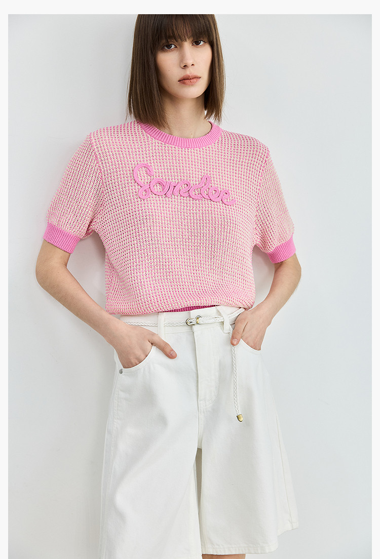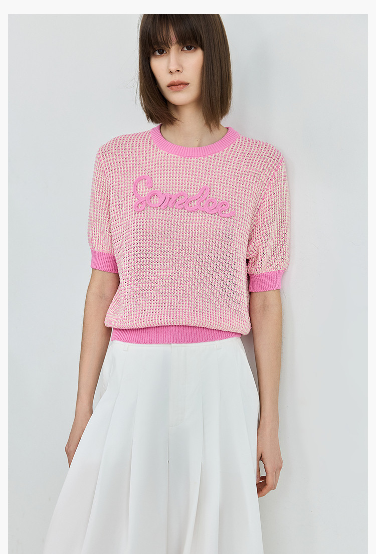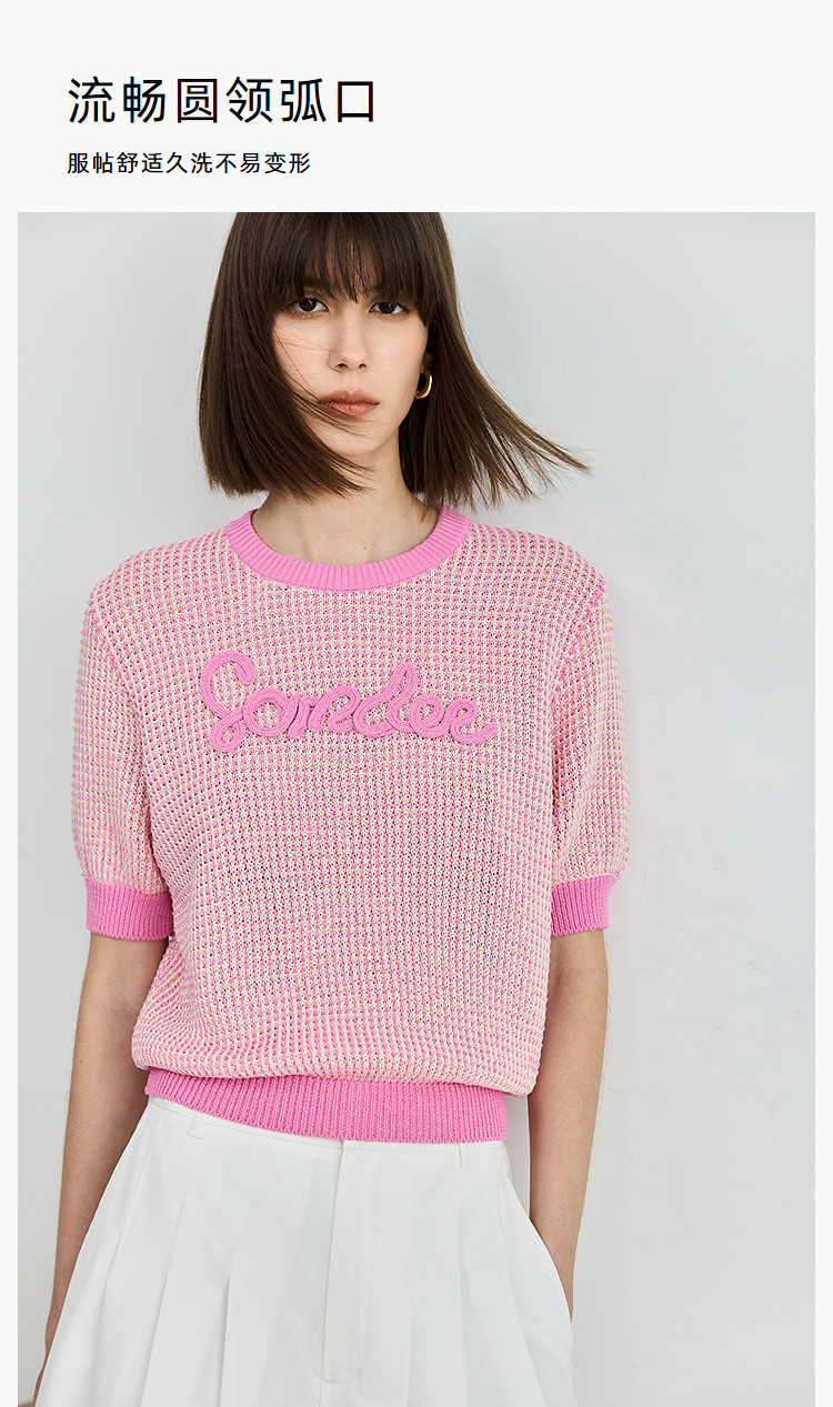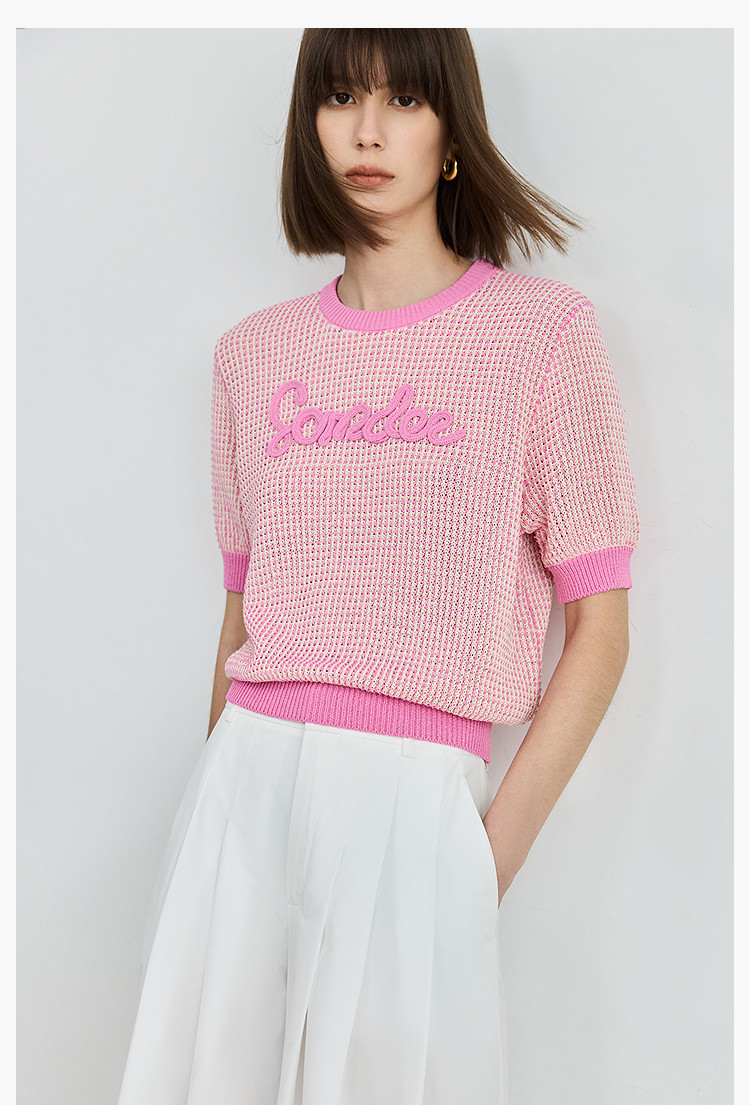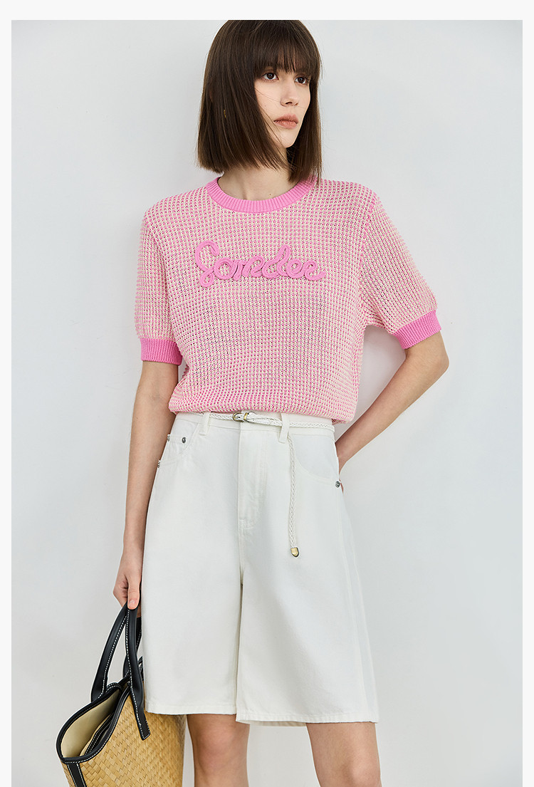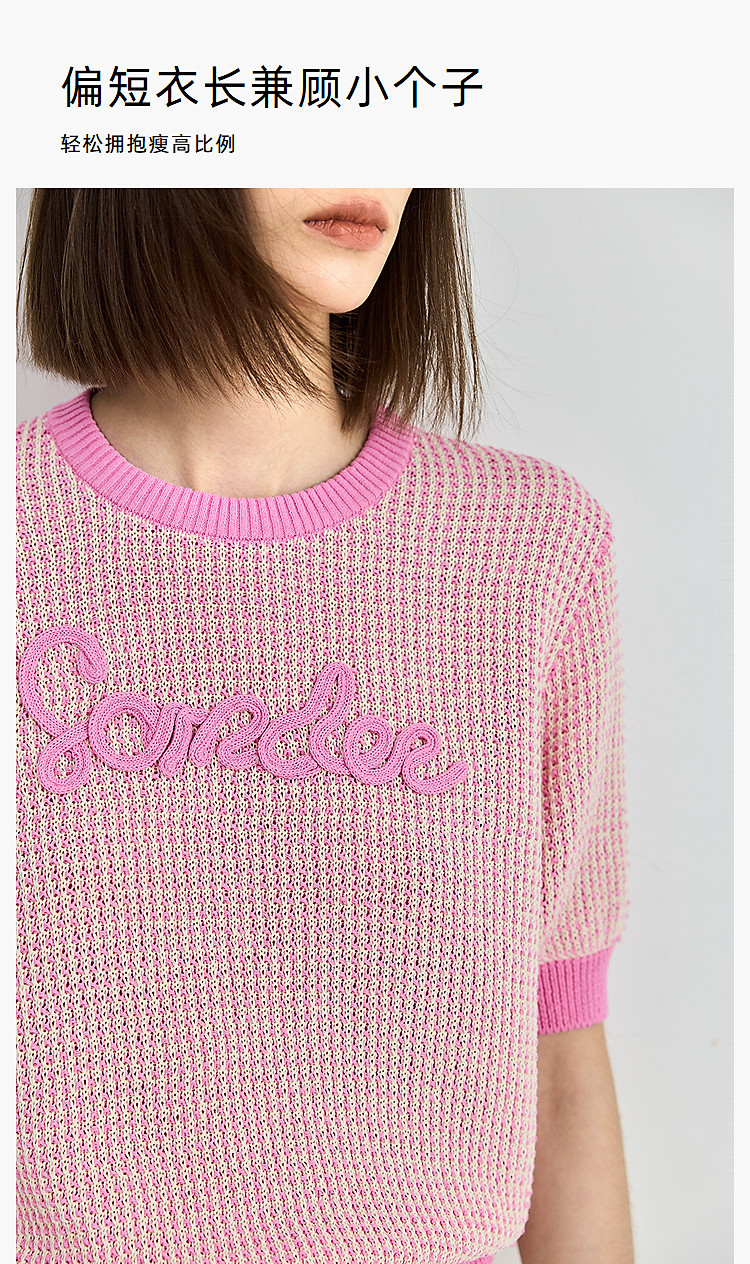 气质小香风针织衫女夏季时尚显瘦小衫宽松休闲淑女短袖圆领上衣女 172611