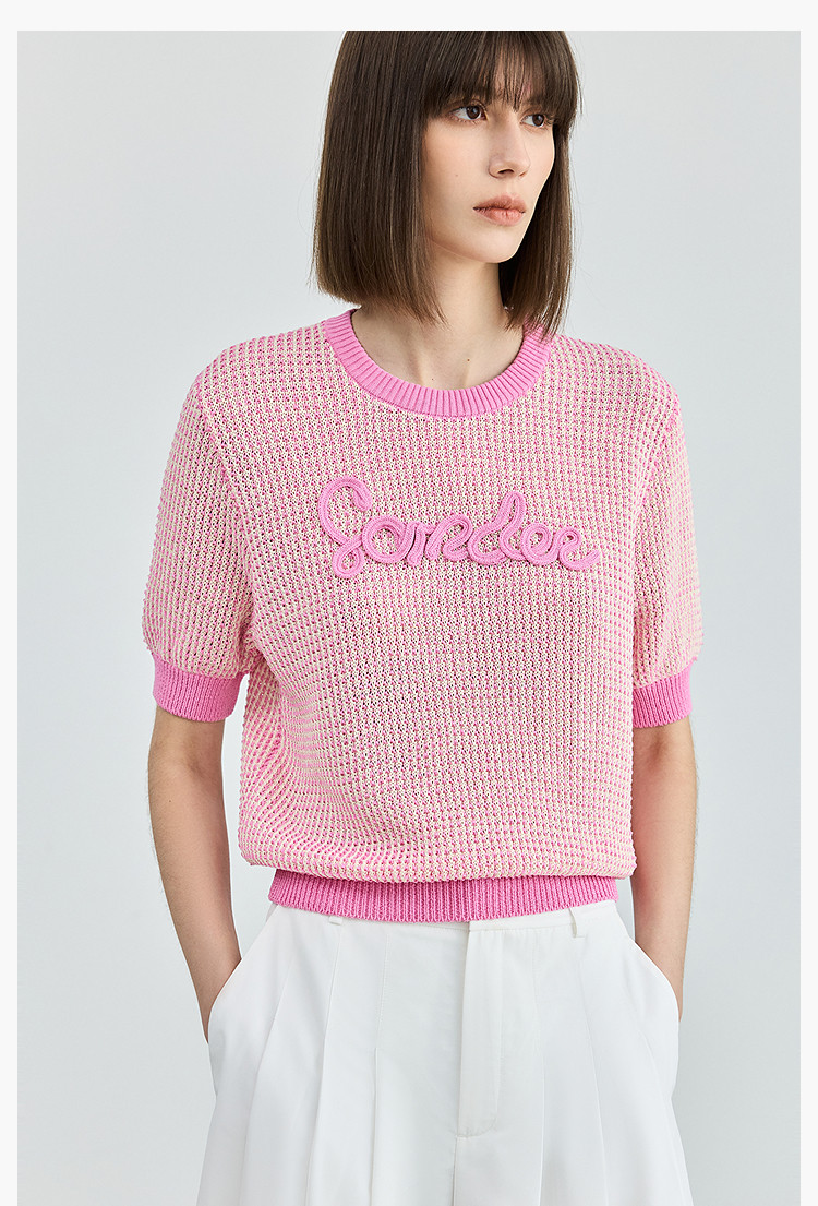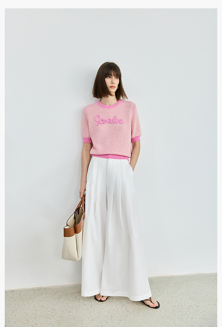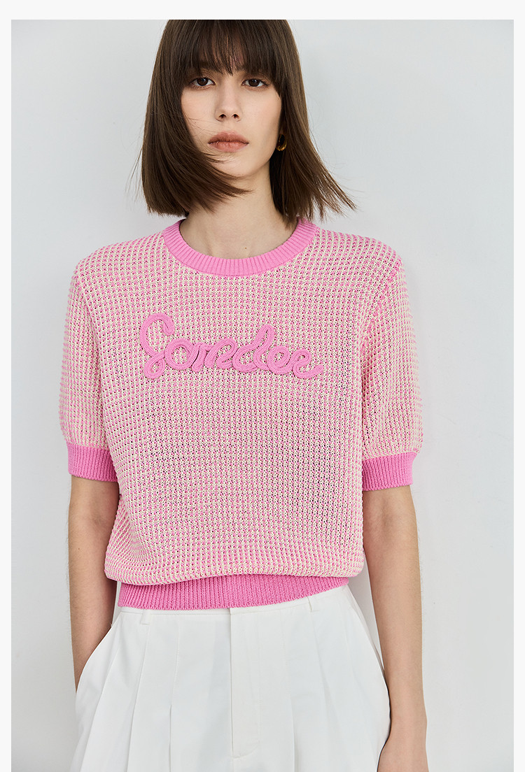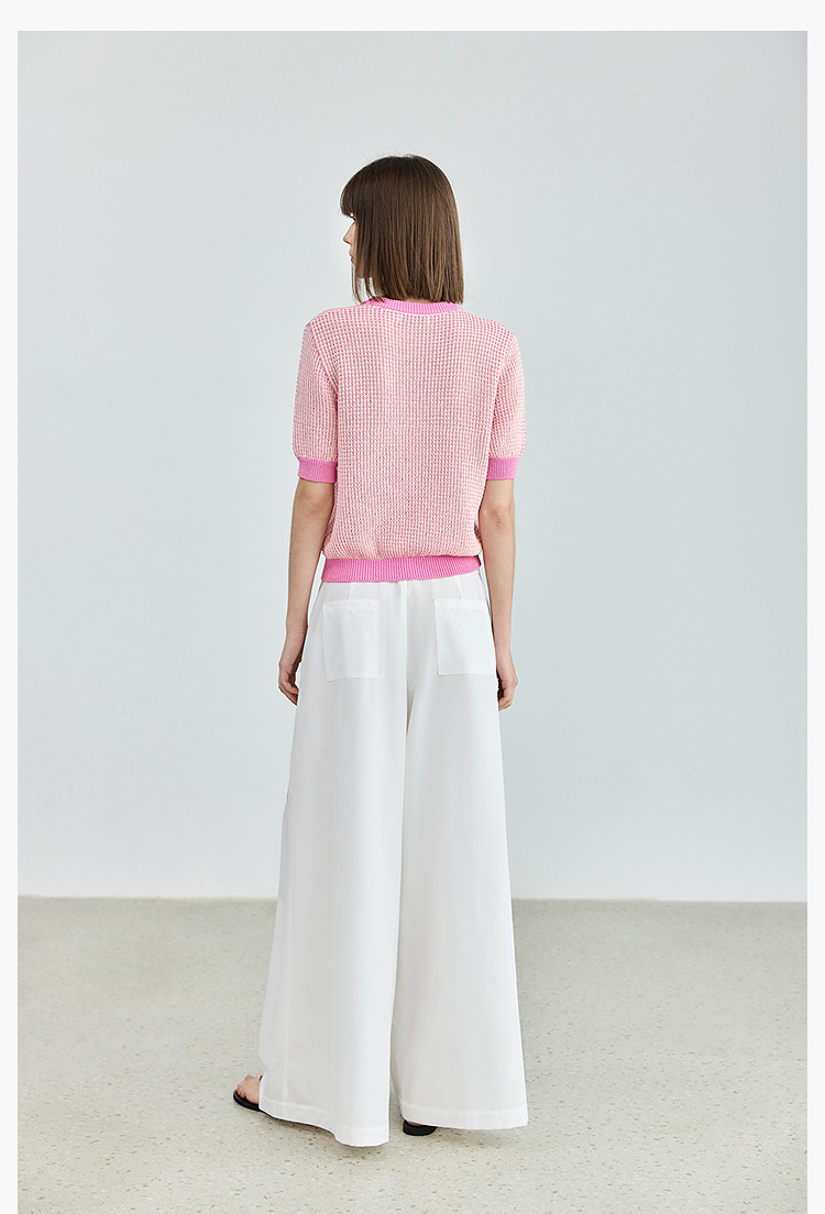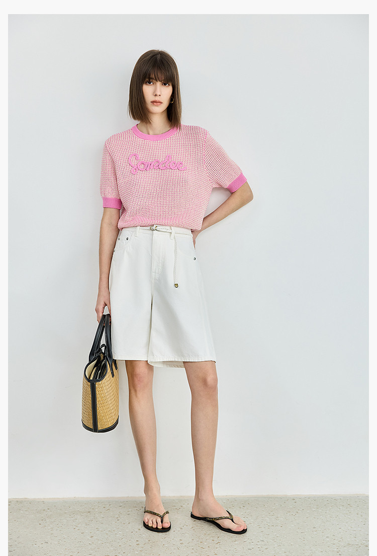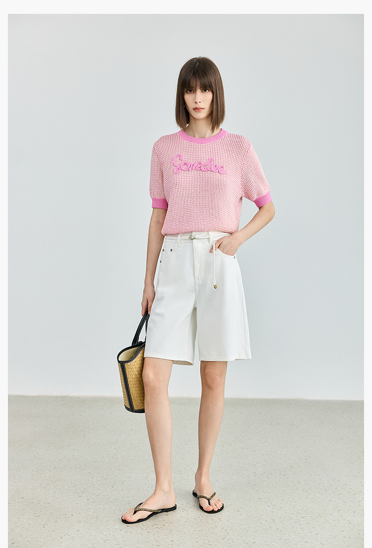 气质小香风针织衫女夏季时尚显瘦小衫宽松休闲淑女短袖圆领上衣女 172611