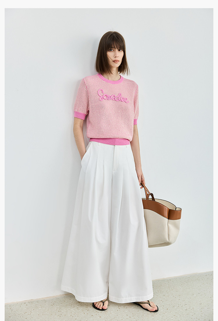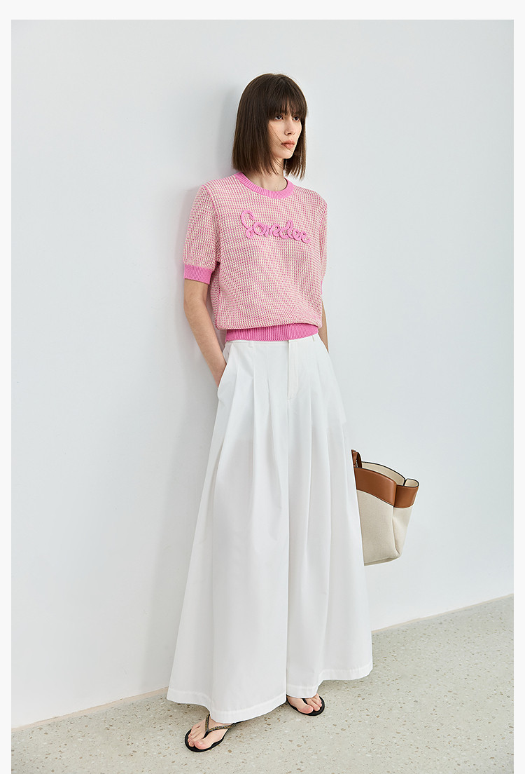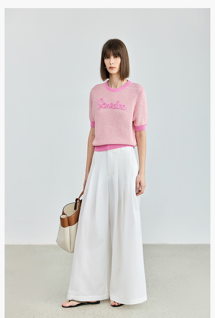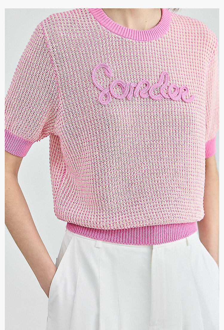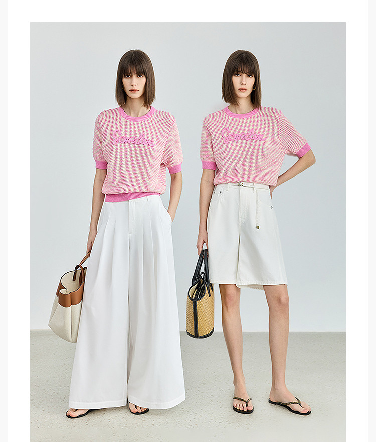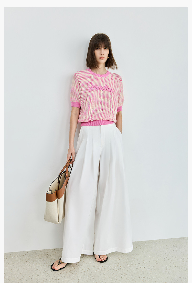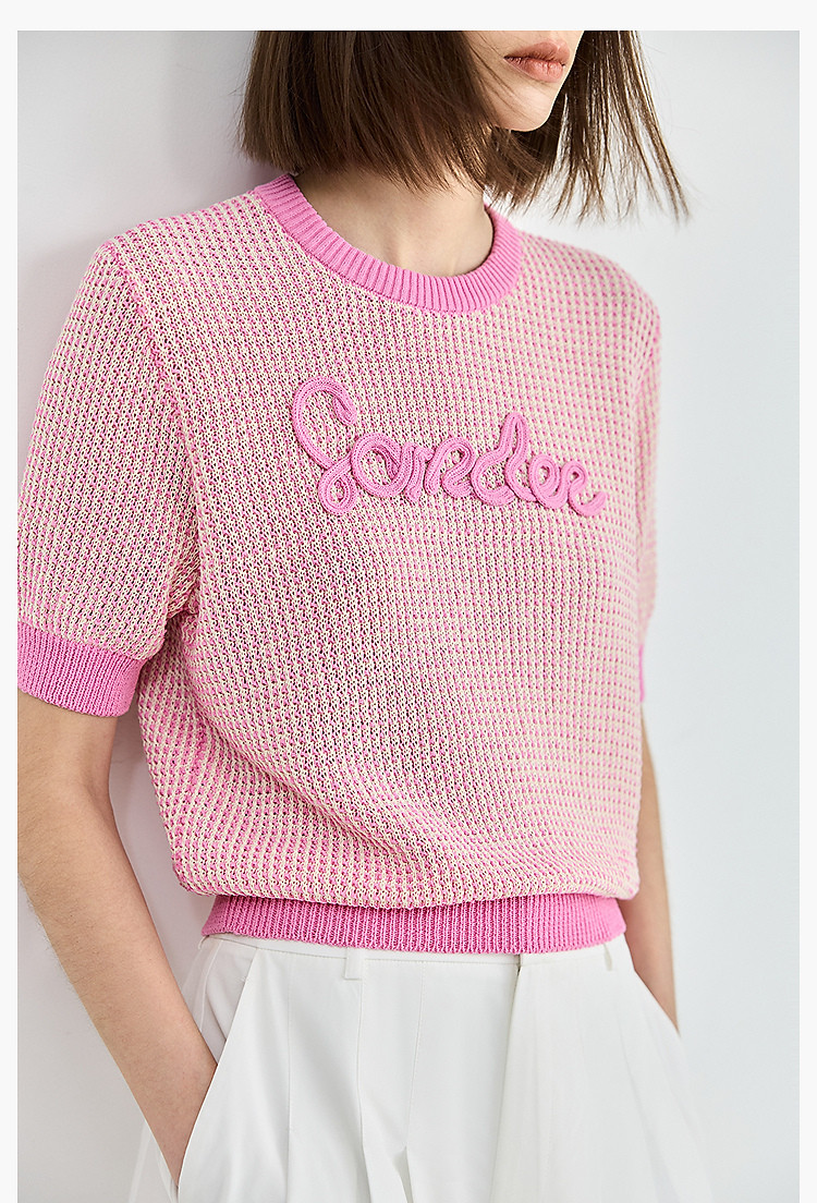 气质小香风针织衫女夏季时尚显瘦小衫宽松休闲淑女短袖圆领上衣女 172611