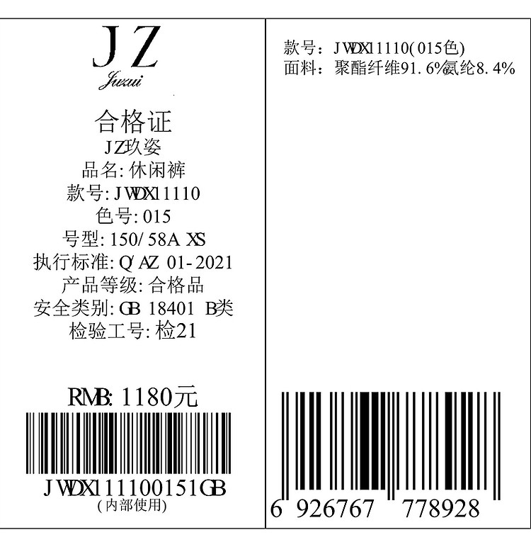 商品名称:JZ玖姿商场同款OL通勤直筒休闲裤女夏季JWDX11110 757516