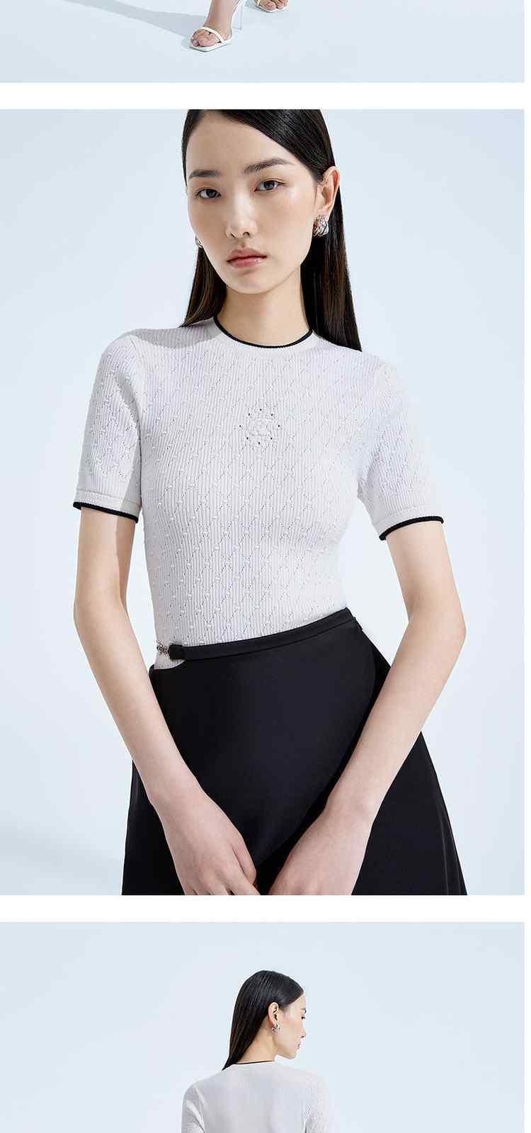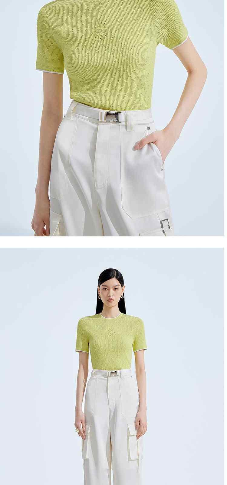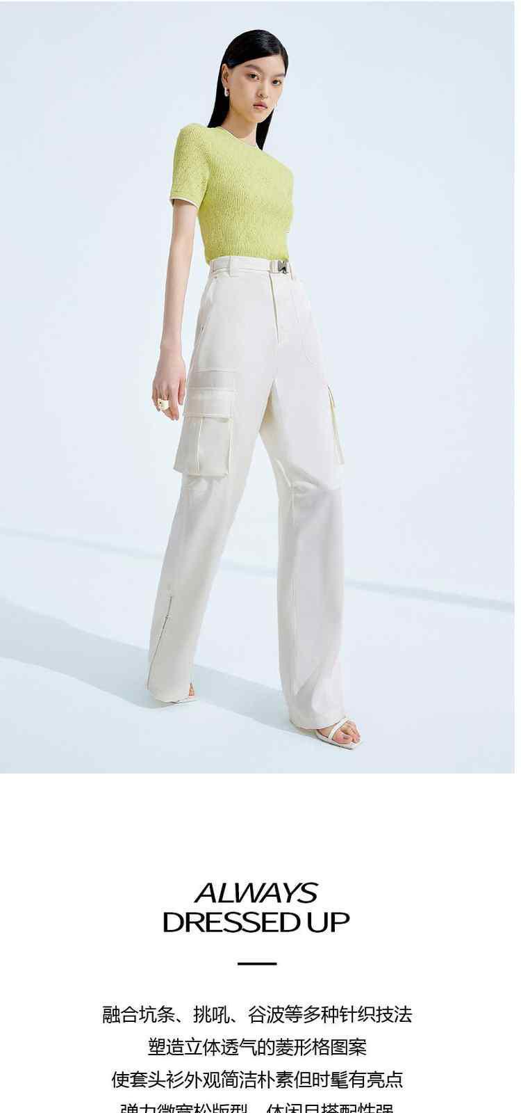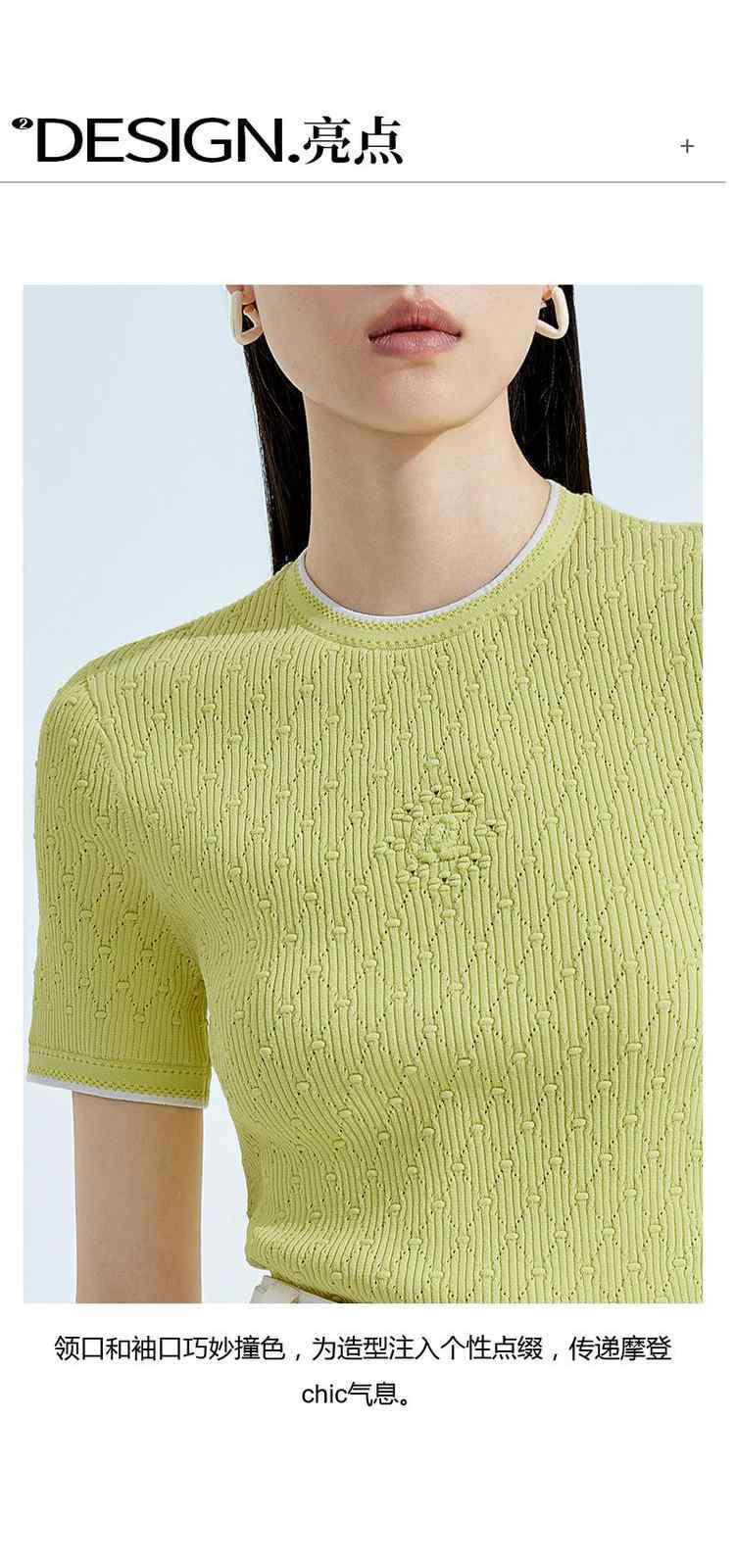 商品名称:春装 撞边菱格修身短袖针织衫女 327567