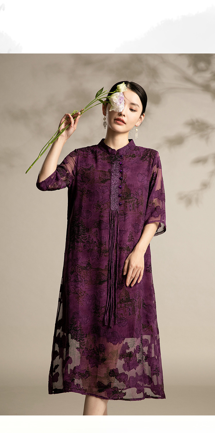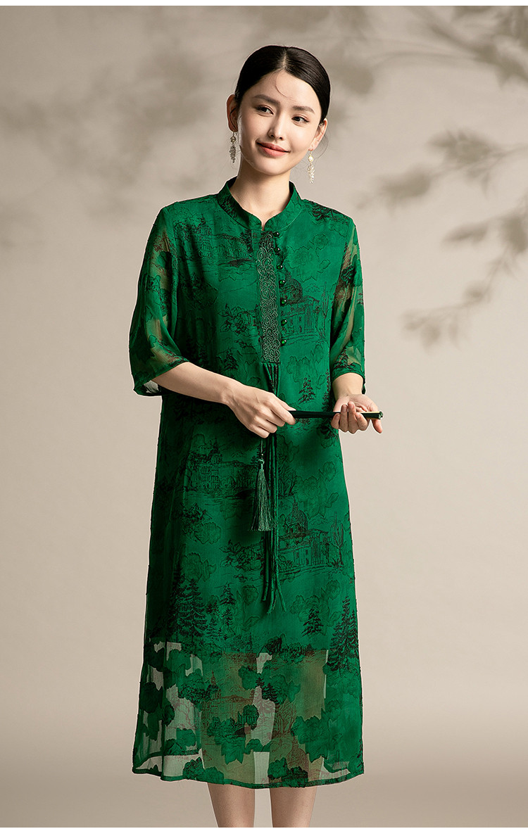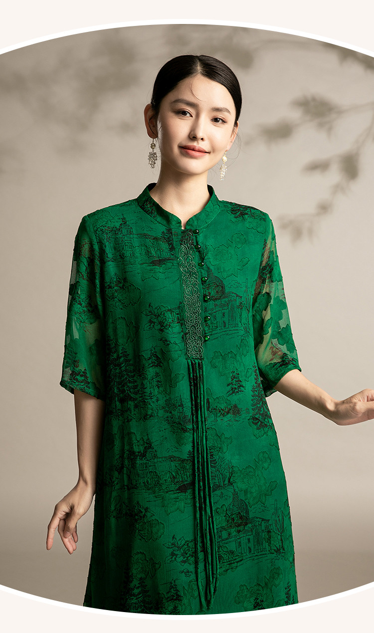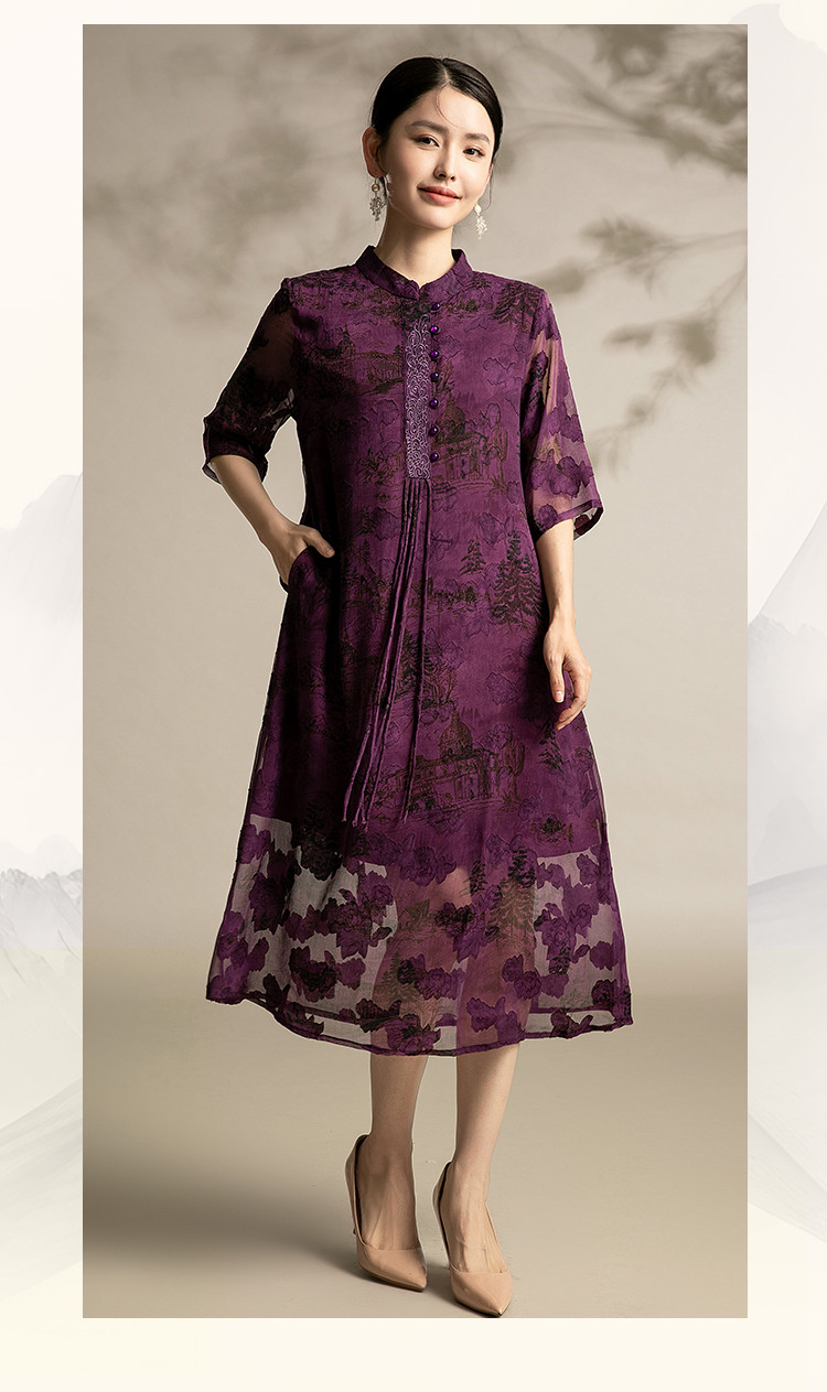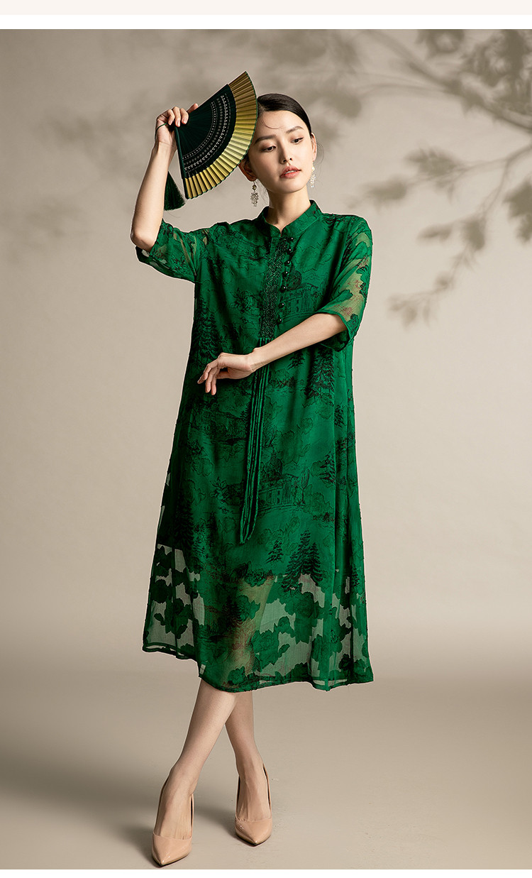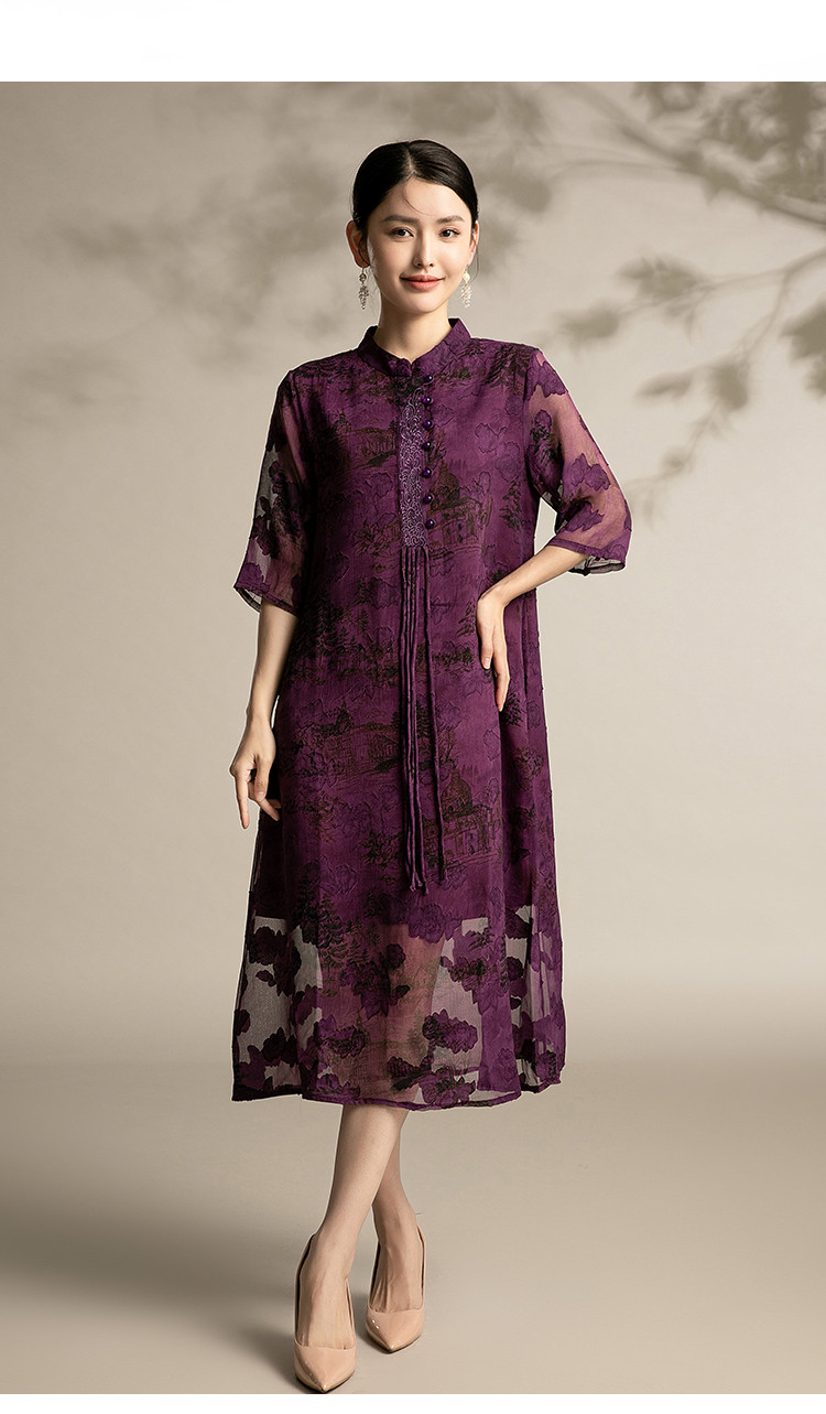 商品名称:夏季改良版舒适连衣裙洋气印花裙中年中国风宽松舒适裙子 641695