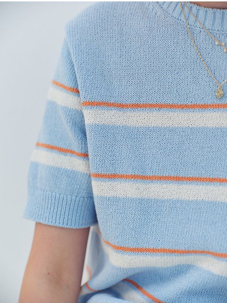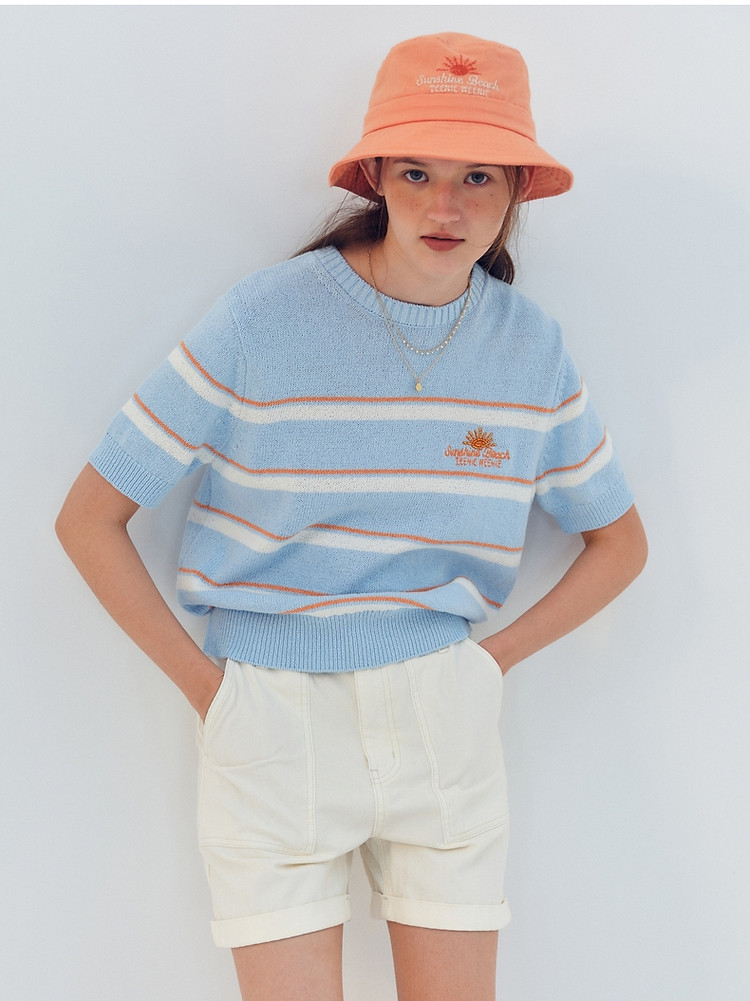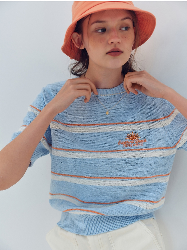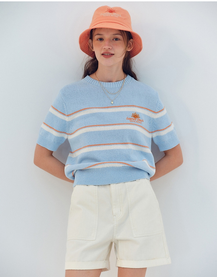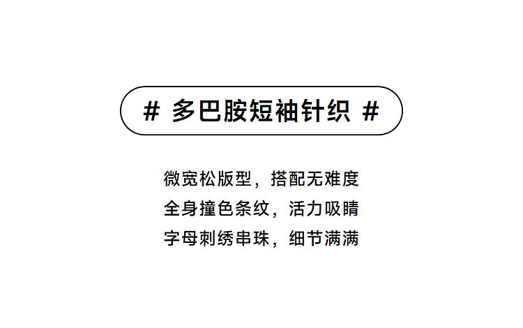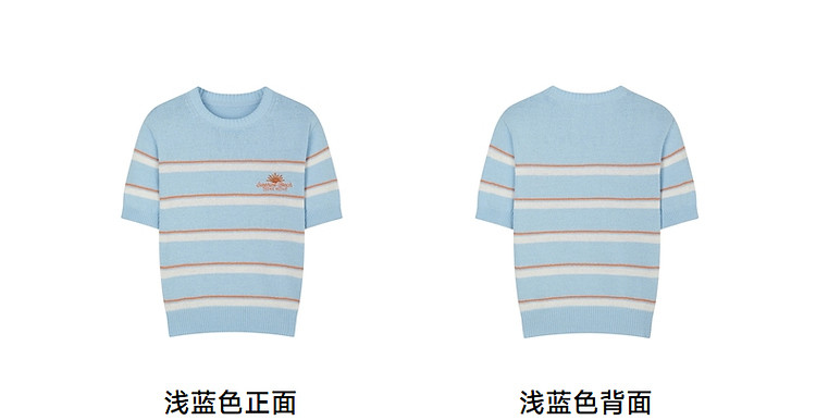 商品名称:小熊针织T恤夏季度假风撞色条纹短袖针织薄款多巴胺套头毛衫上衣 345345