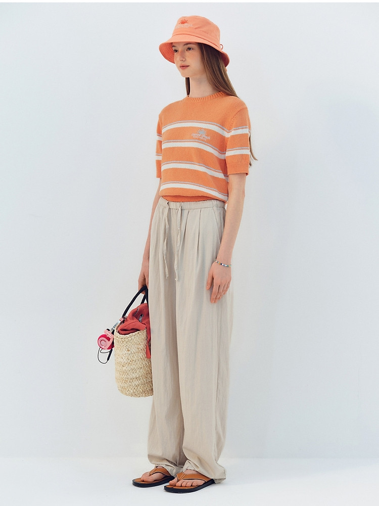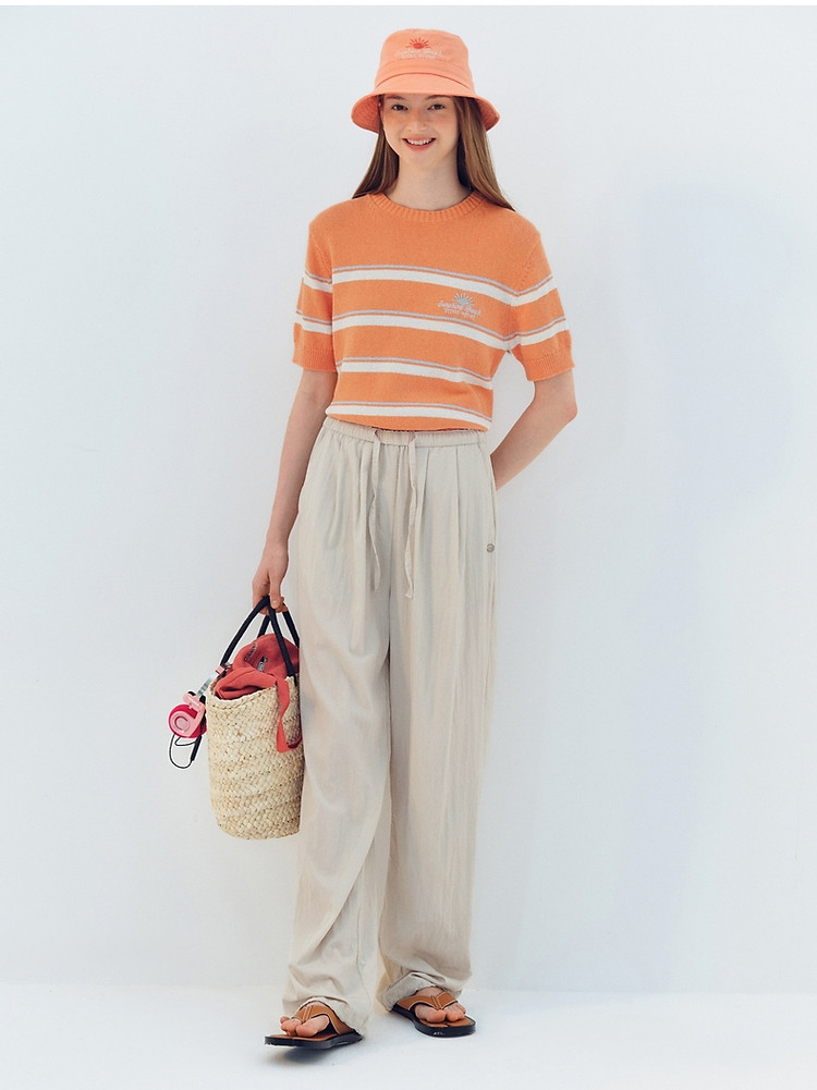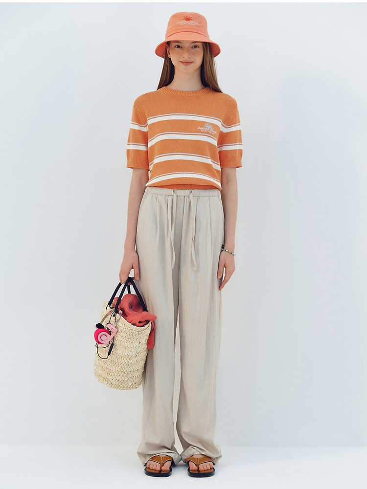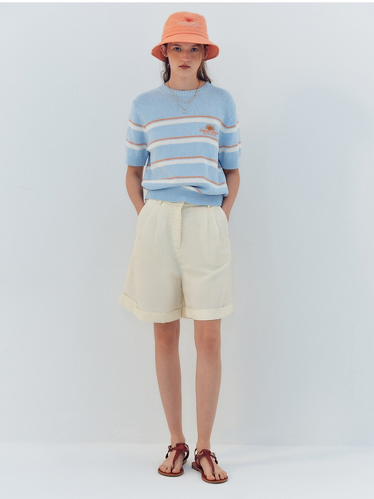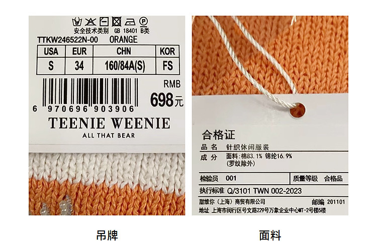 商品名称:小熊针织T恤夏季度假风撞色条纹短袖针织薄款多巴胺套头毛衫上衣 345345