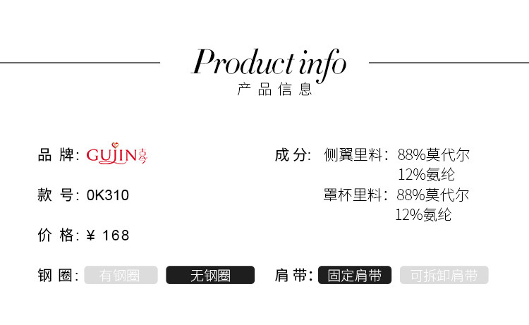 商品名称:【无钢圈运动薄模杯】百搭收副乳全罩杯抹胸罩两穿聚拢上托内衣 419083