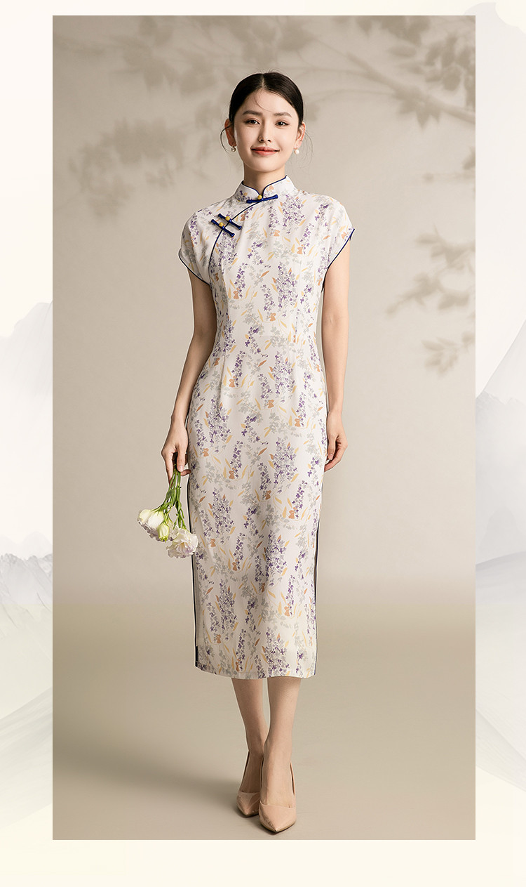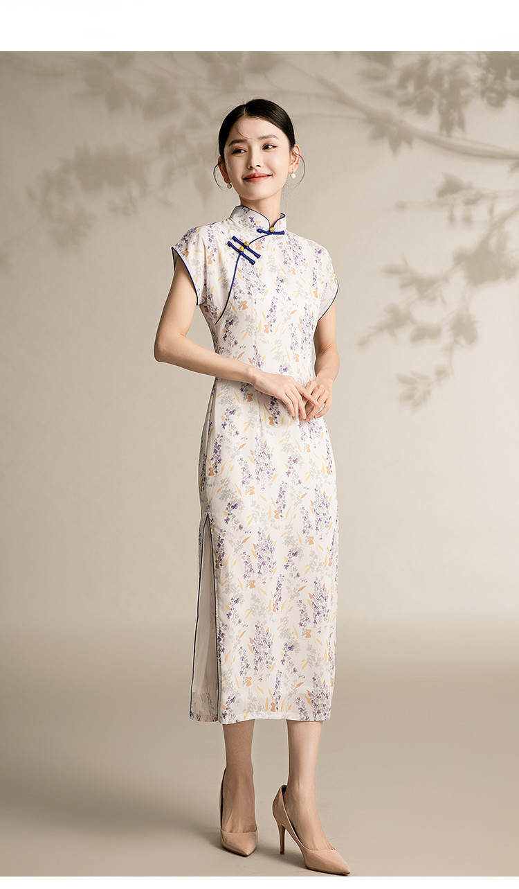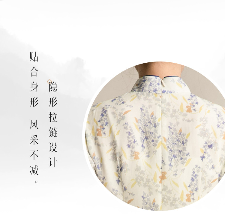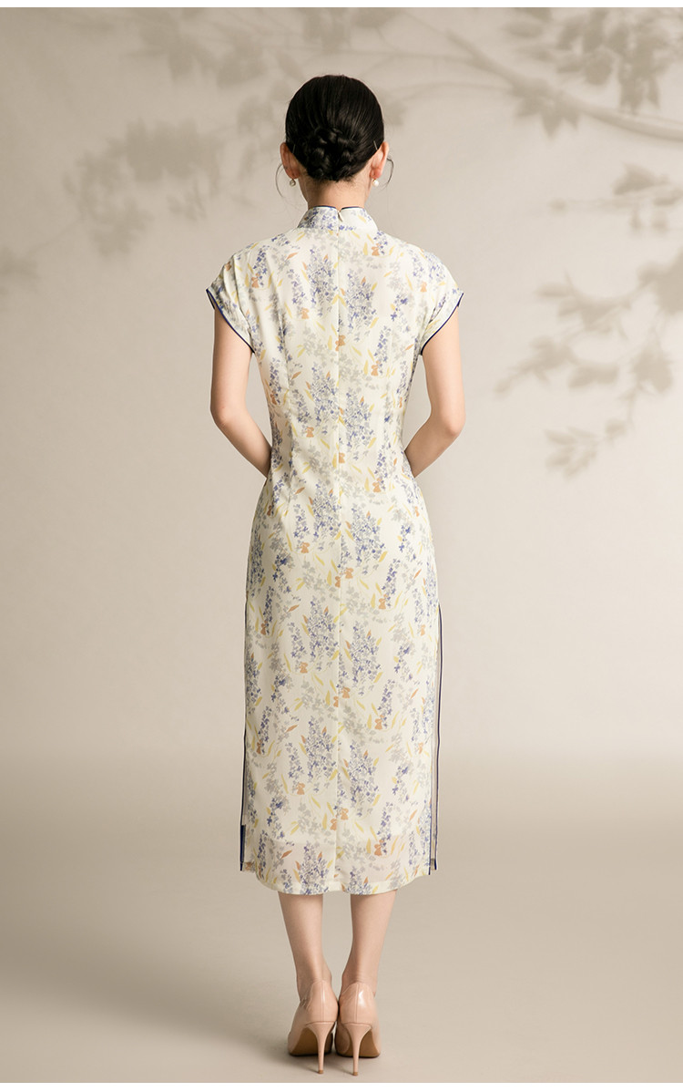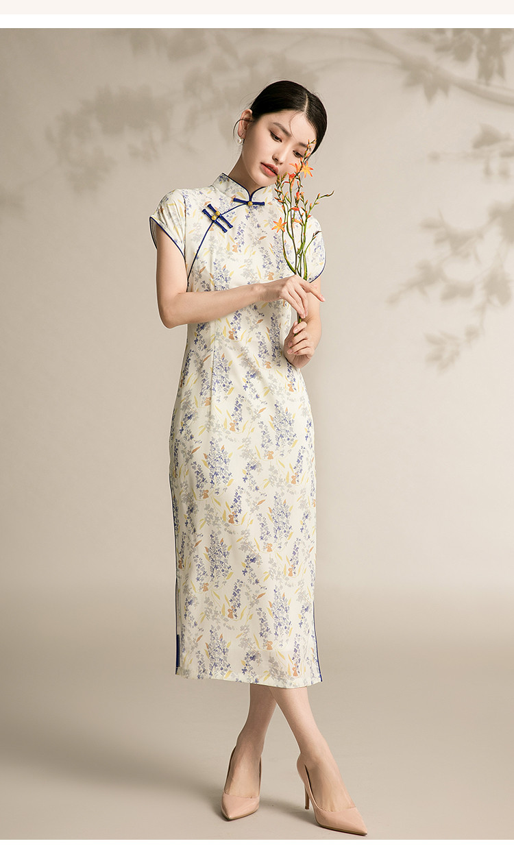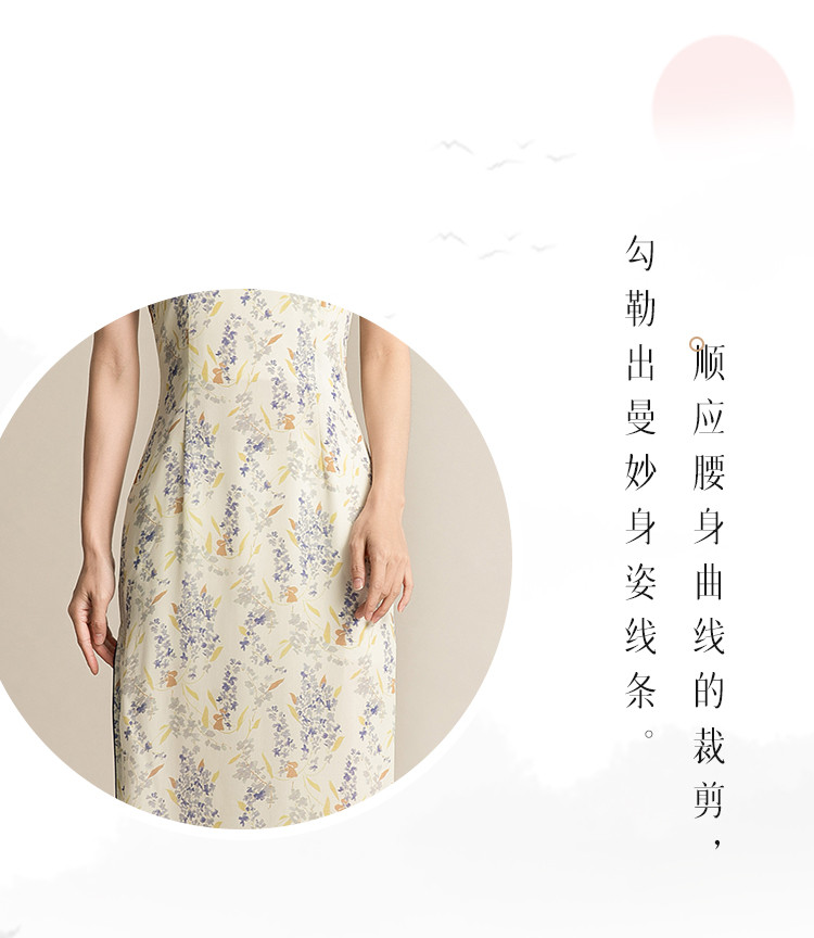 商品名称:女春夏复古中式改良中长款印花修身旗袍裙 522207