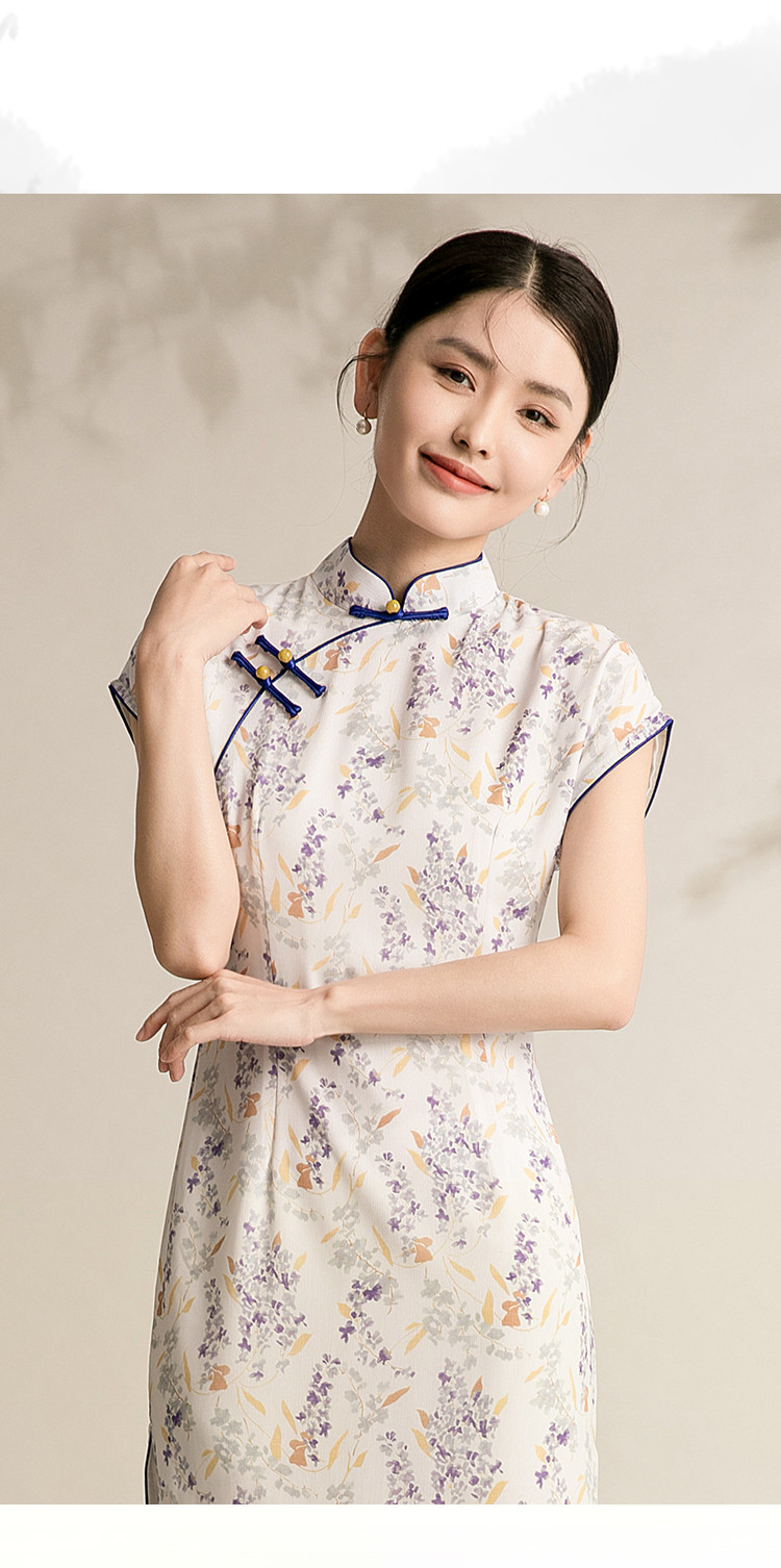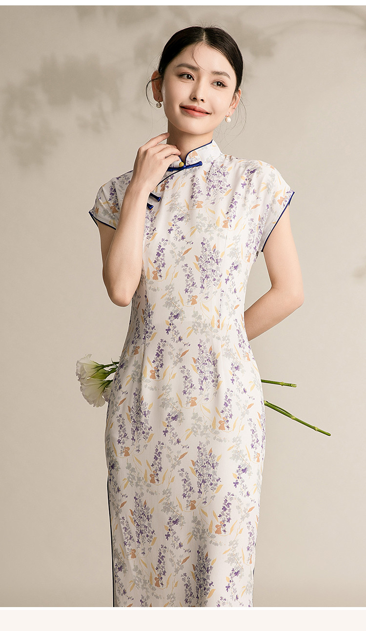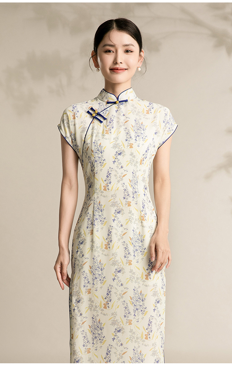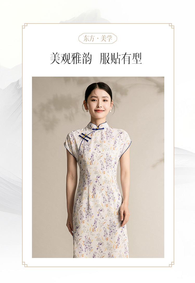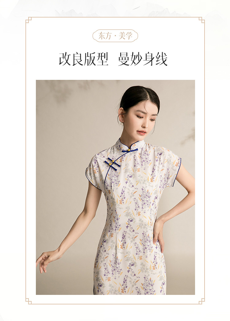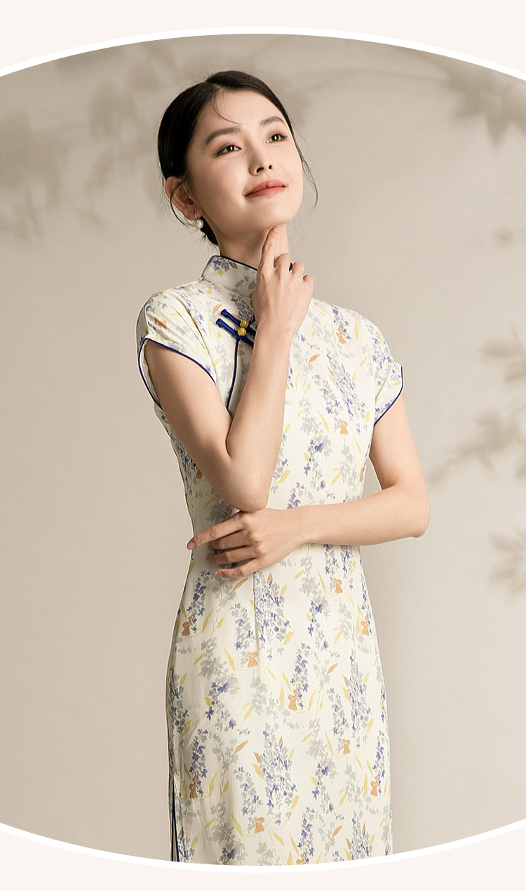 商品名称:女春夏复古中式改良中长款印花修身旗袍裙 522207