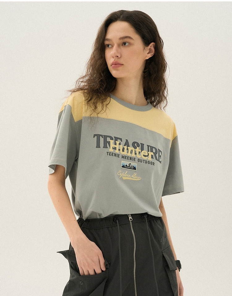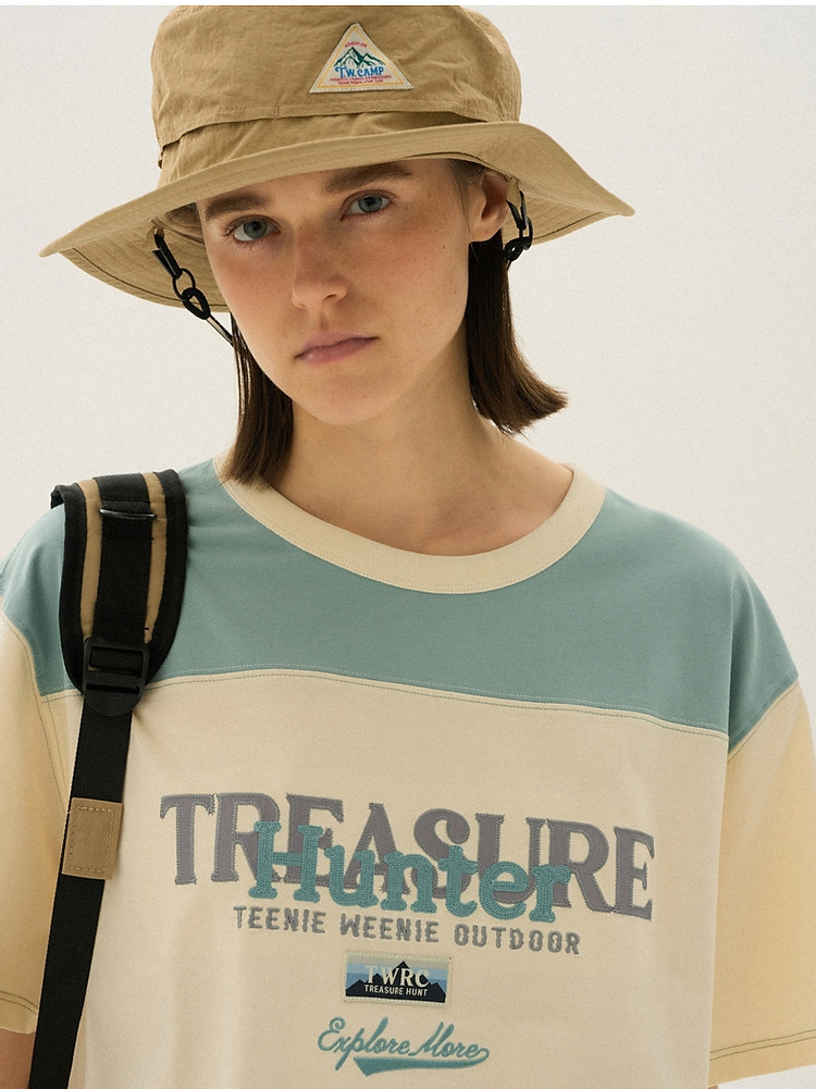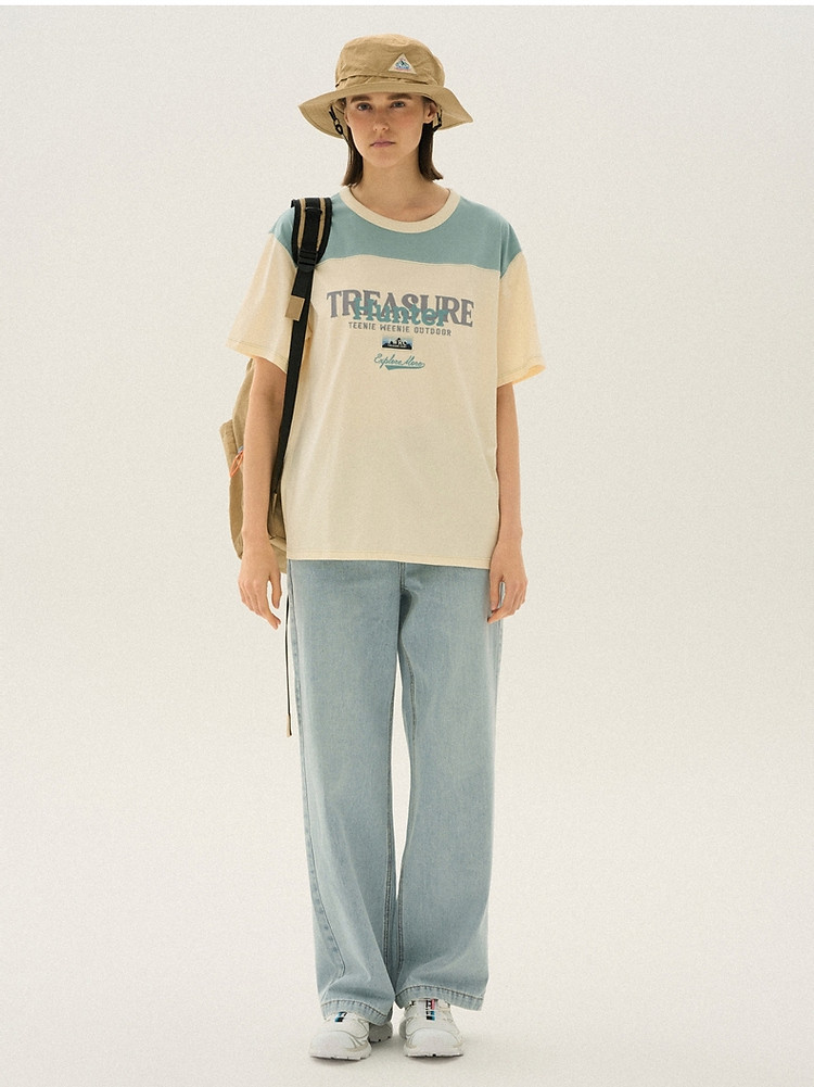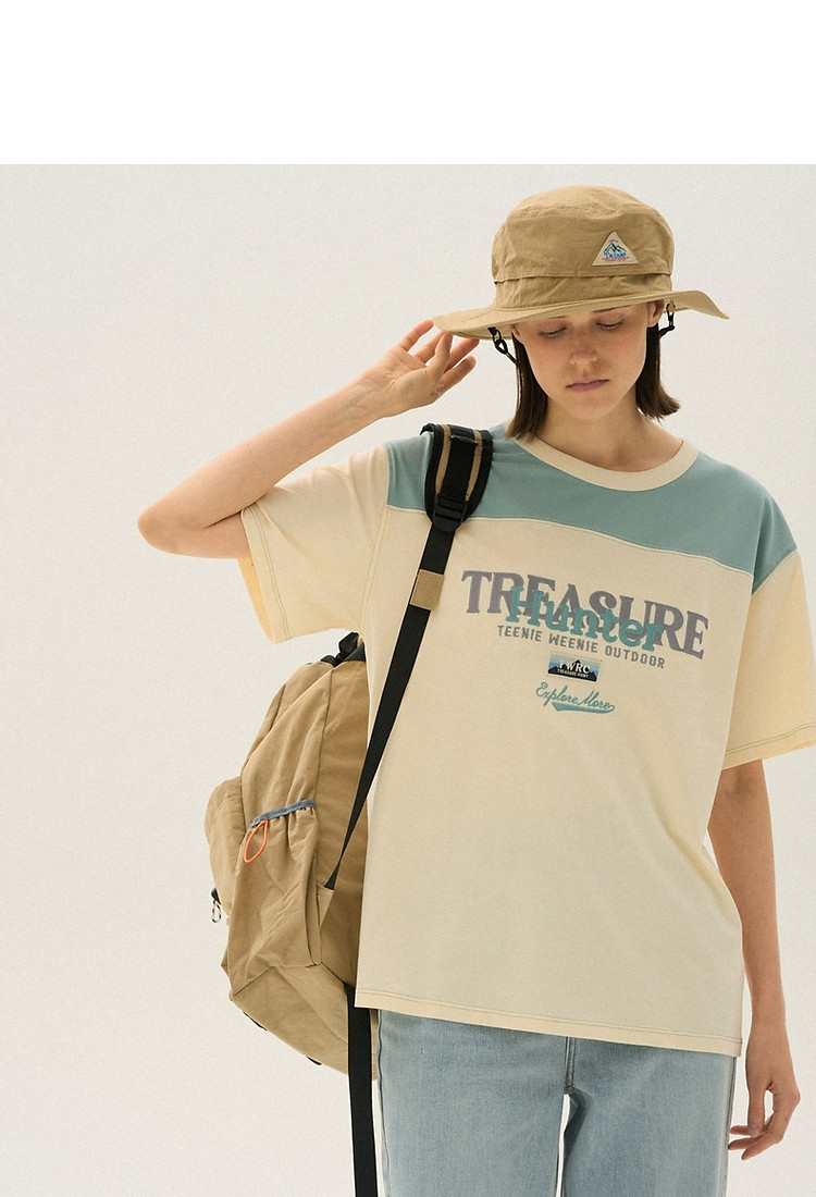 小熊女装夏季撞色短袖T恤棉质宽松中性风 019329