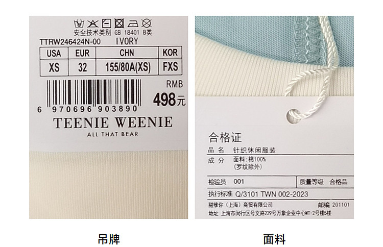 商品名称:小熊女装夏季撞色短袖T恤棉质宽松中性风 019329