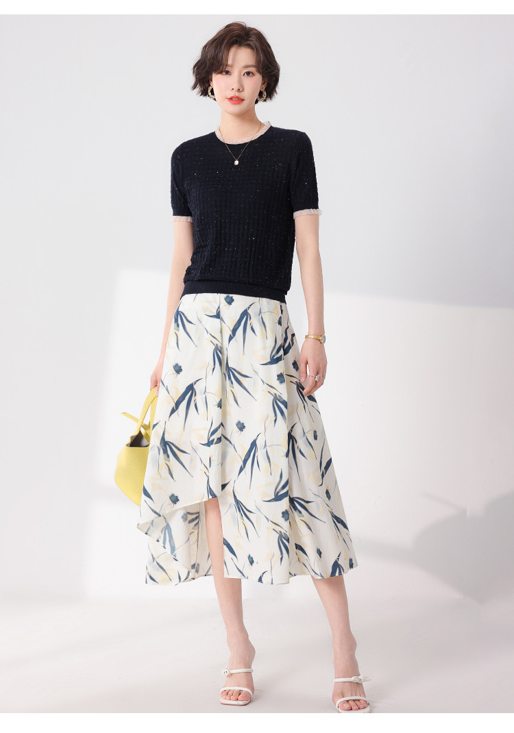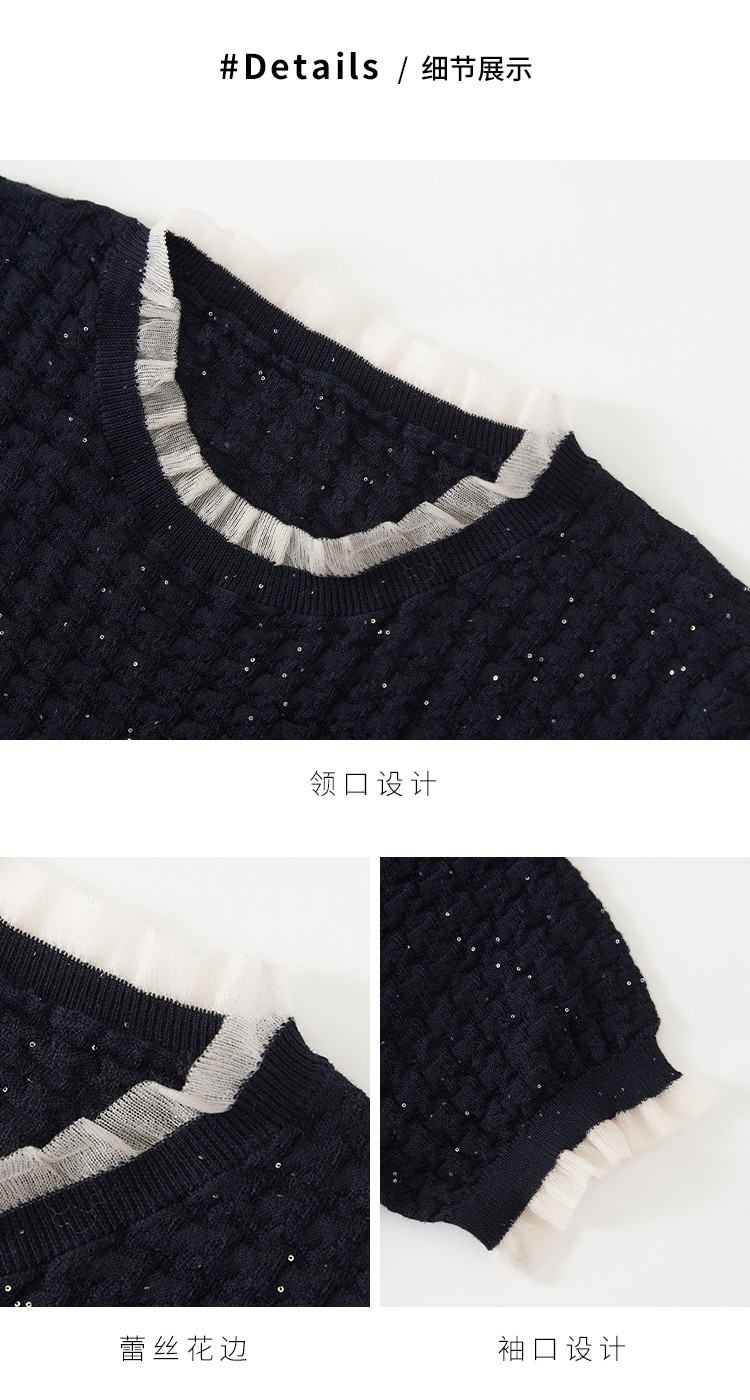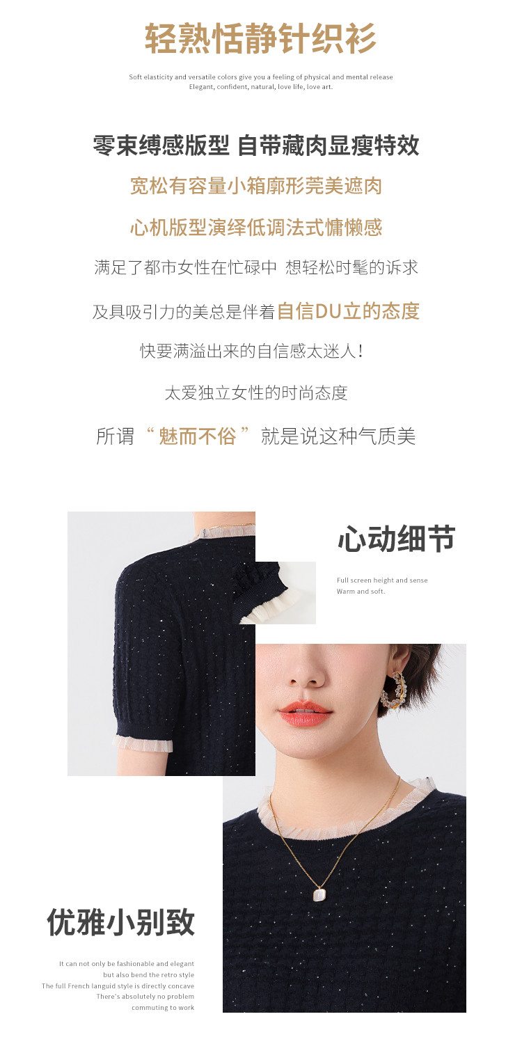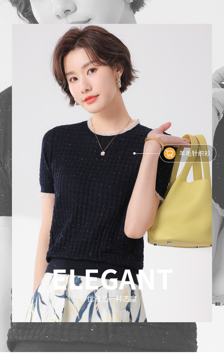 商品名称:优雅淑女荷叶领含绵羊毛短袖T恤针织打底衫毛衣线衫 219091