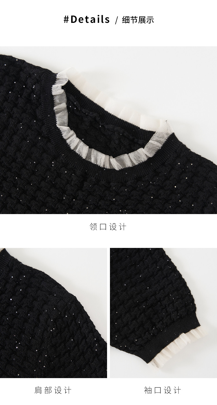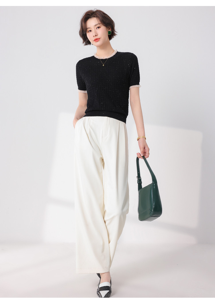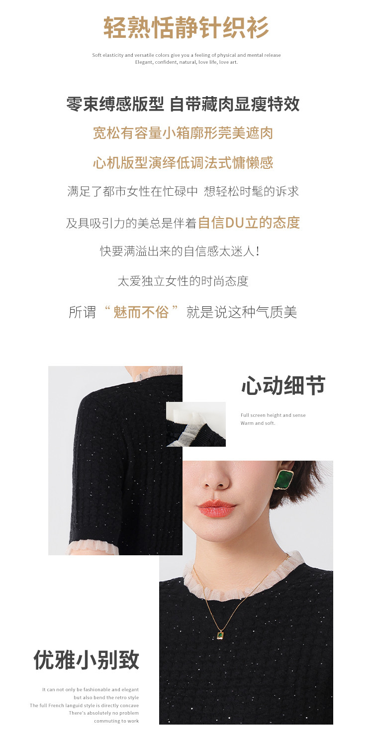商品名称:优雅淑女荷叶领含绵羊毛短袖T恤针织打底衫毛衣线衫 204307