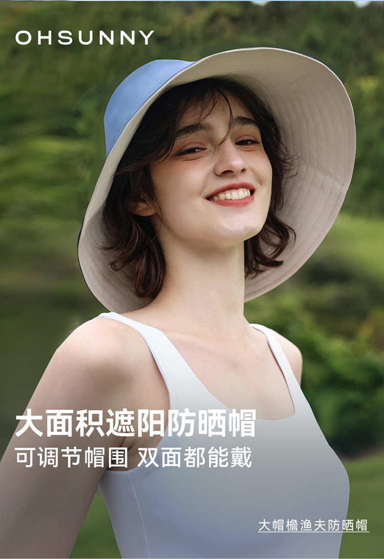 商品名称:2025防晒帽子春夏显脸小大头围遮脸防紫外线旅游大帽檐盆帽 343373