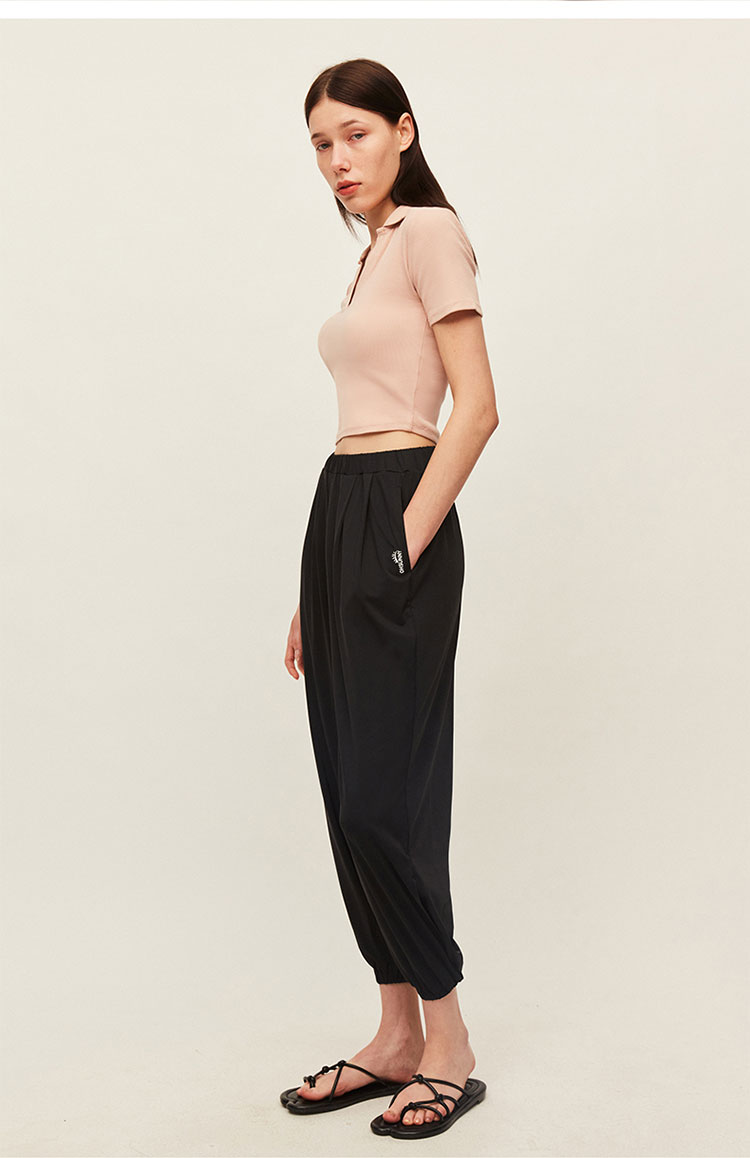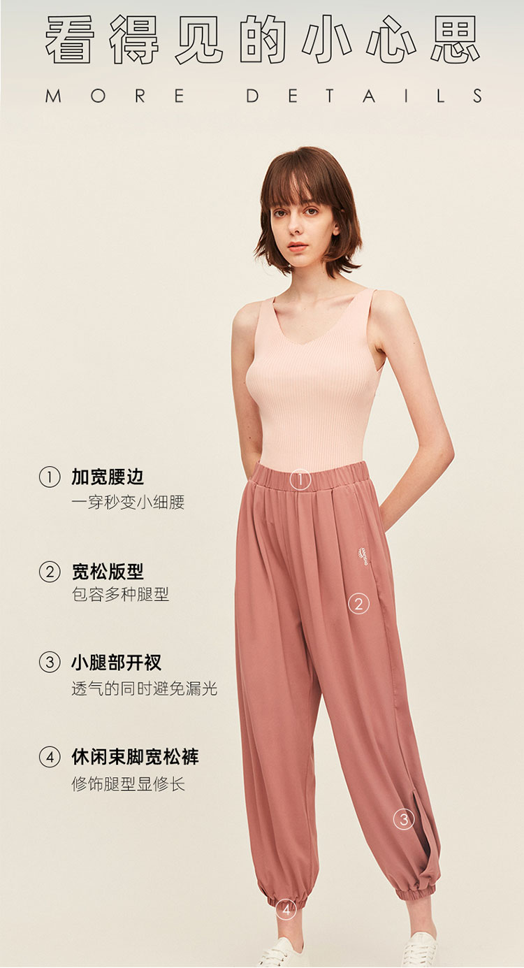 商品名称:25春夏束脚休闲裤女宽松简约百搭裤子轻薄垂顺时尚开叉灯笼裤 457229