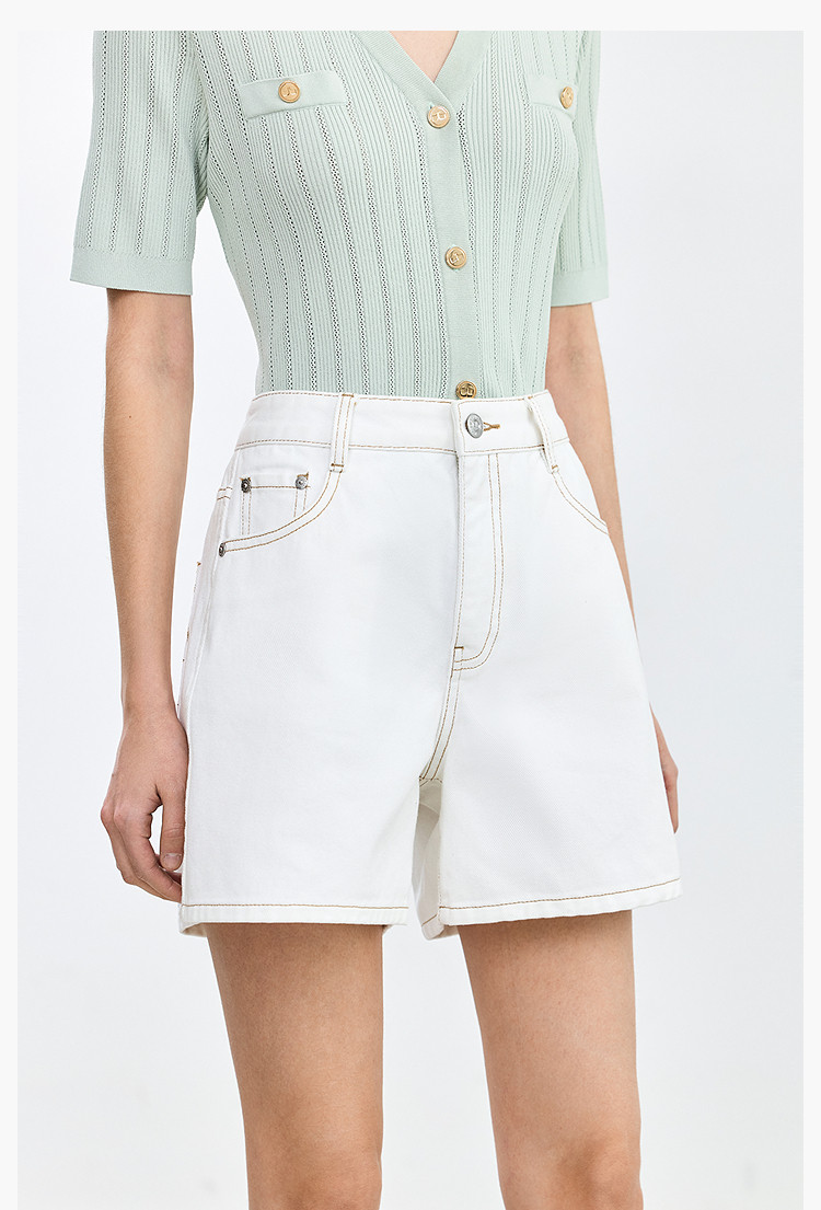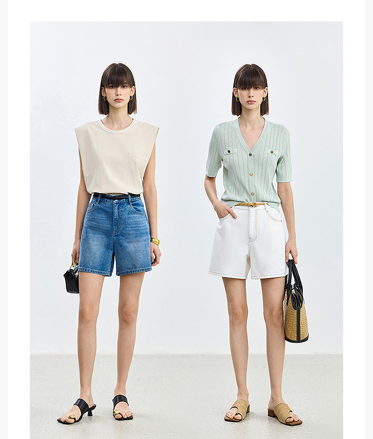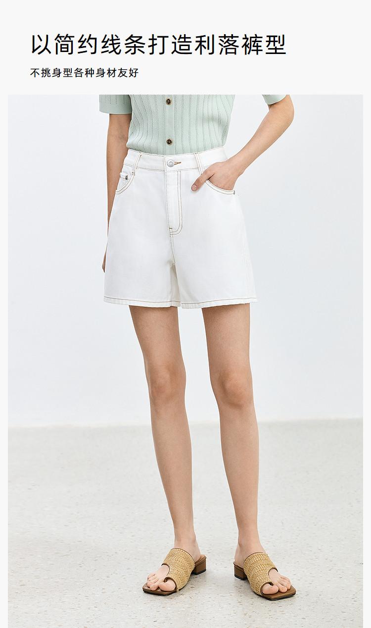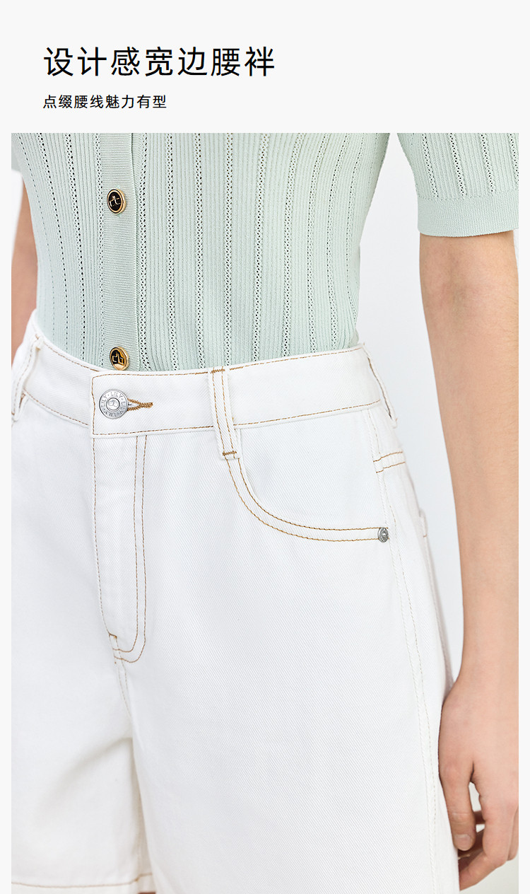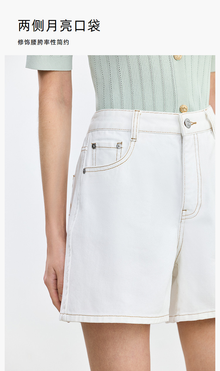 商品名称:【春季】设计感休闲都市通勤款气质显瘦阔腿牛仔短裤女 069979