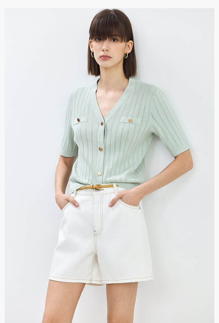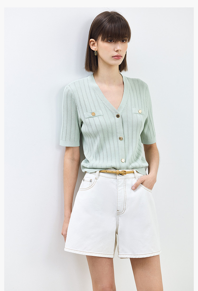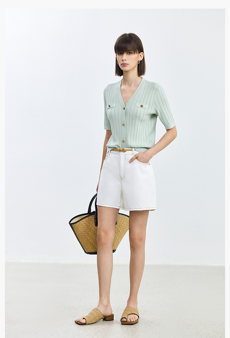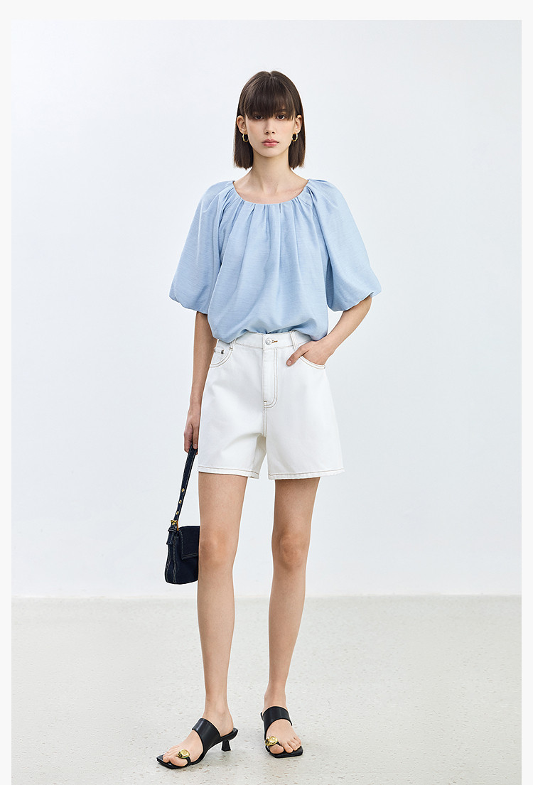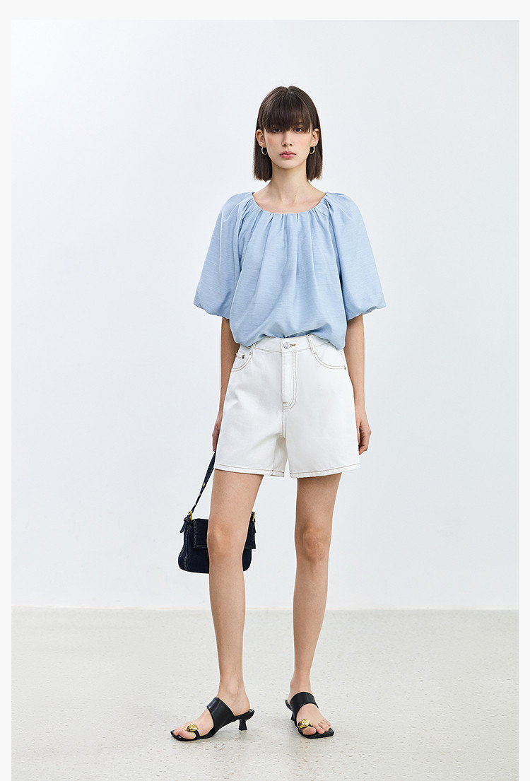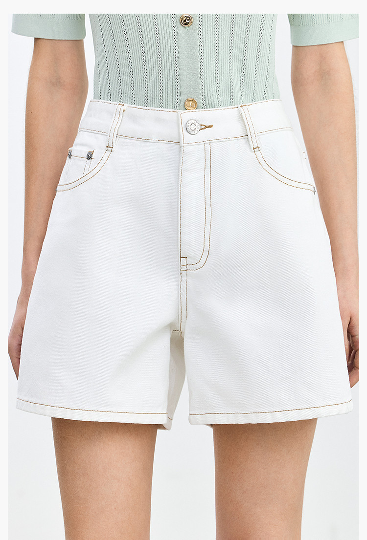 商品名称:【春季】设计感休闲都市通勤款气质显瘦阔腿牛仔短裤女 069979