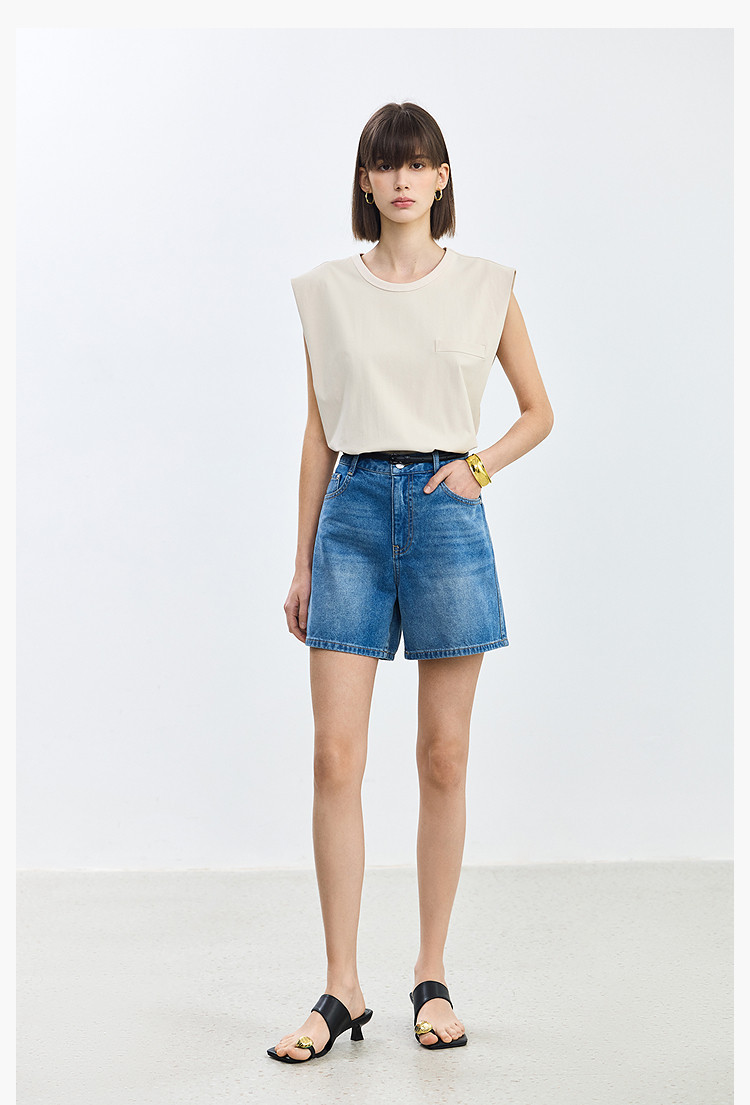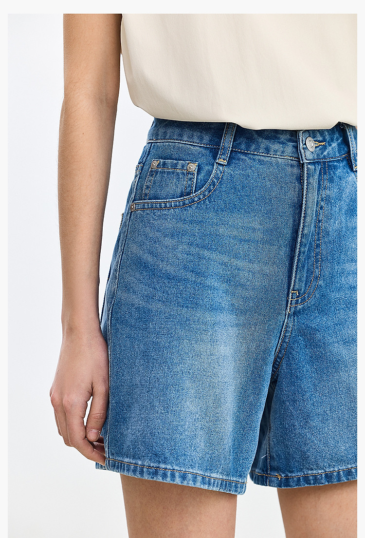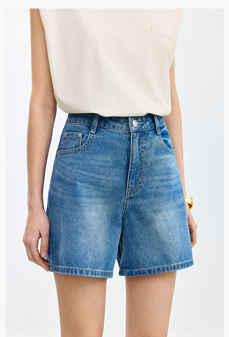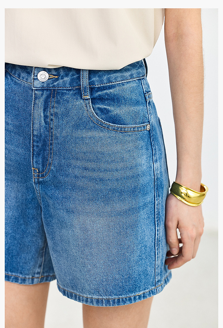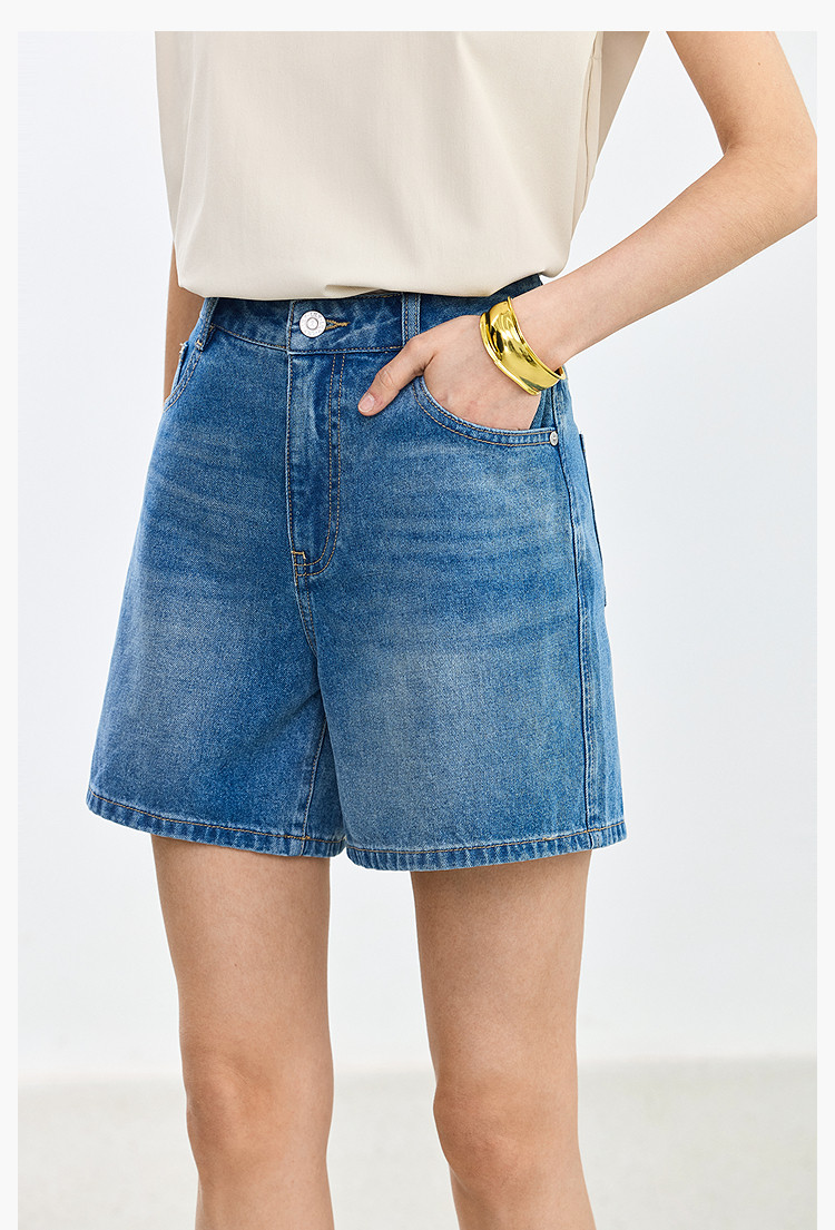 【春季】设计感休闲都市通勤款气质显瘦阔腿牛仔短裤女 069979