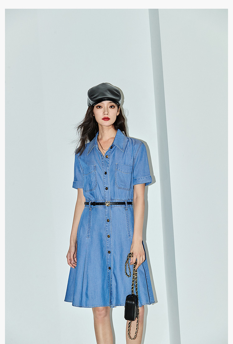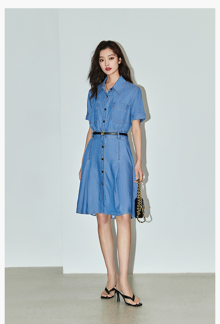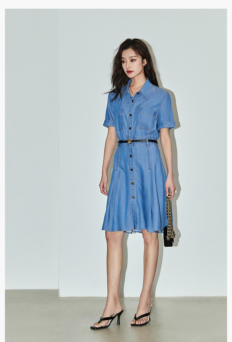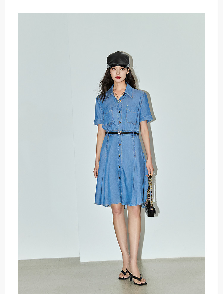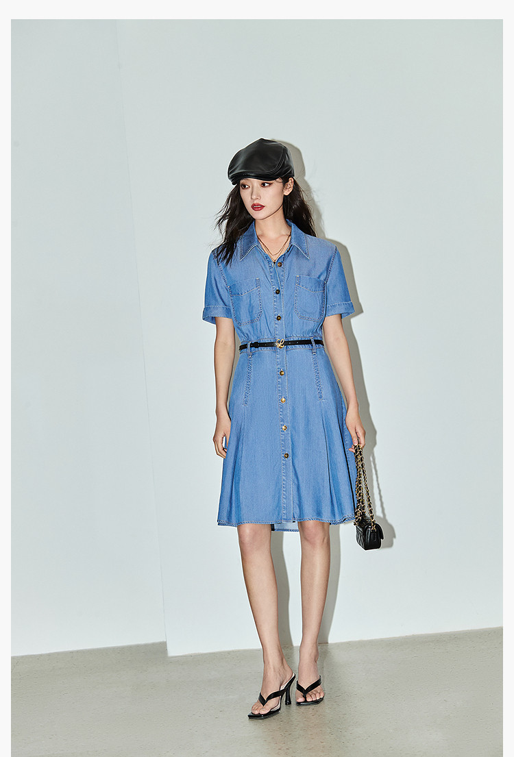 复古休闲通勤款中长款牛仔衬衫连衣裙小个子女 150811