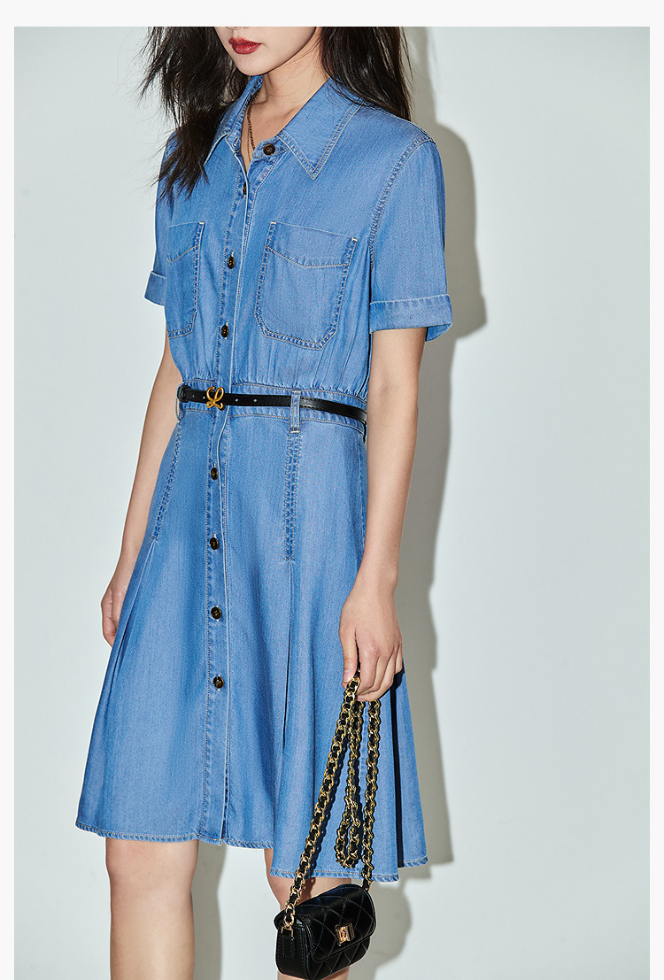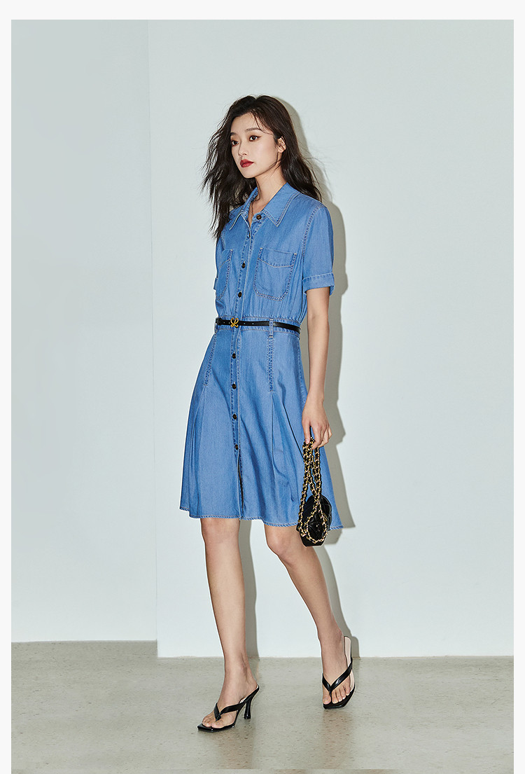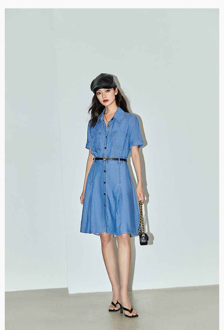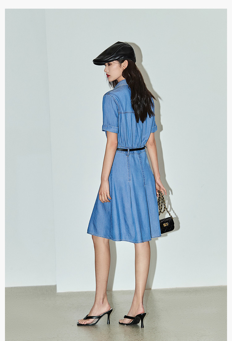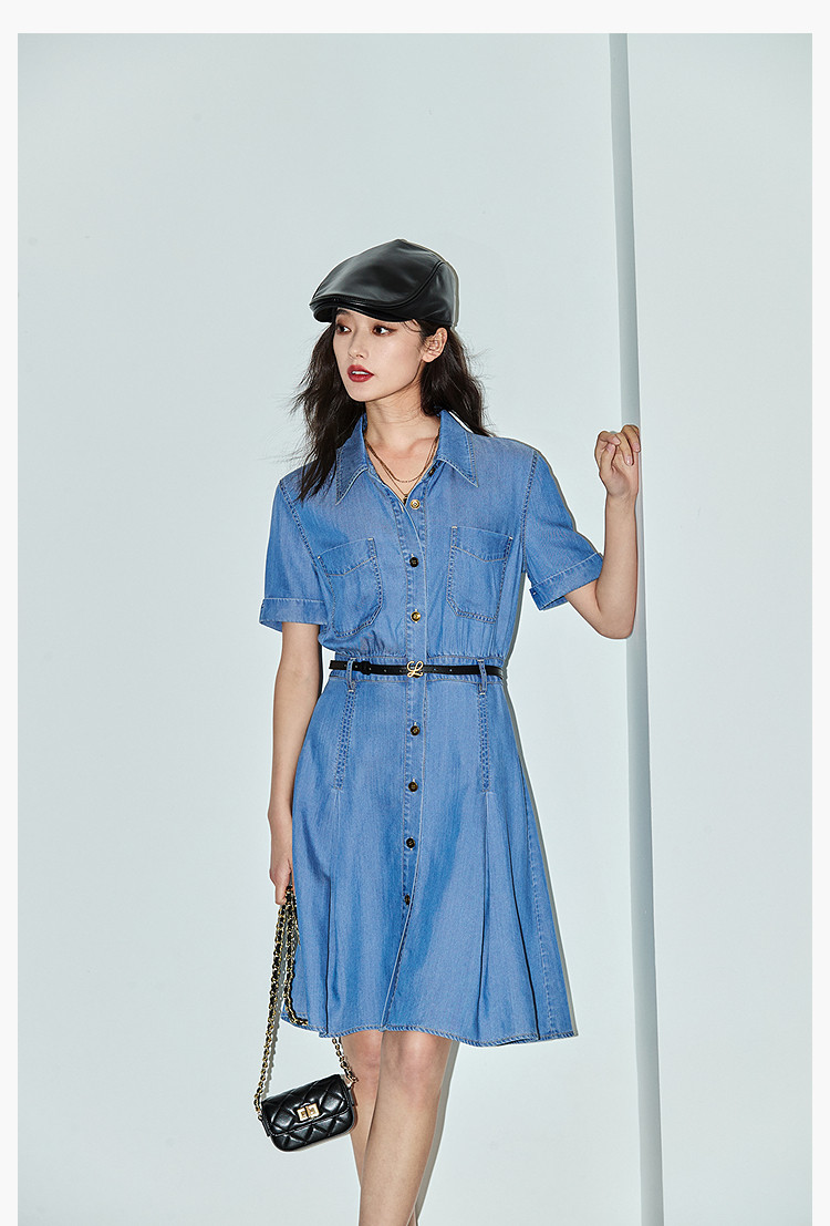 复古休闲通勤款中长款牛仔衬衫连衣裙小个子女 150811