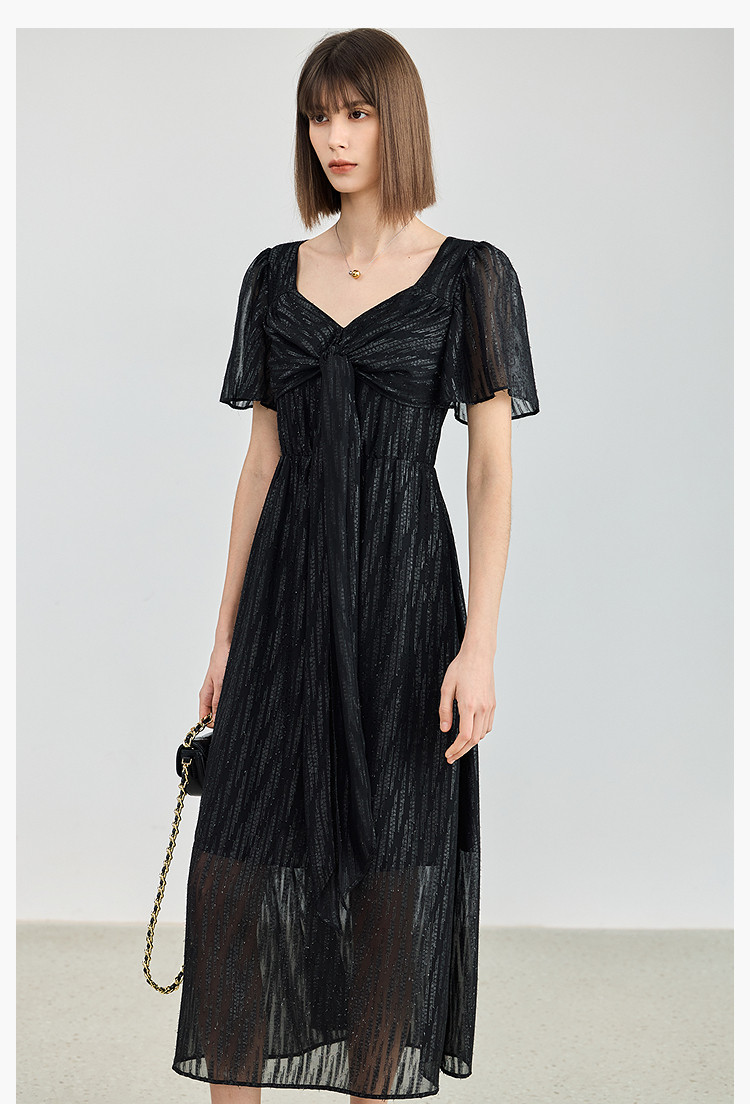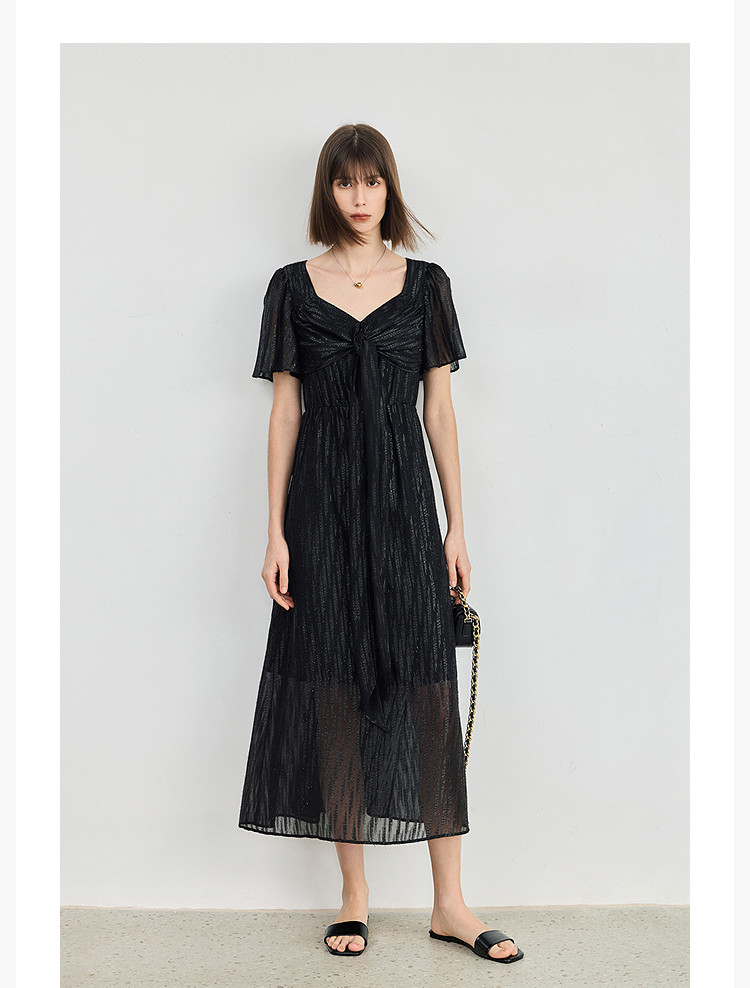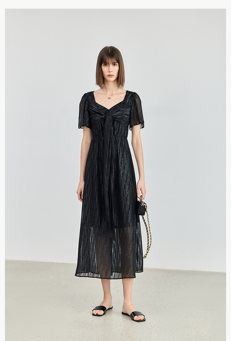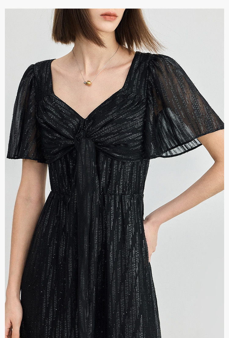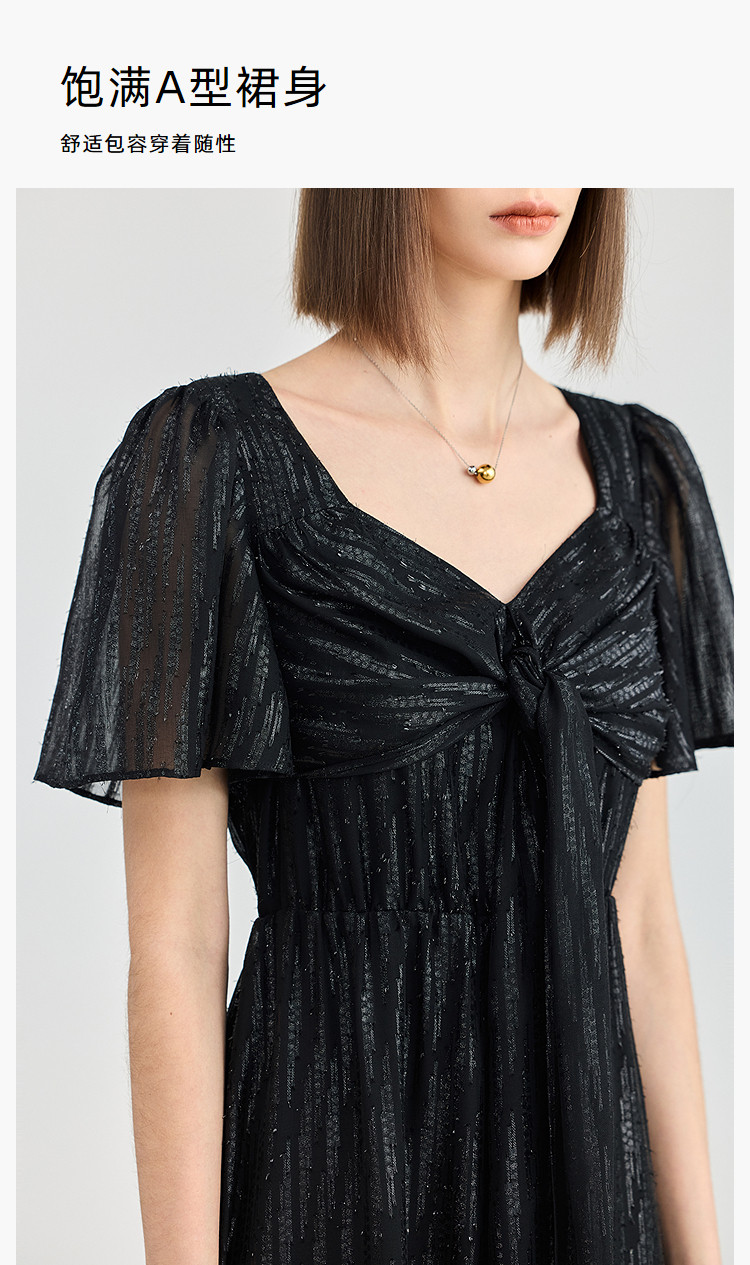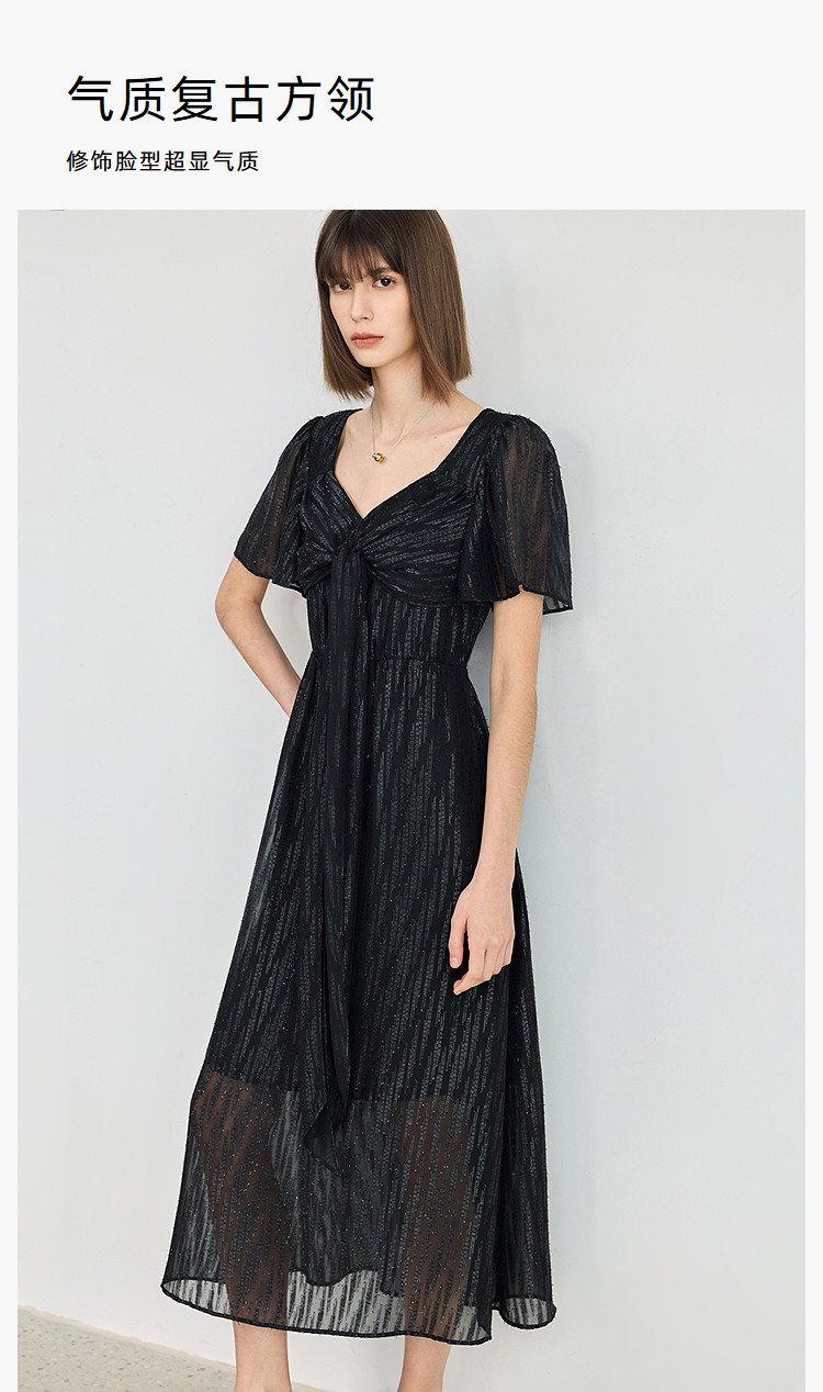 商品名称:小黑裙连衣裙女夏季法式气质复古温柔方领扭结设计连衣裙 900955