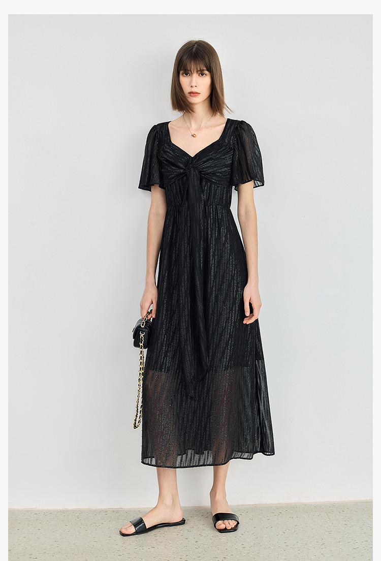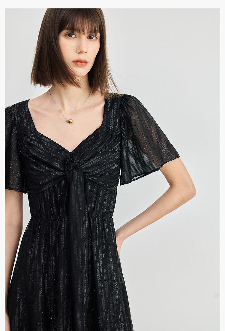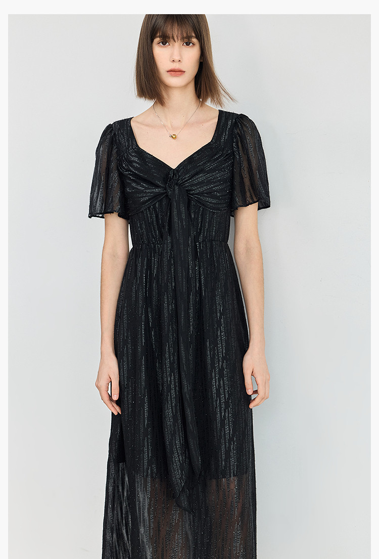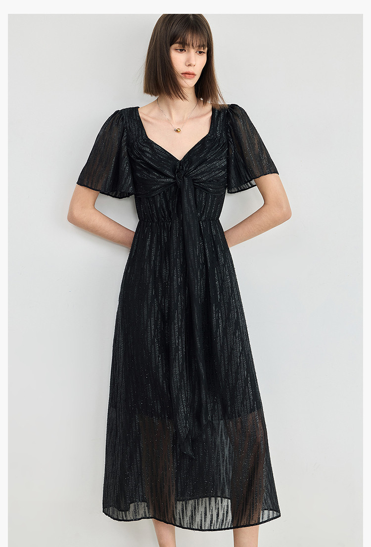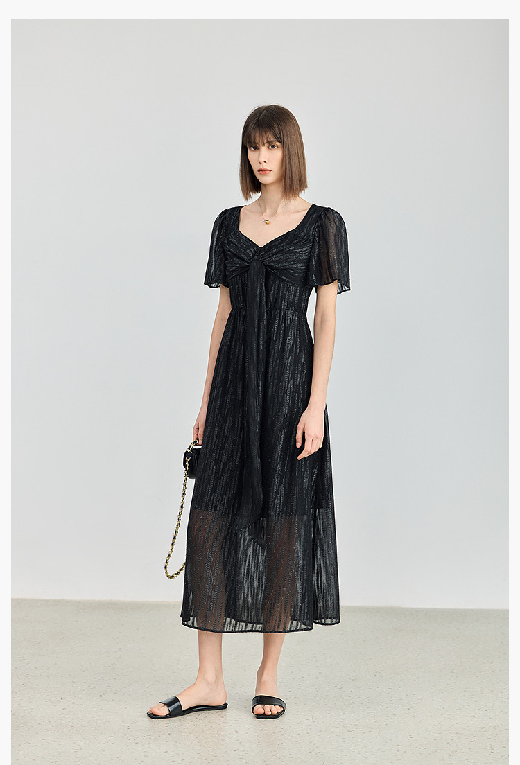 商品名称:小黑裙连衣裙女夏季法式气质复古温柔方领扭结设计连衣裙 900955