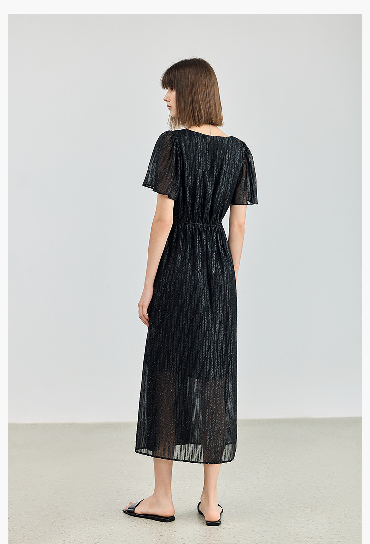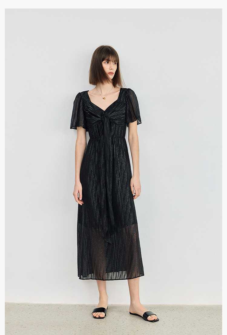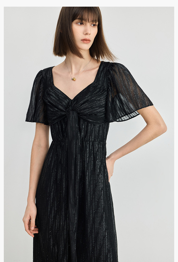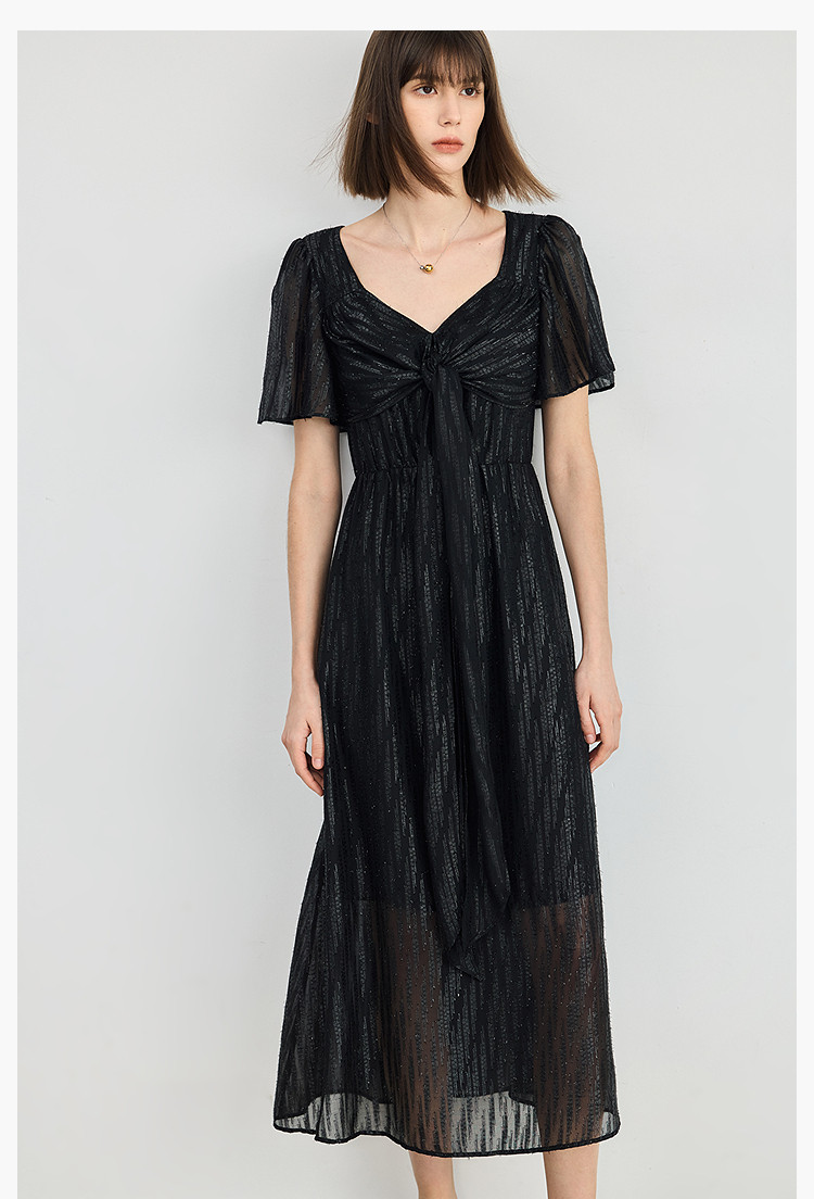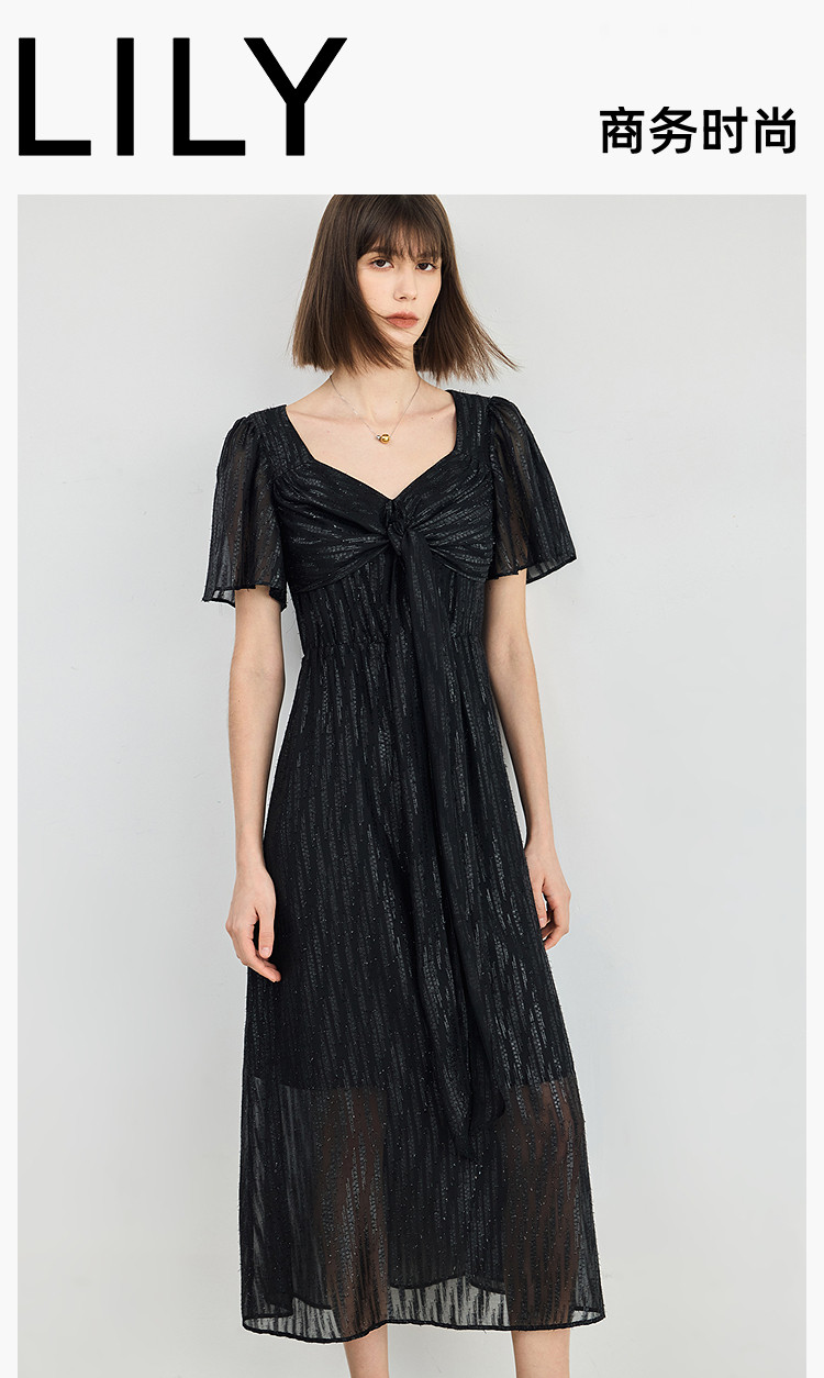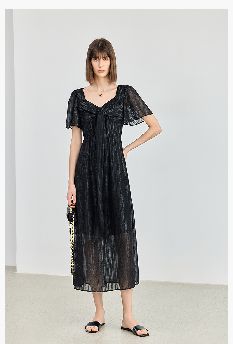 商品名称:小黑裙连衣裙女夏季法式气质复古温柔方领扭结设计连衣裙 900955