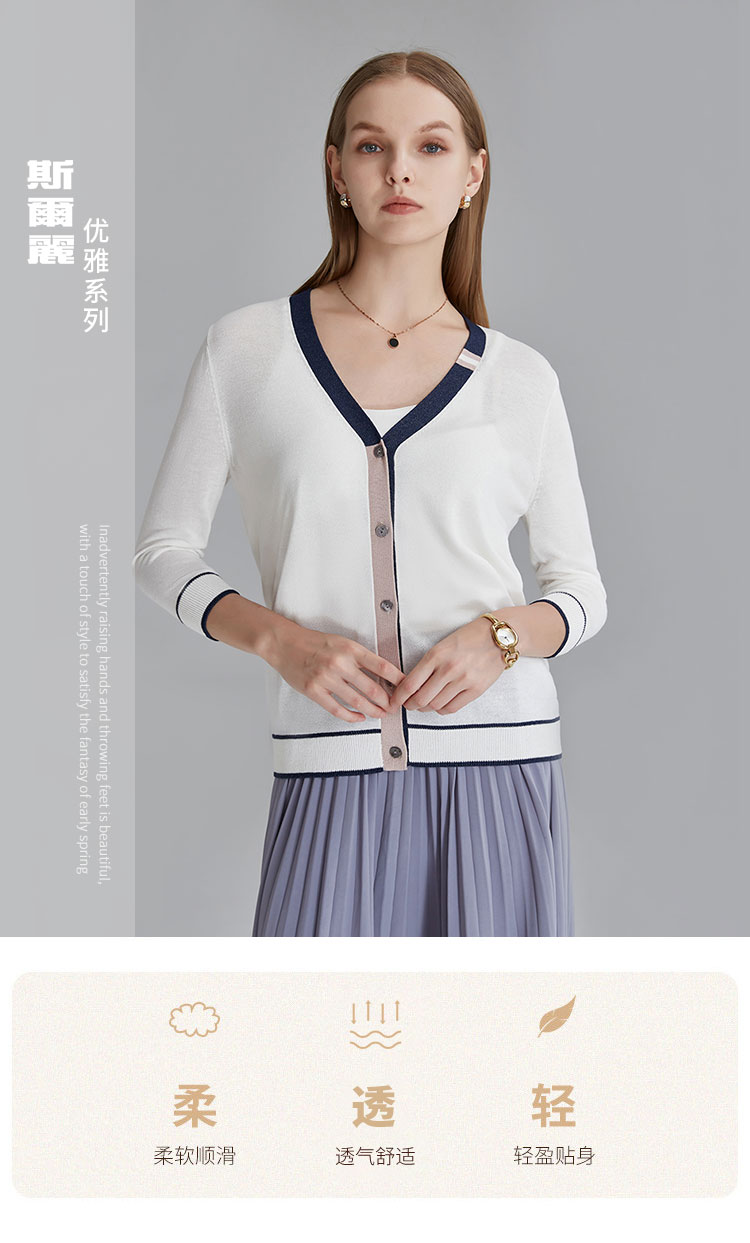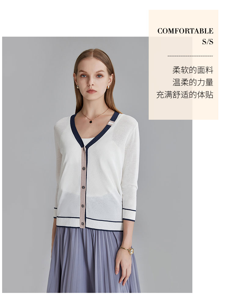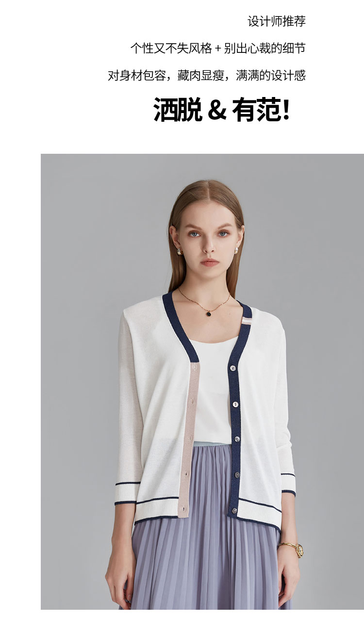 商品名称:春秋新款高级撞色针织开衫女式气质优雅日常通勤上衣外套 124575