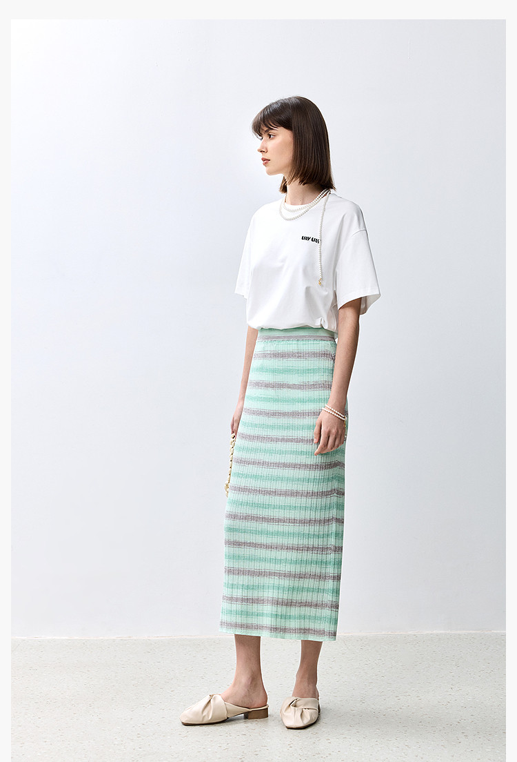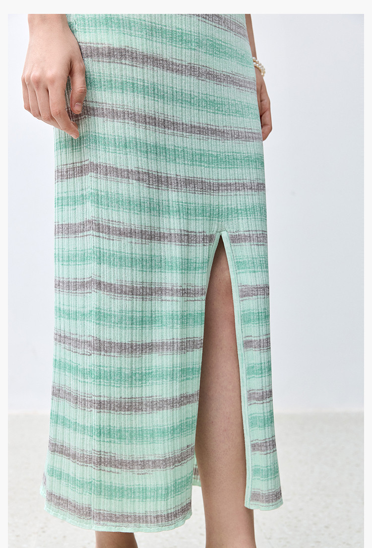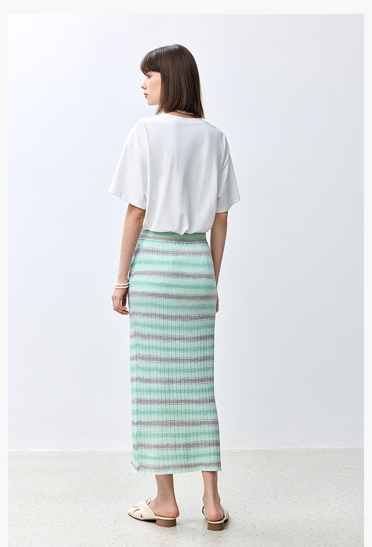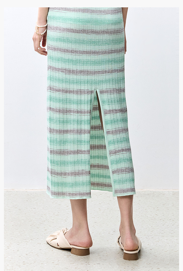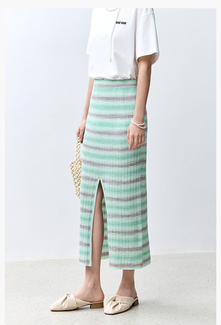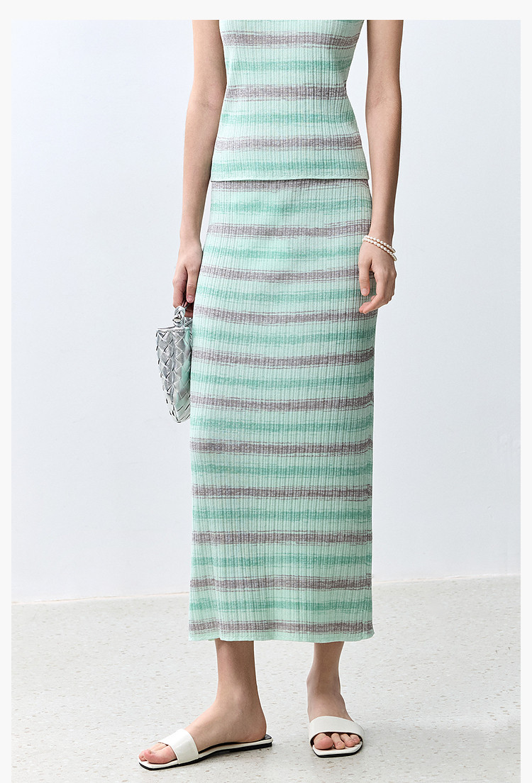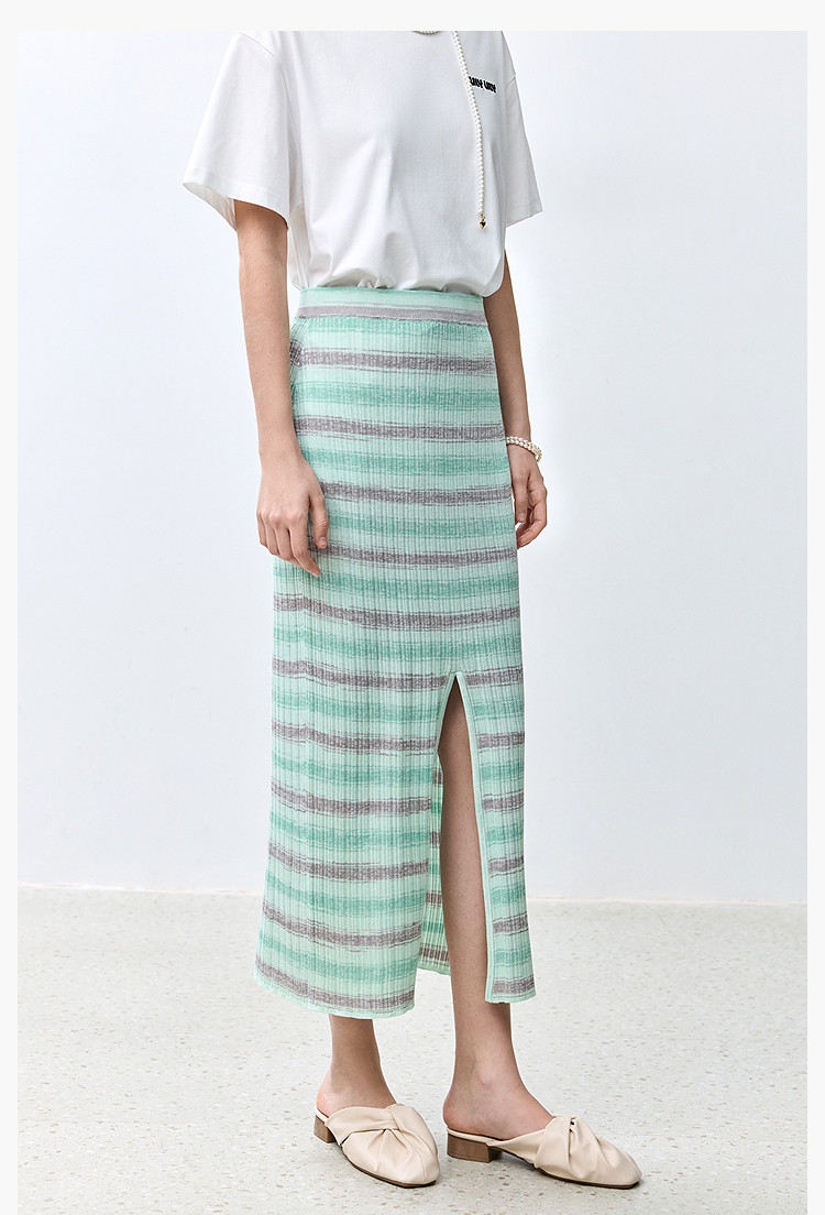 商品名称:夏季多巴胺色彩温柔气质薄荷曼波显瘦条纹半身裙 080283