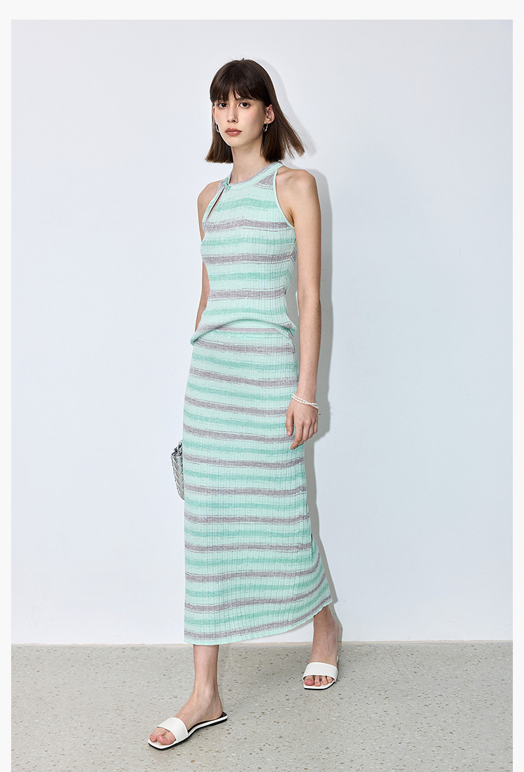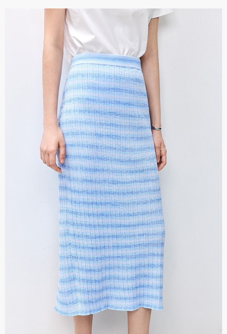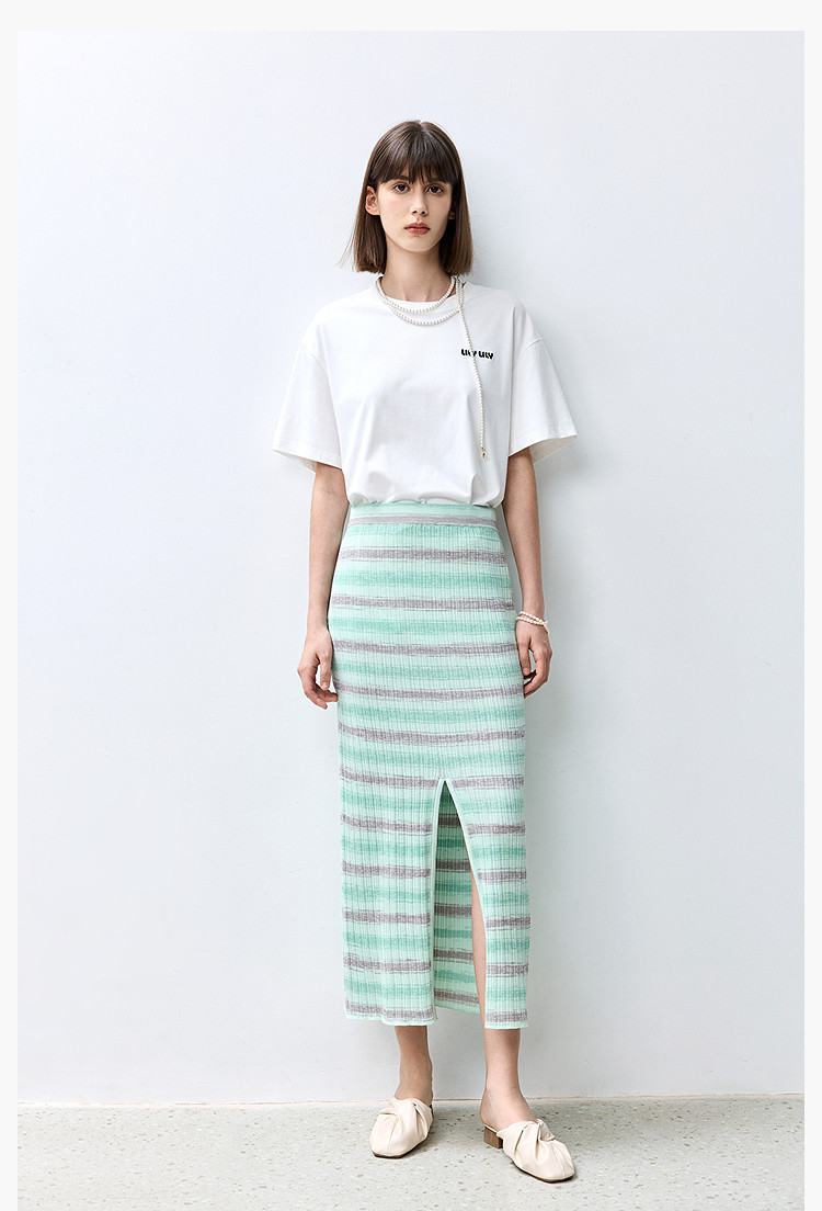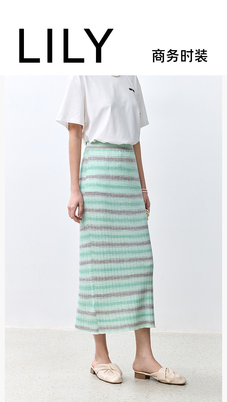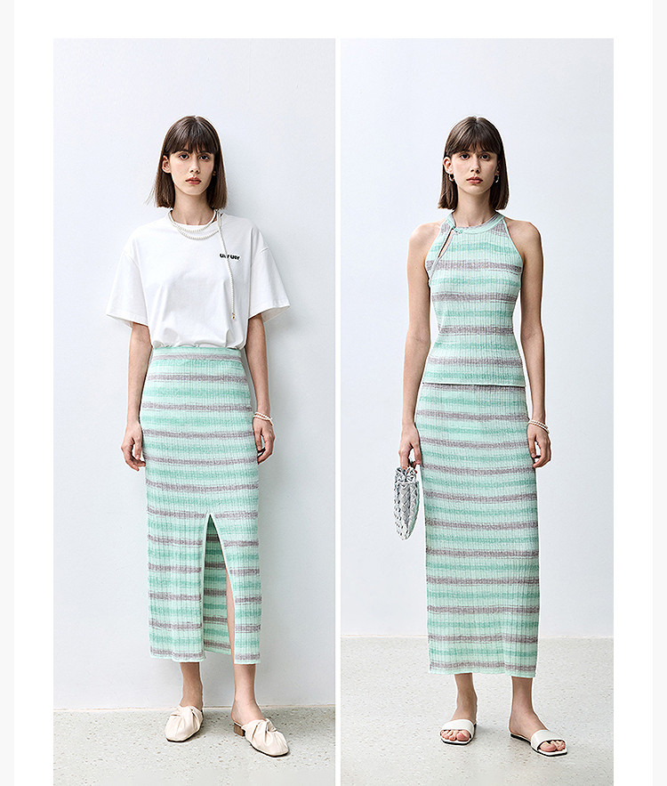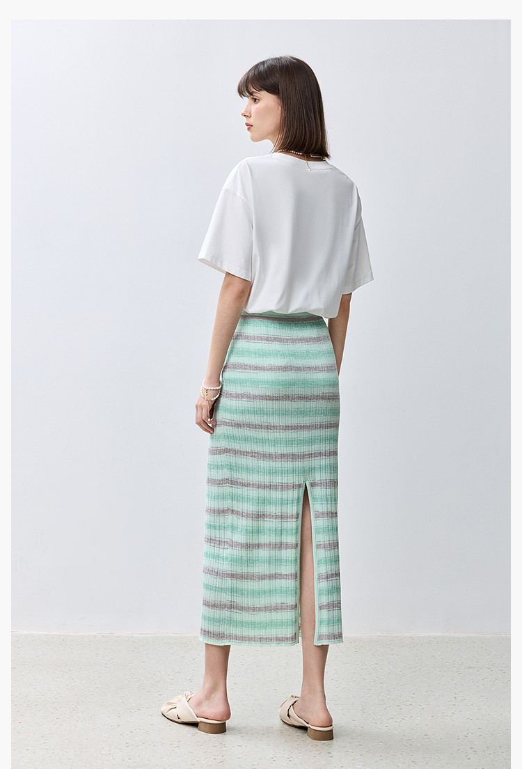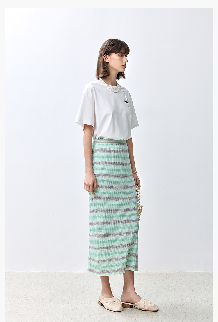 商品名称:夏季多巴胺色彩温柔气质薄荷曼波显瘦条纹半身裙 080283