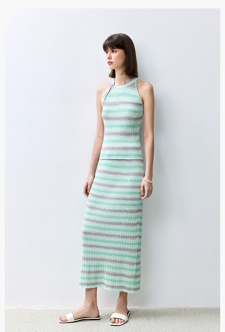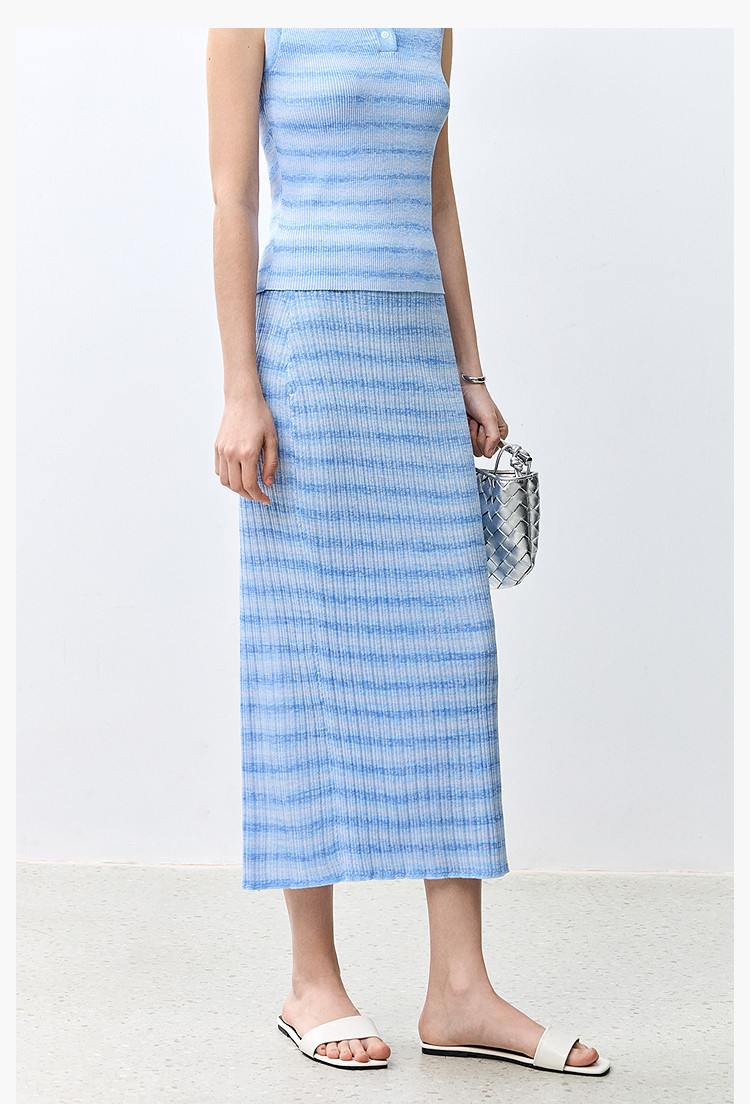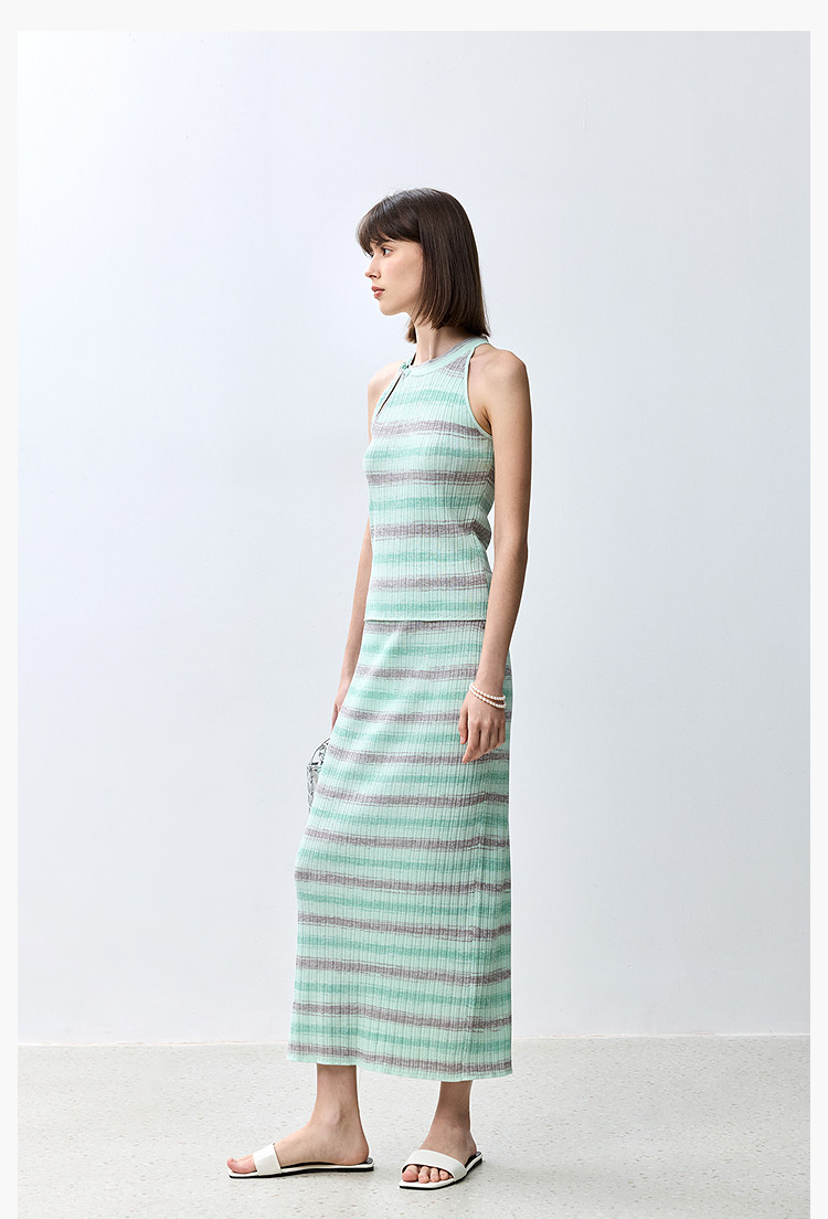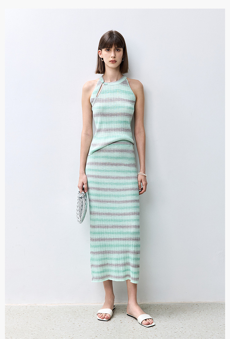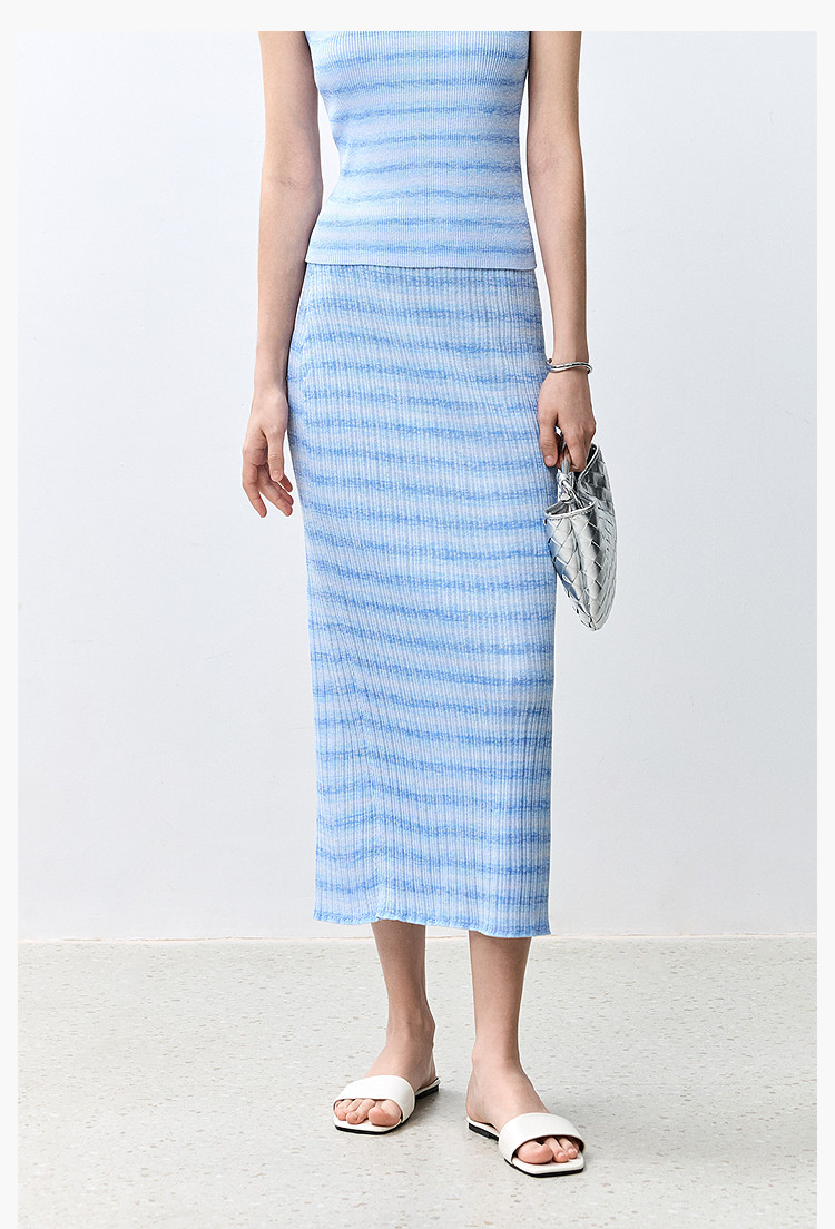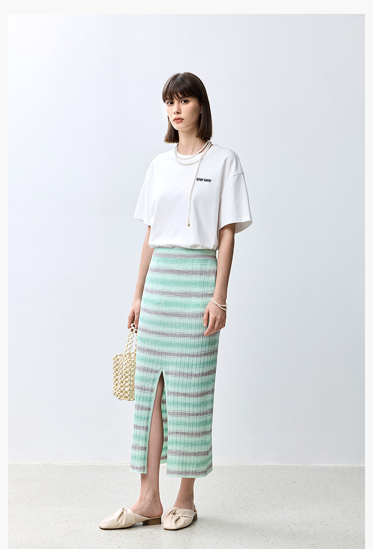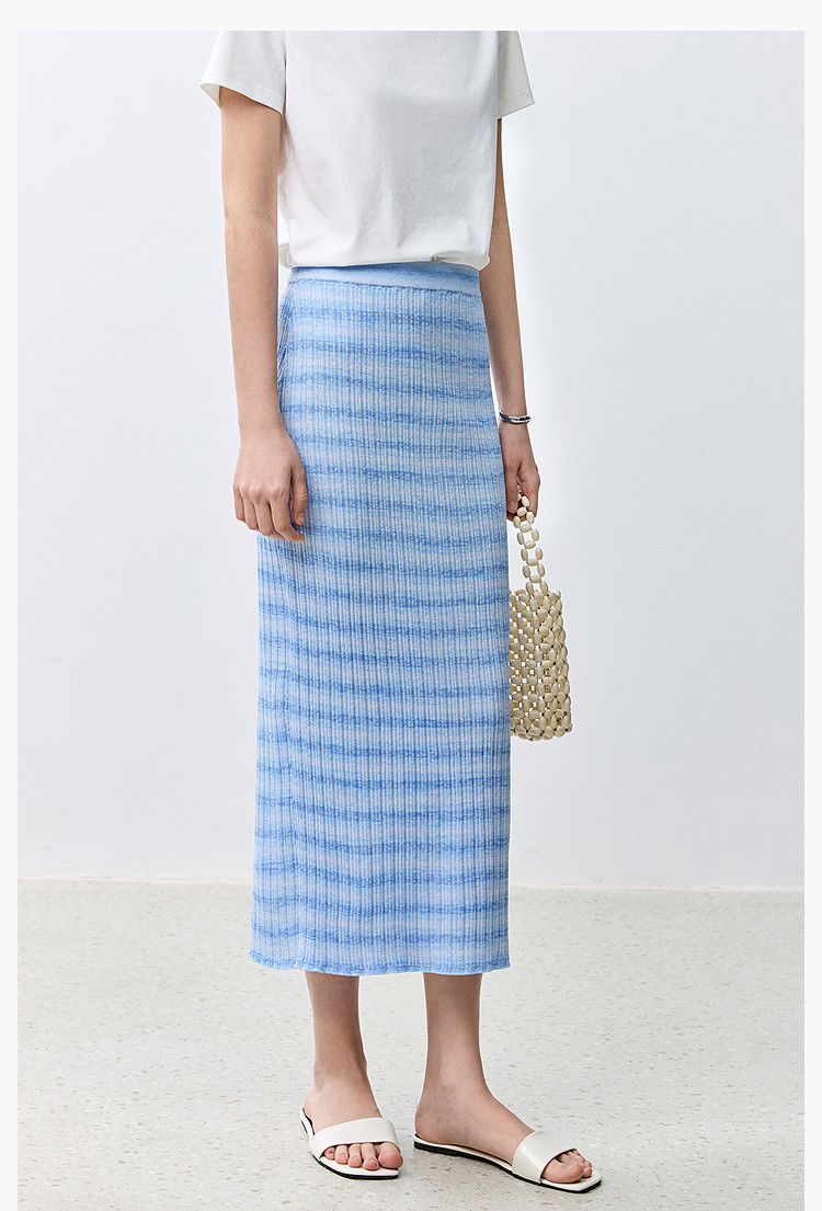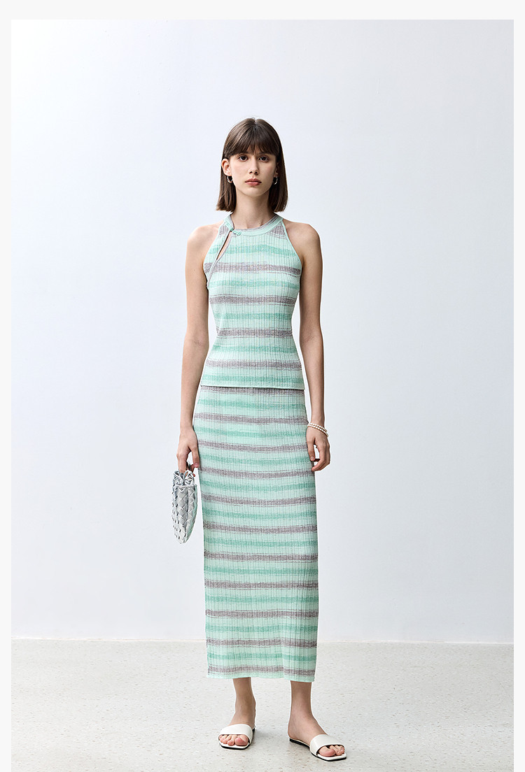 商品名称:夏季多巴胺色彩温柔气质薄荷曼波显瘦条纹半身裙 080283