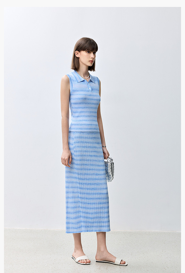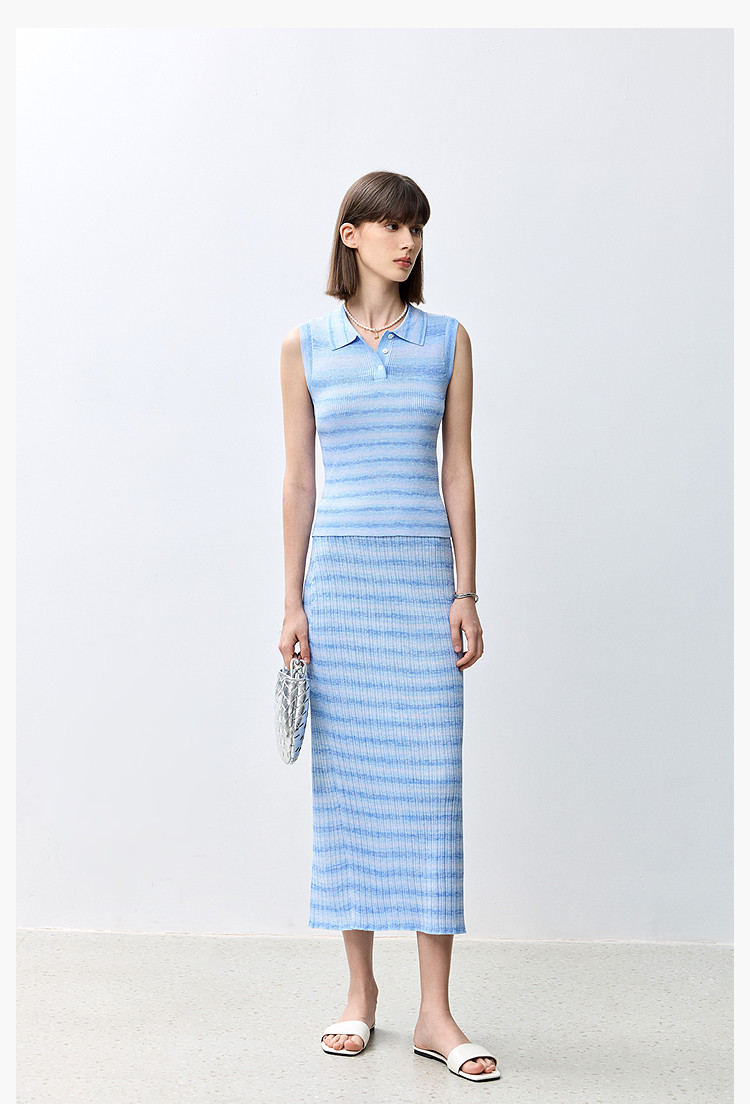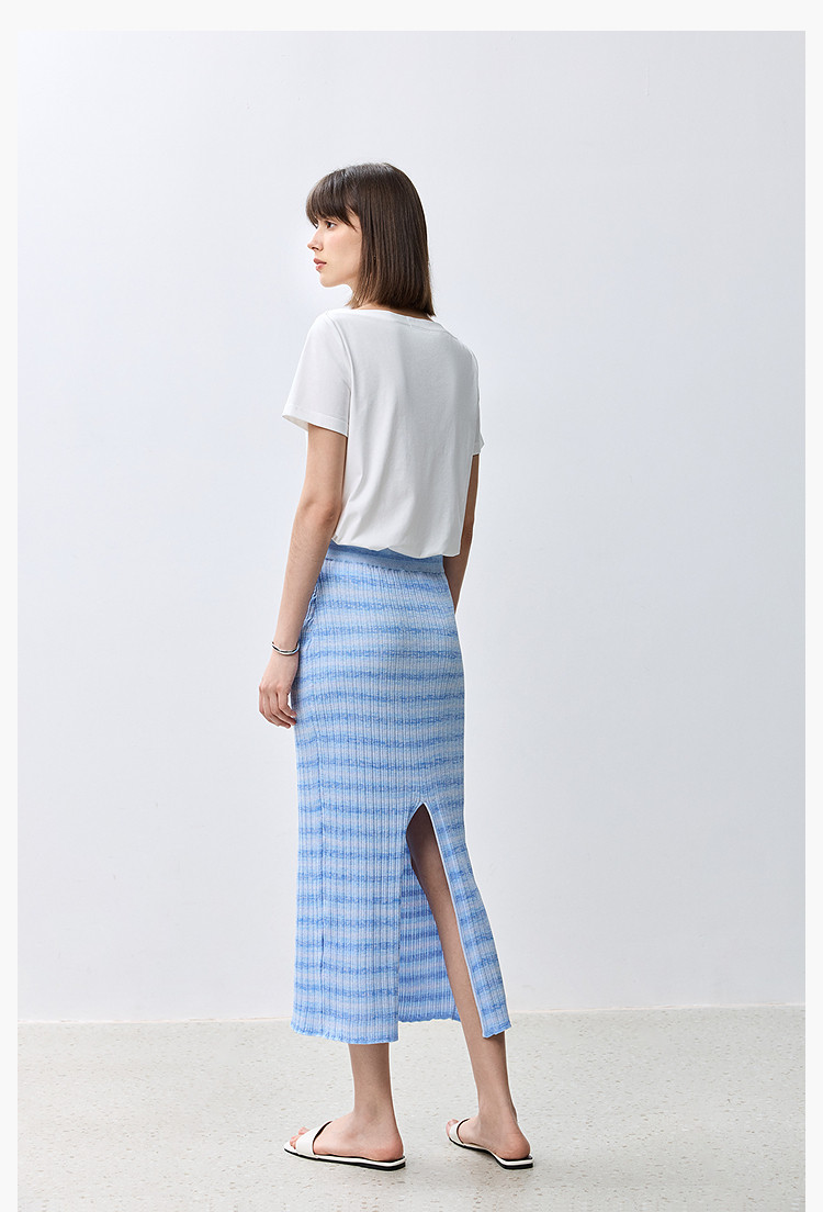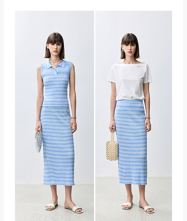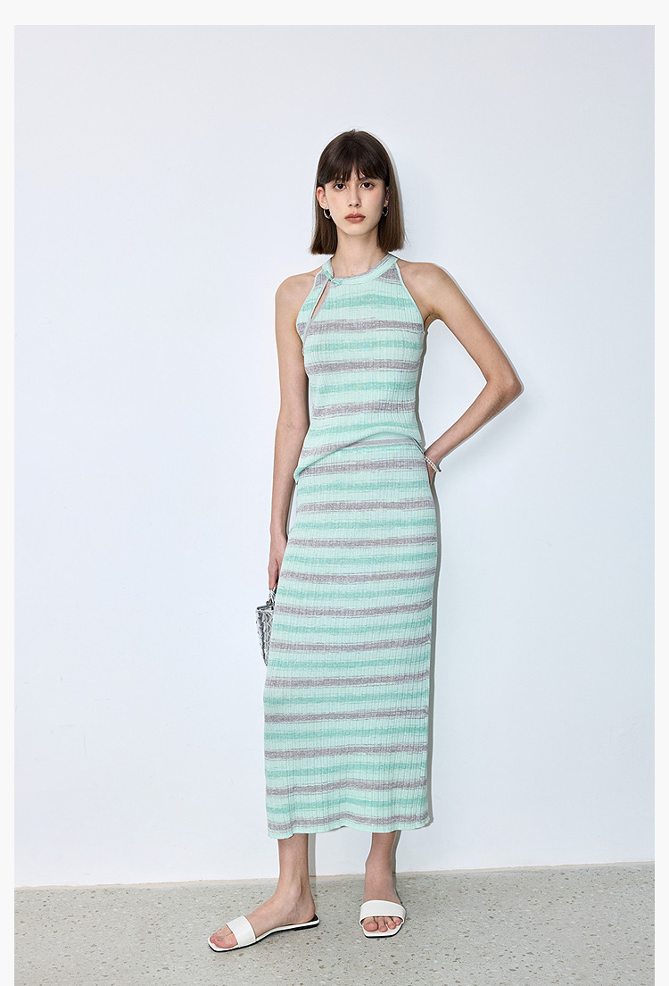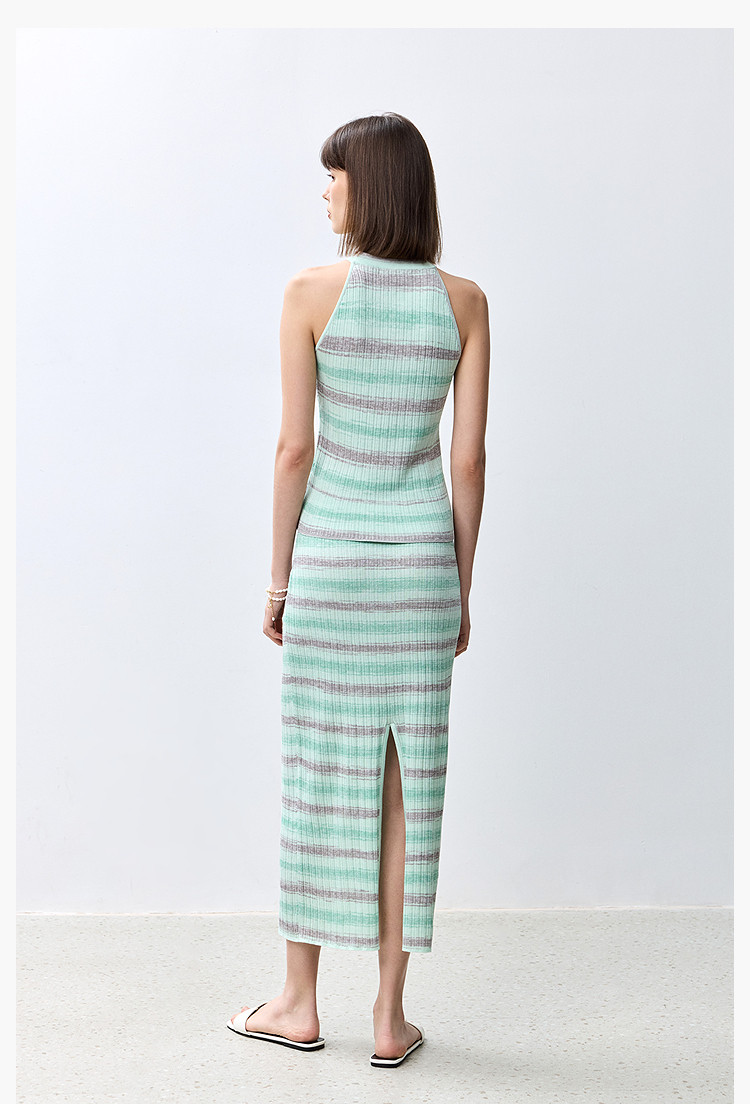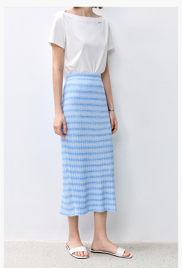 商品名称:夏季多巴胺色彩温柔气质薄荷曼波显瘦条纹半身裙 080283
