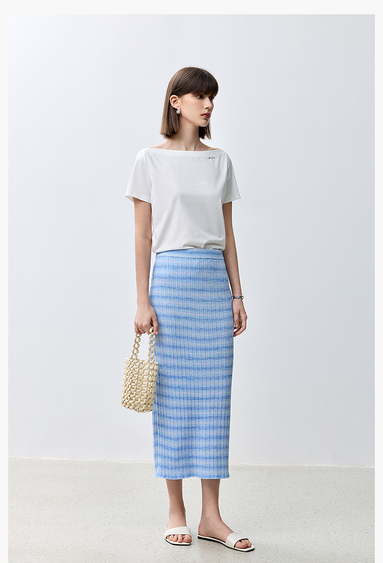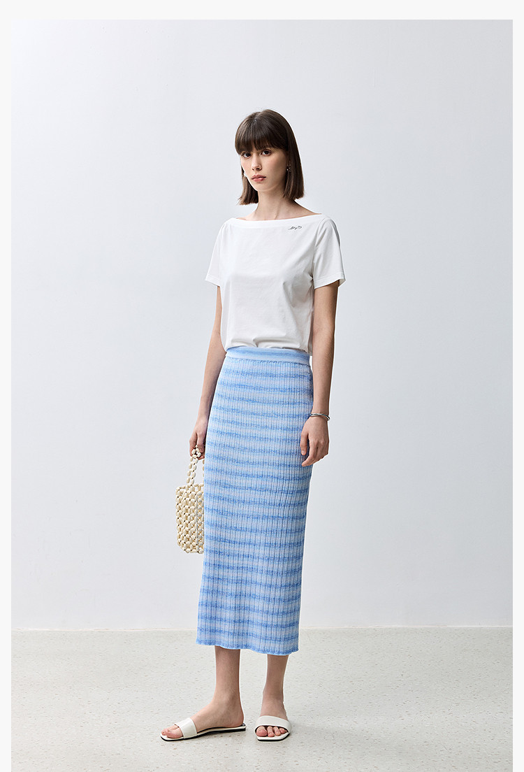 夏季多巴胺色彩温柔气质薄荷曼波显瘦条纹半身裙 080283