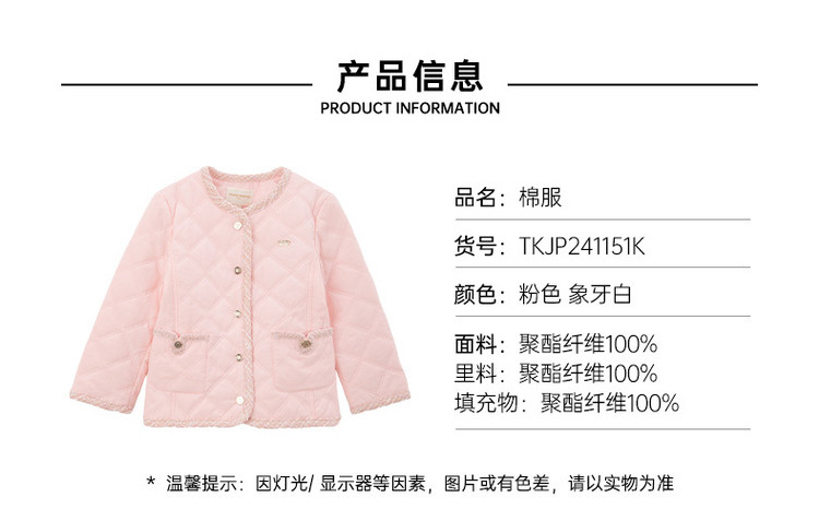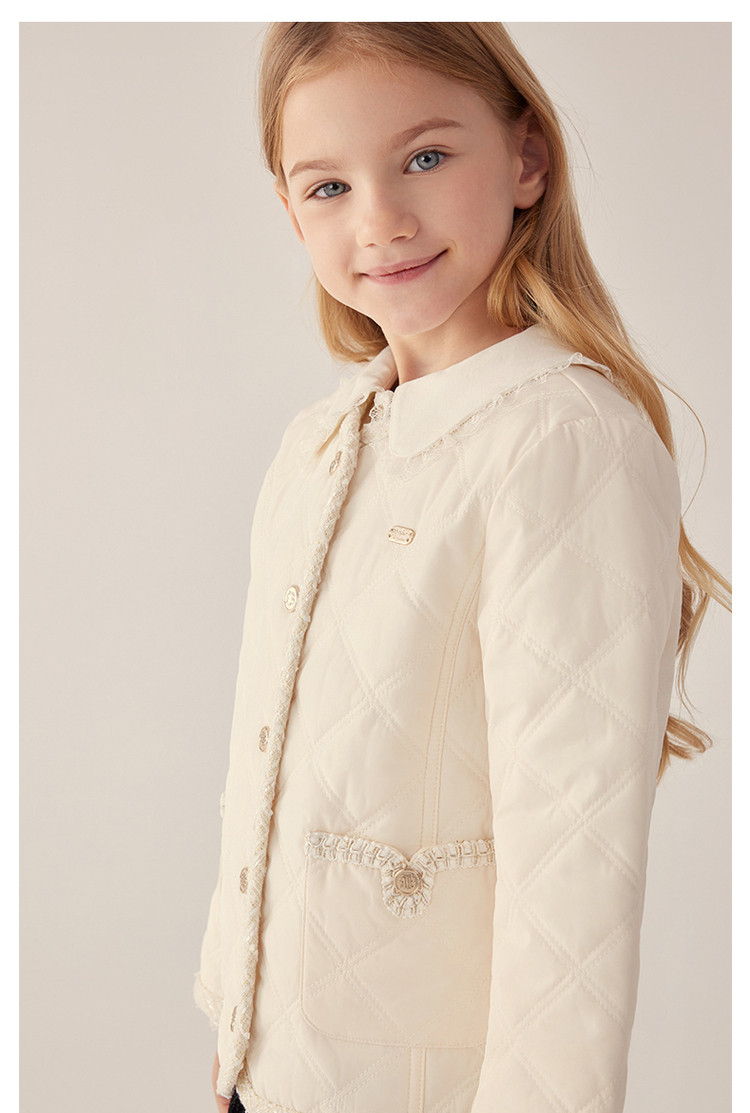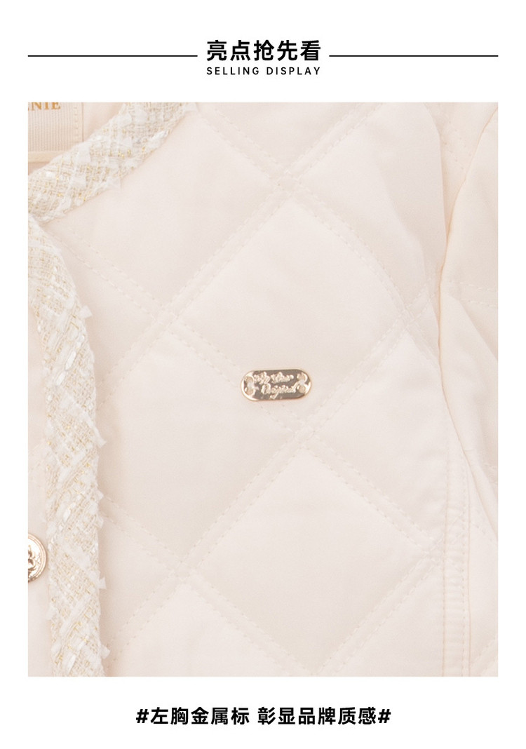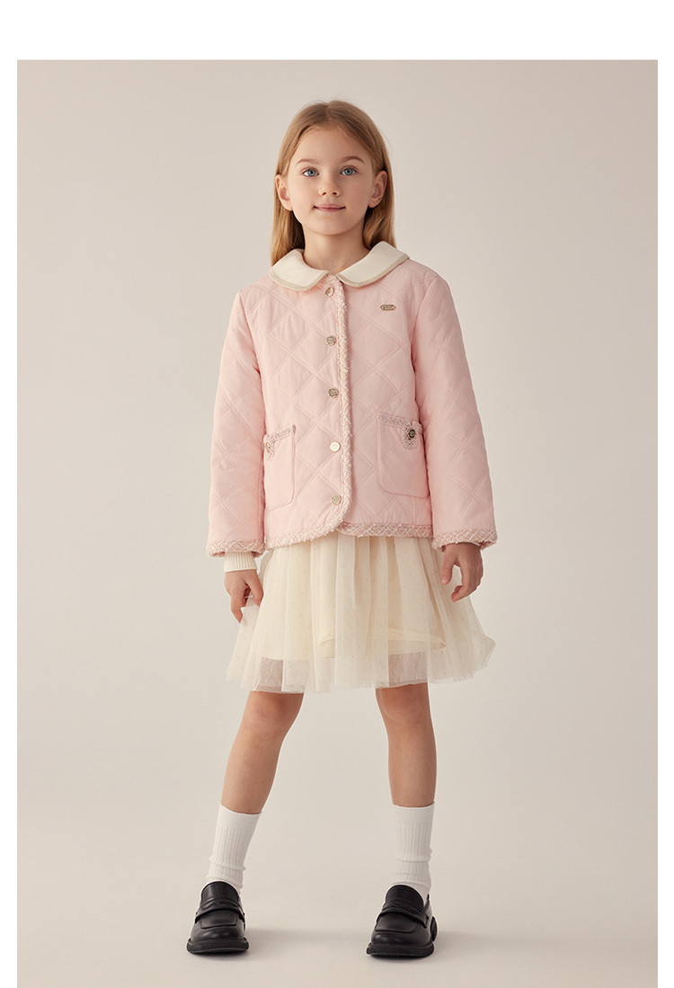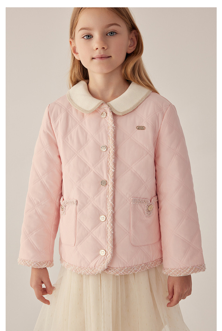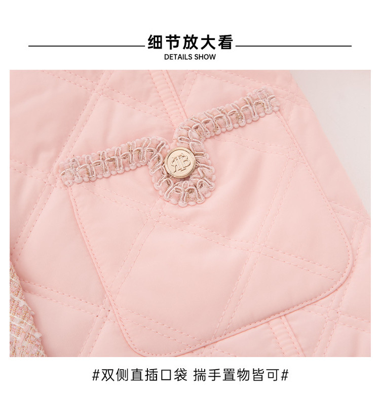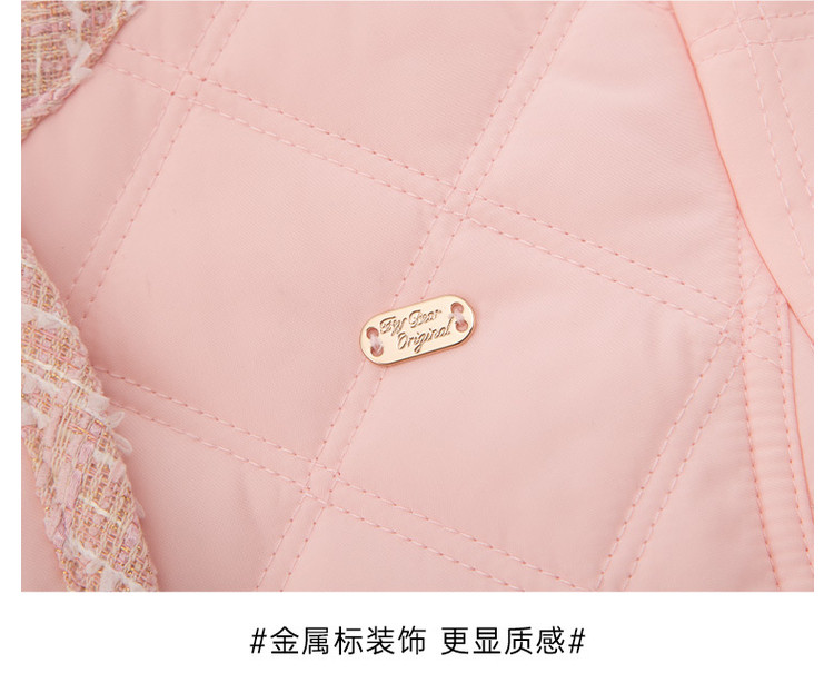商品名称:【小香风外套】小熊童装冬款女童小香风菱格纽扣棉服 390209