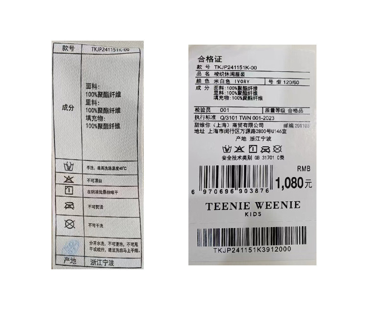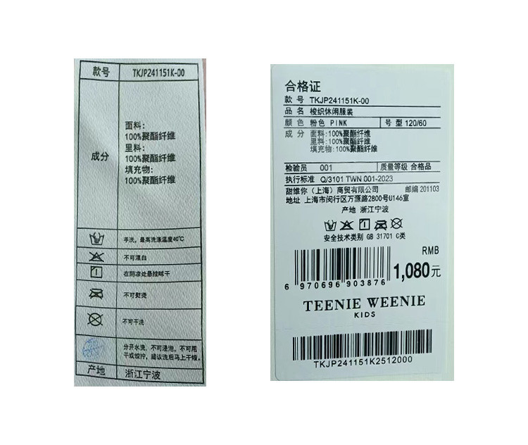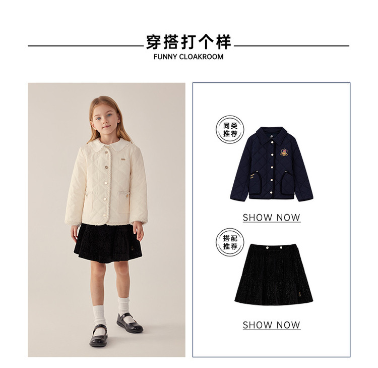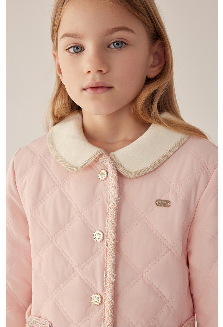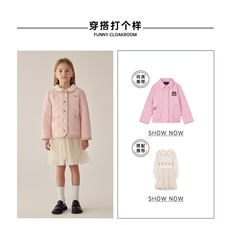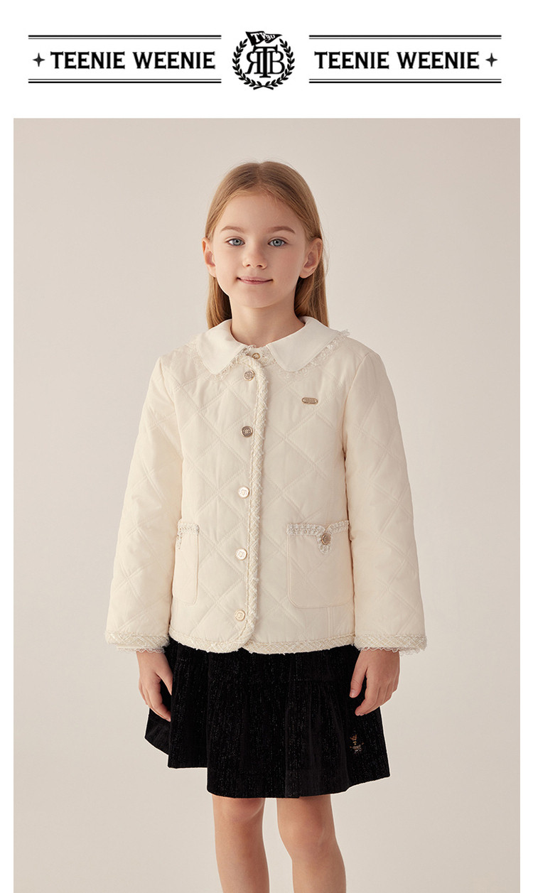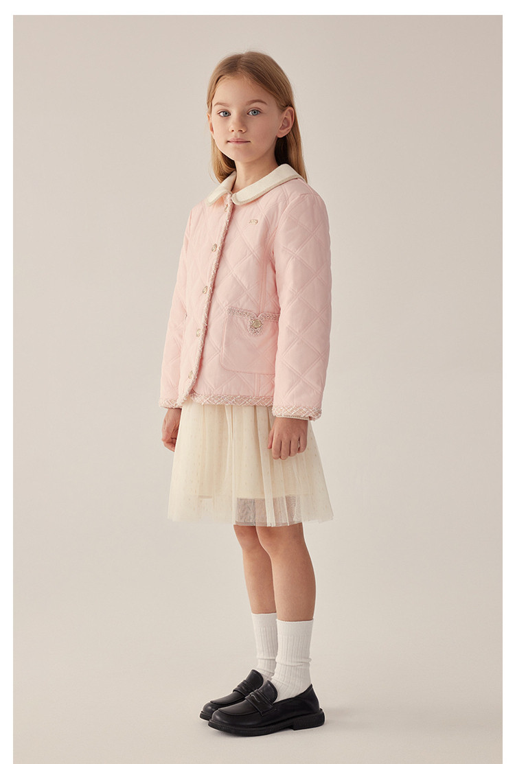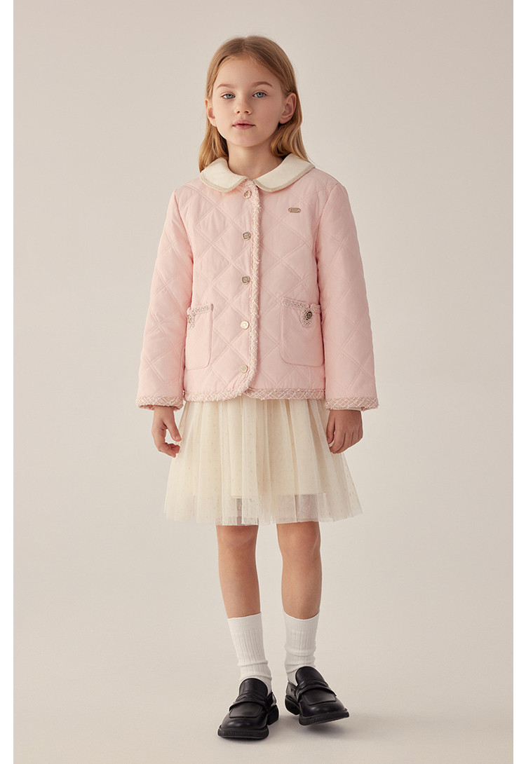 商品名称:【小香风外套】小熊童装冬款女童小香风菱格纽扣棉服 390209