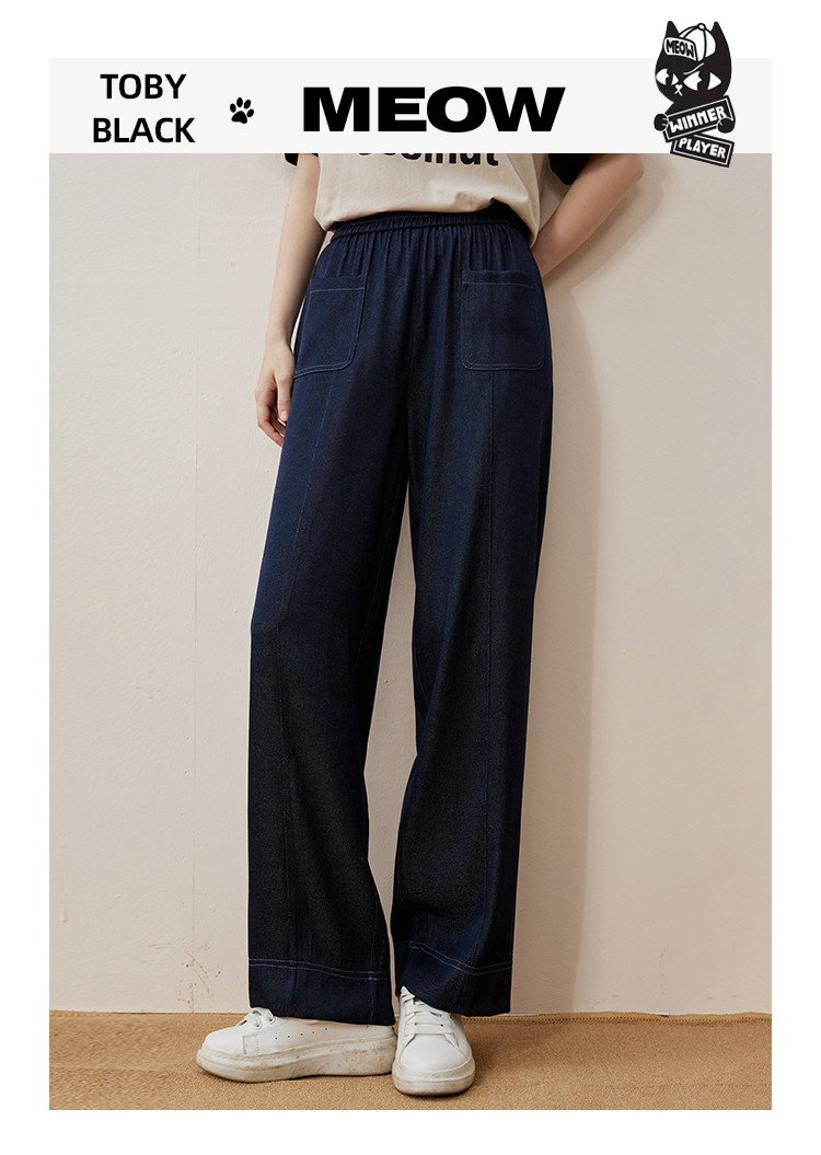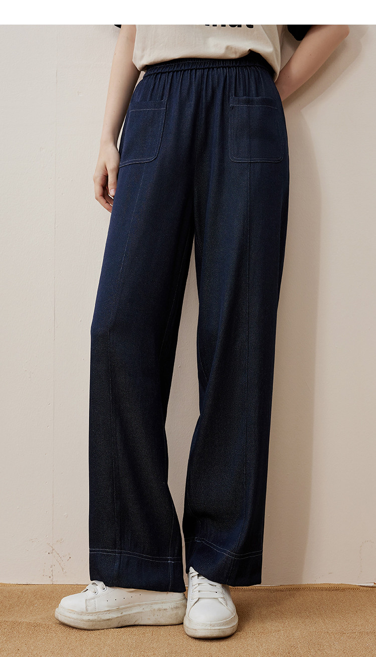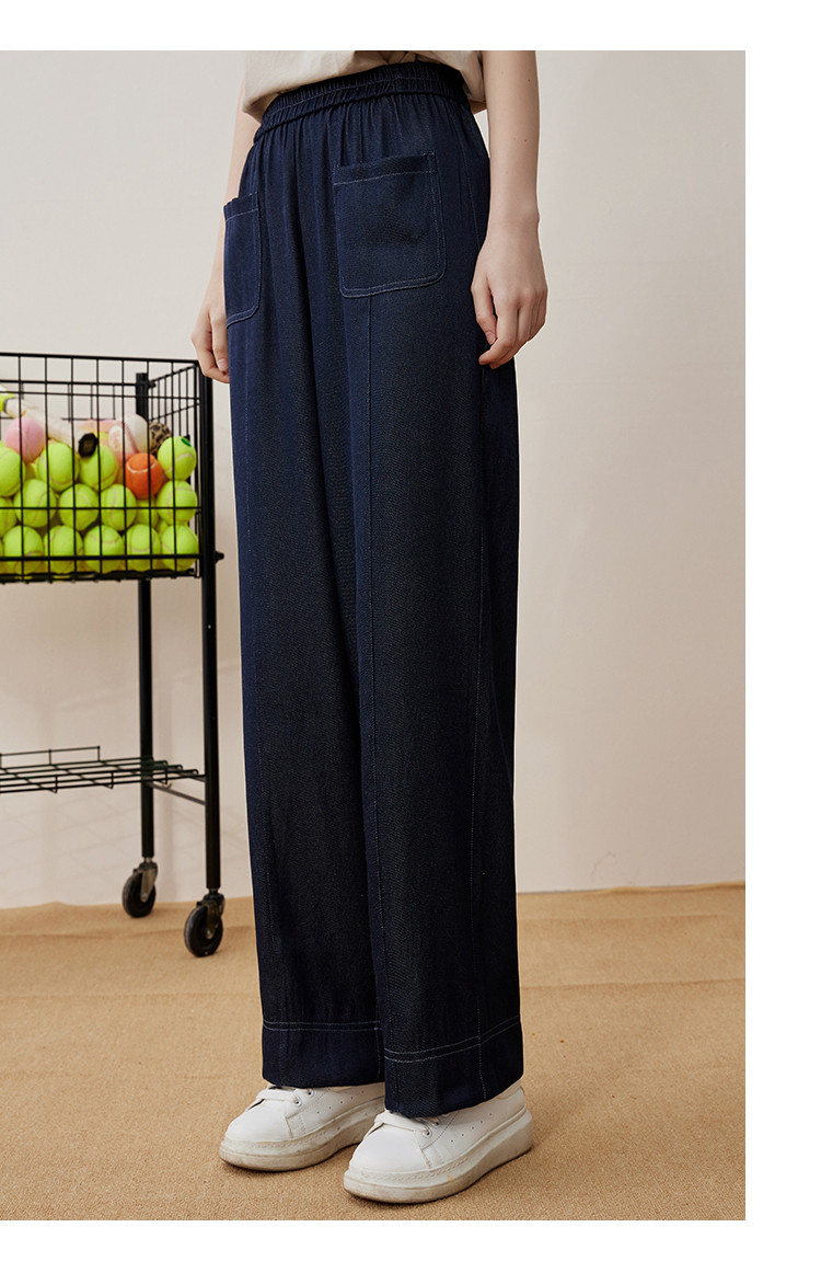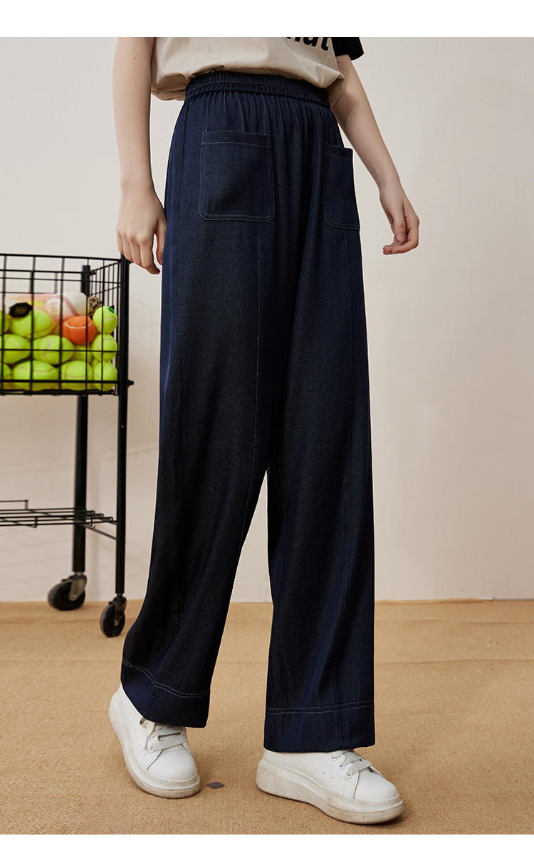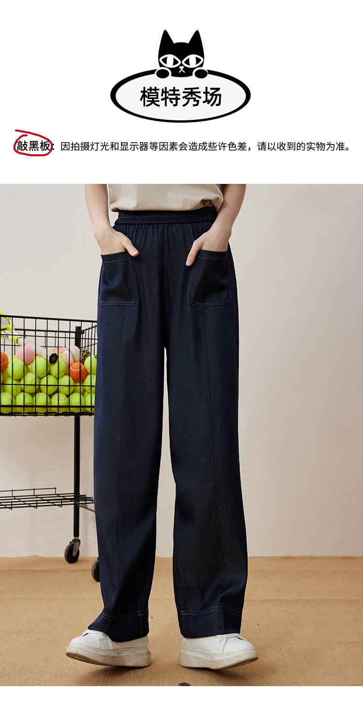 商品名称:纯色简约设计宽松显瘦丹宁色阔腿裤夏季高腰女式休闲裤 871837