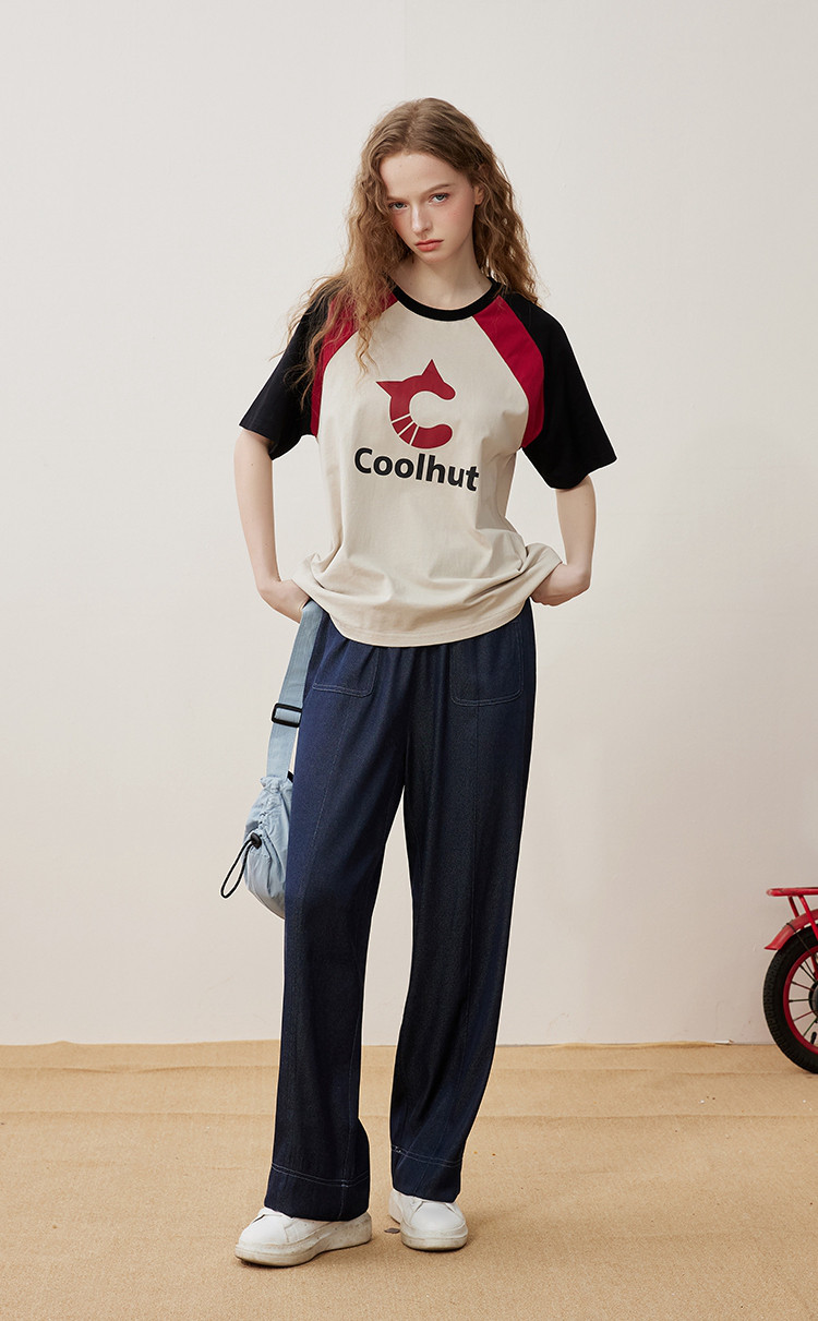 纯色简约设计宽松显瘦丹宁色阔腿裤夏季高腰女式休闲裤 871837