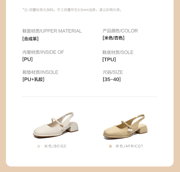 商品名称:【珍珠饰扣】百搭粗跟凉鞋女夏季配裙子玛丽珍鞋后空凉鞋女士凉鞋 207296