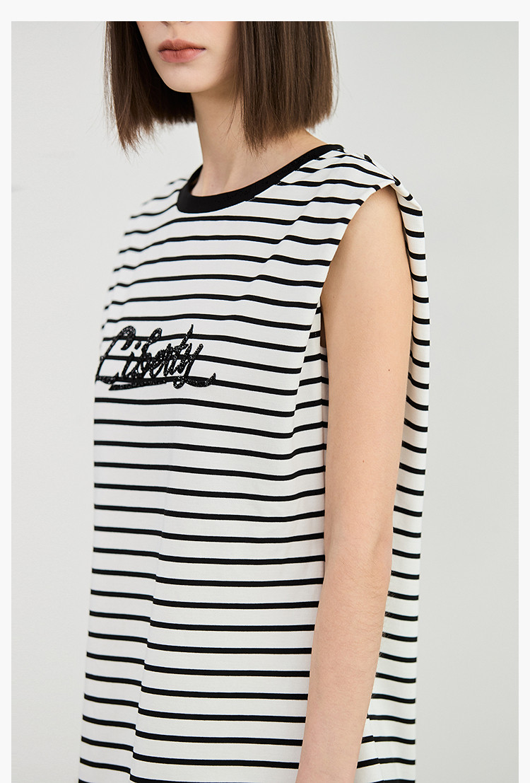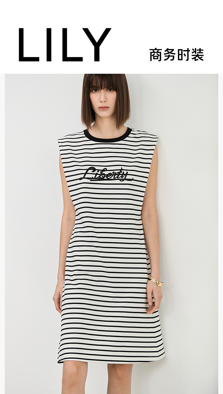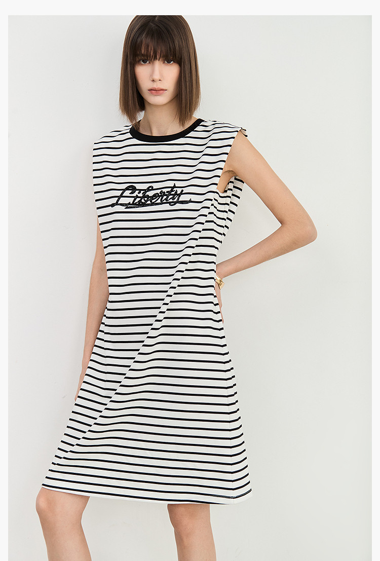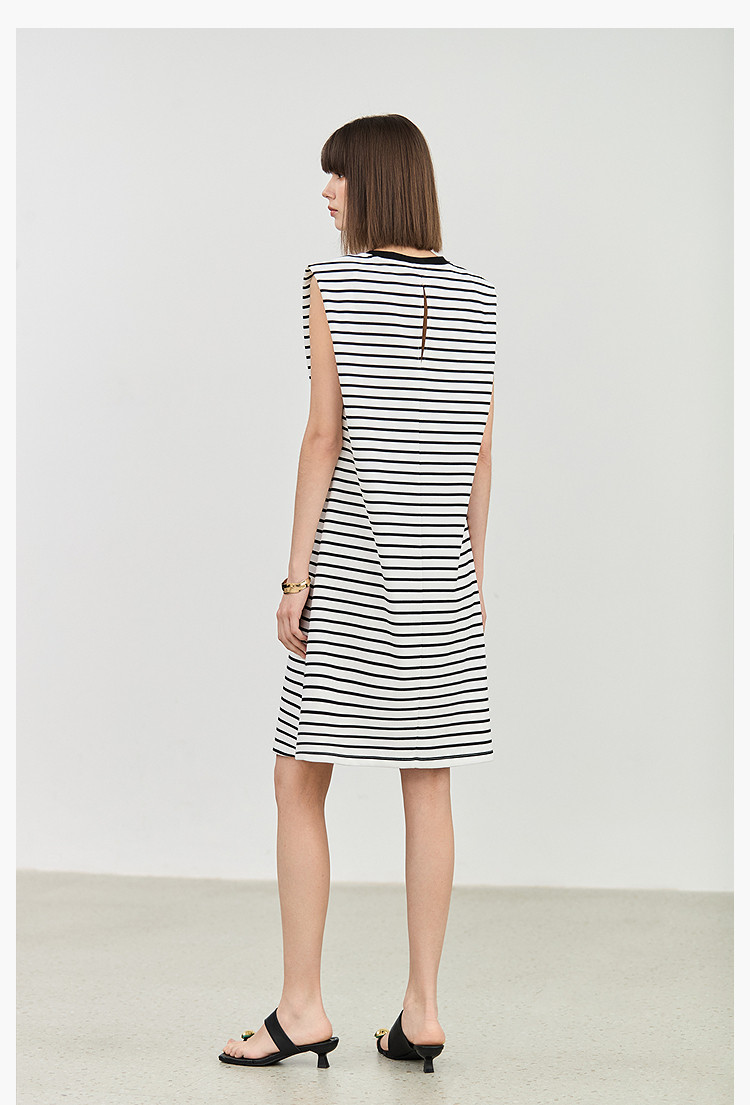 商品名称:夏季复古条纹设计感宽肩休闲通勤中长连衣裙小个子 635547