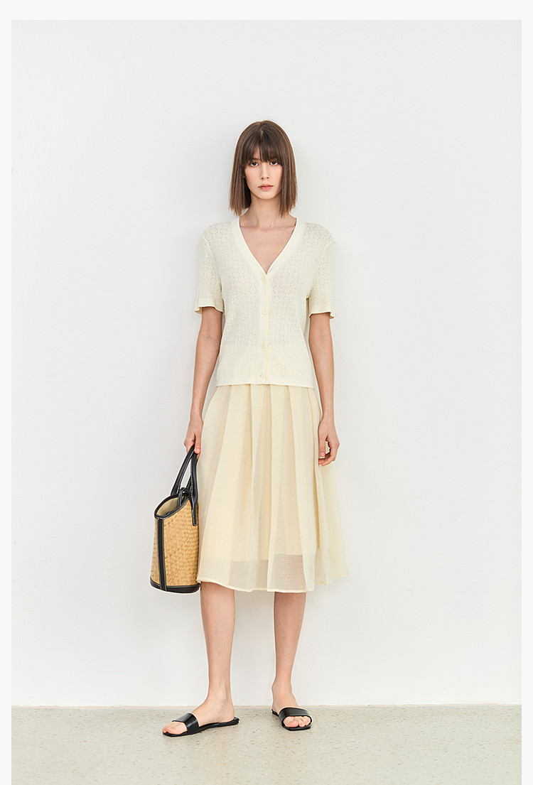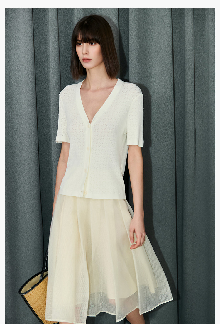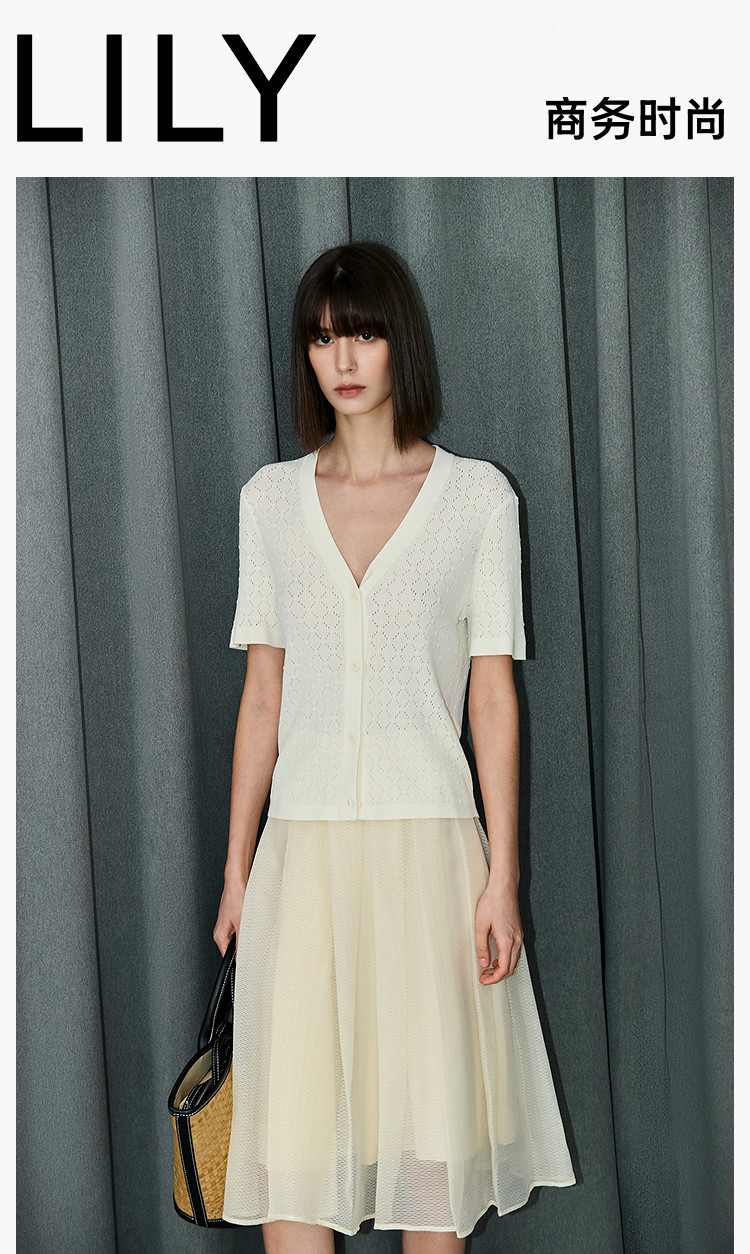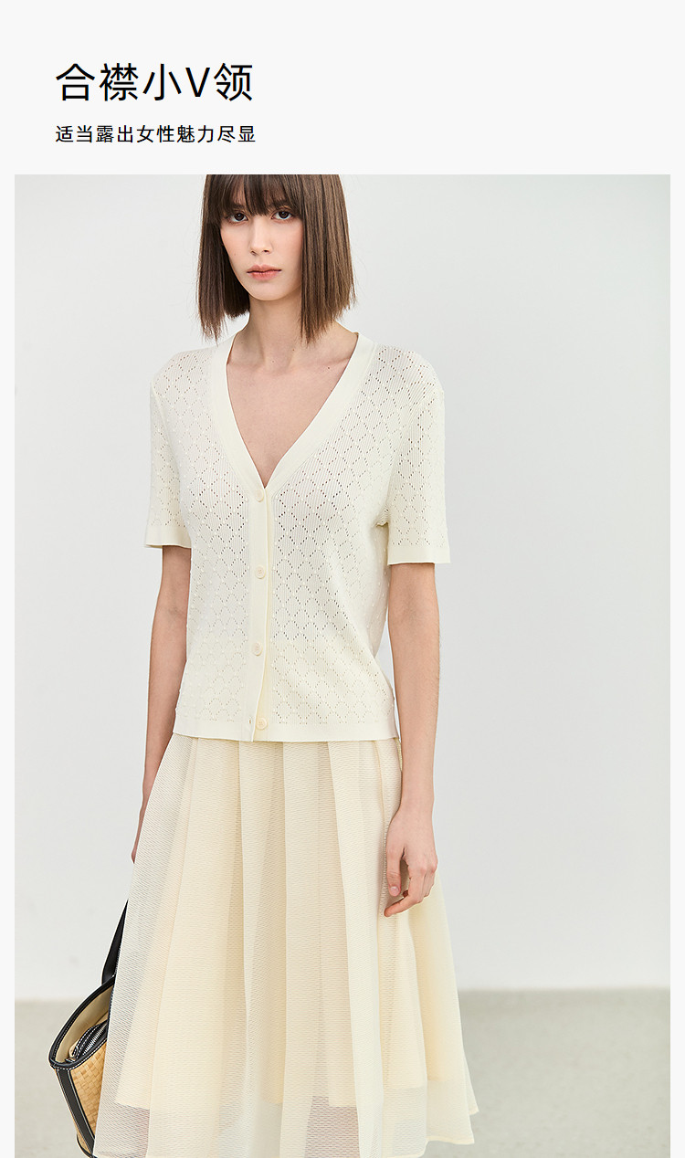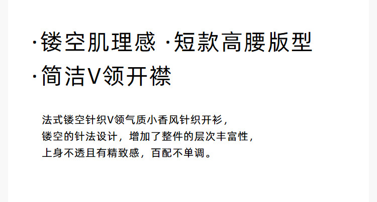 商品名称:【春季】气质纯色通勤款设计感镂空时尚修身款针织开衫 179675